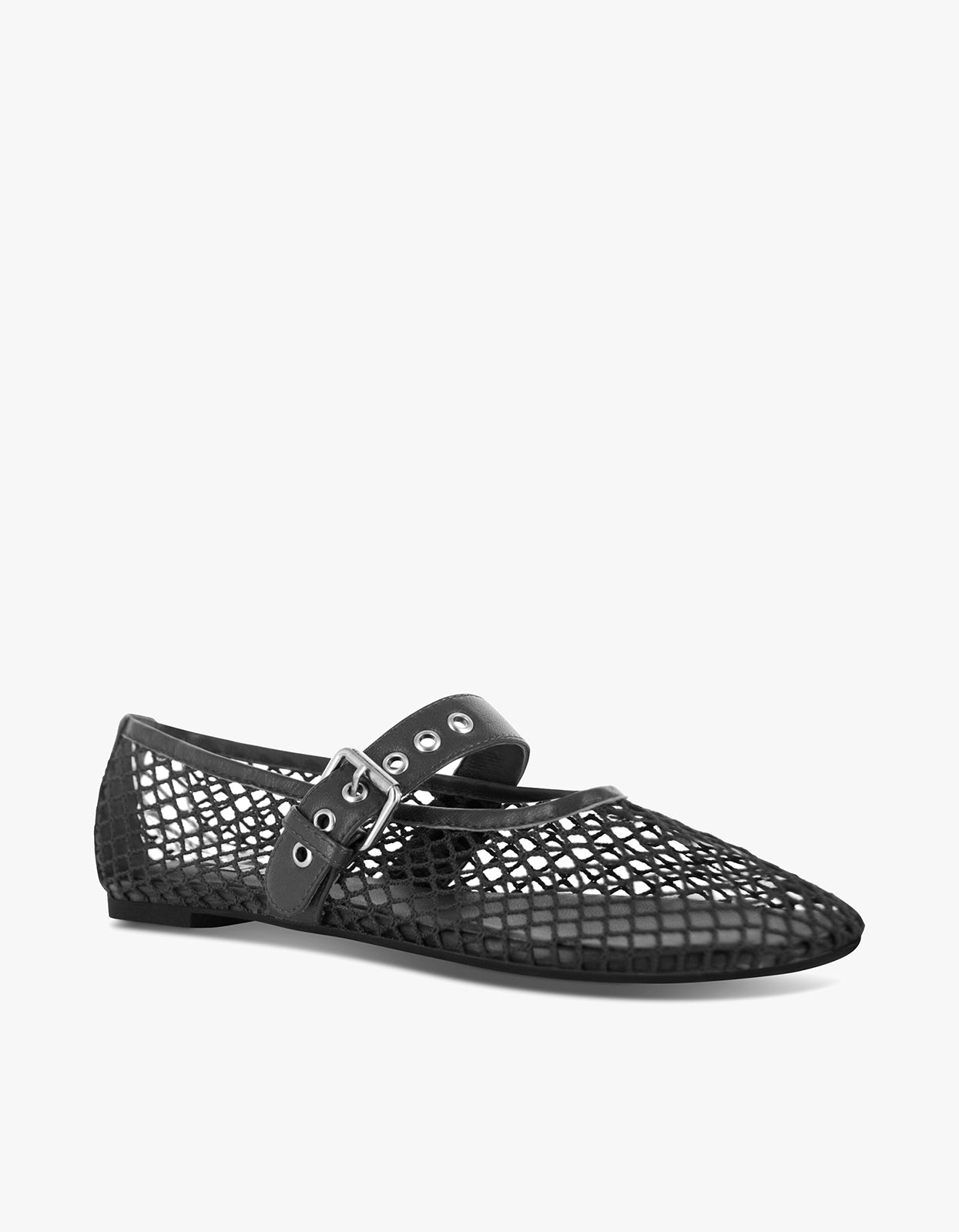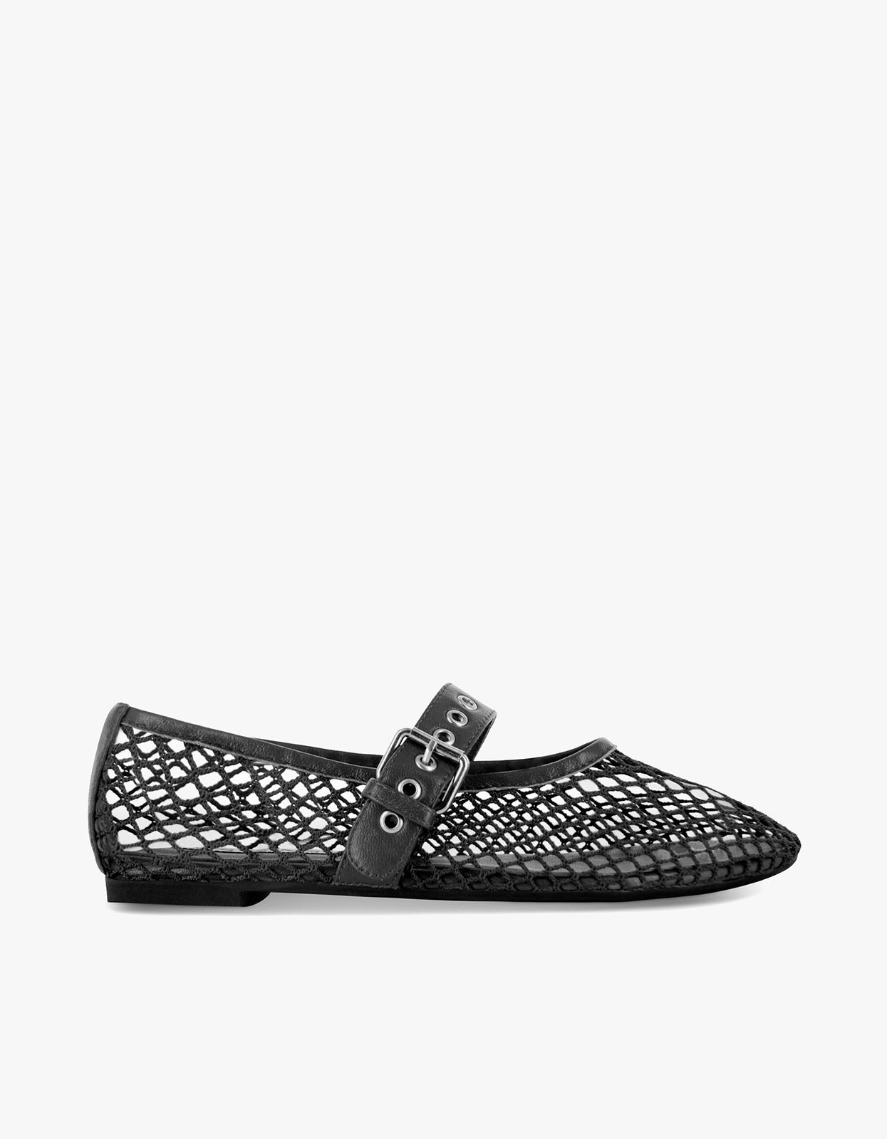 This refined style features a delicate netted upper that adds visual interest while maintaining a timeless silhouette. The adjustable strap, accented with polished silver-tone hardware, ensures a secure and customizable fit. With its graceful round toe and understated design, the Carina transitions seamlessly from day to evening, offering the perfect balance of comfort and sophistication for the discerning wearer.