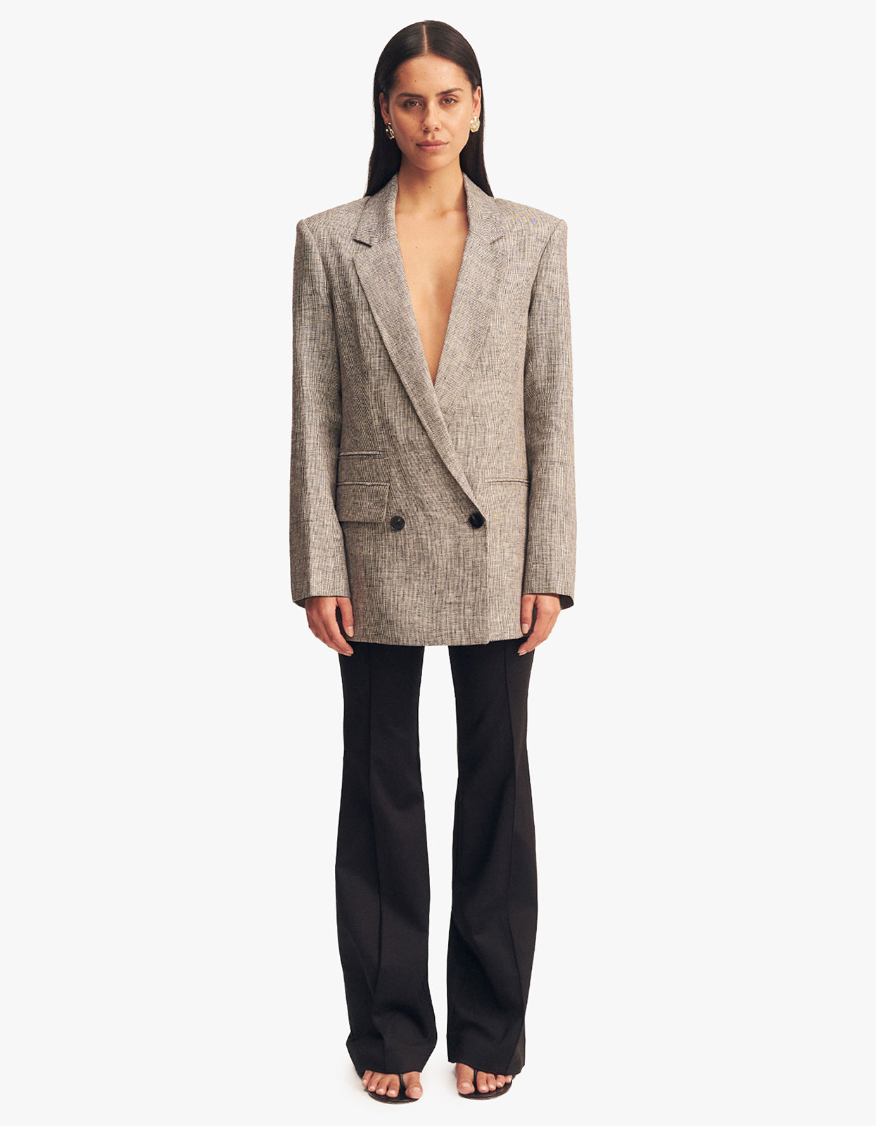 Indulge in effortless elegance with our Elliot Double Breasted Blazer in Concrete by Shona Joy.
