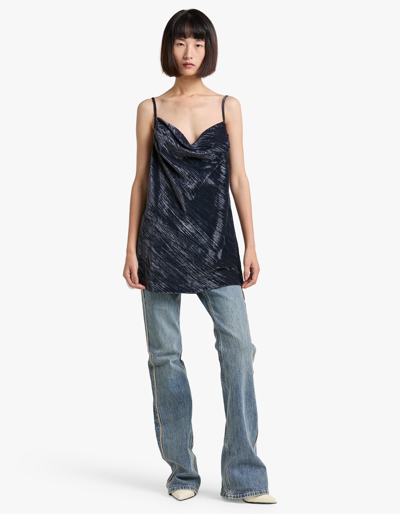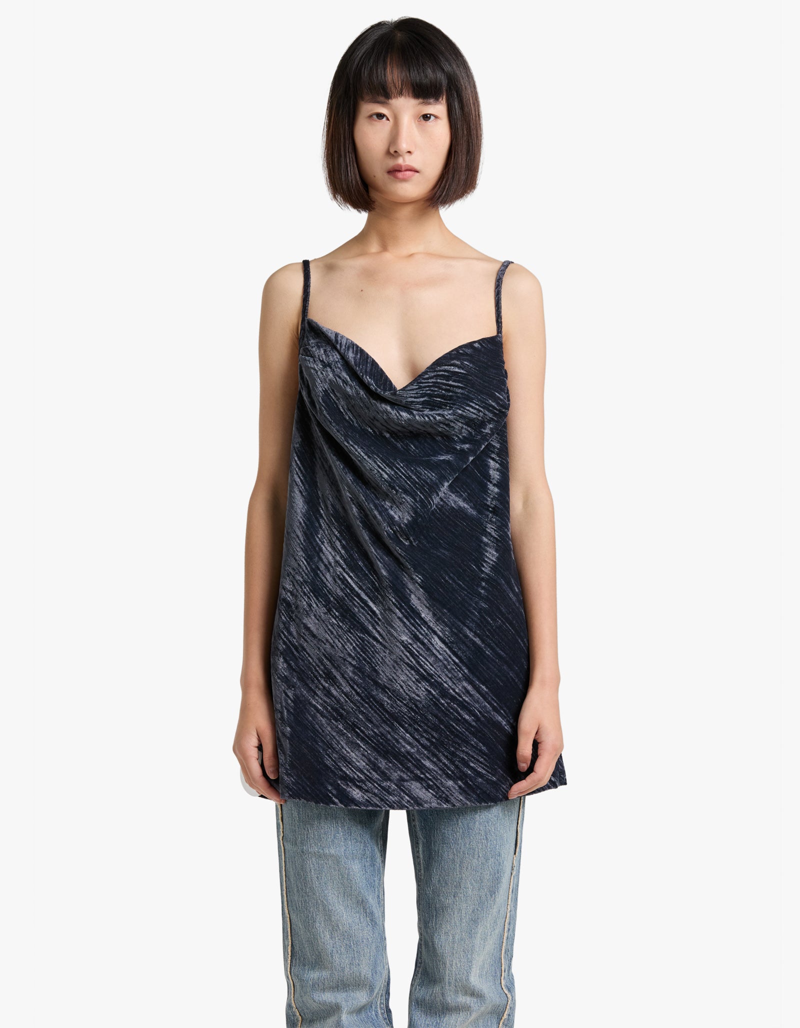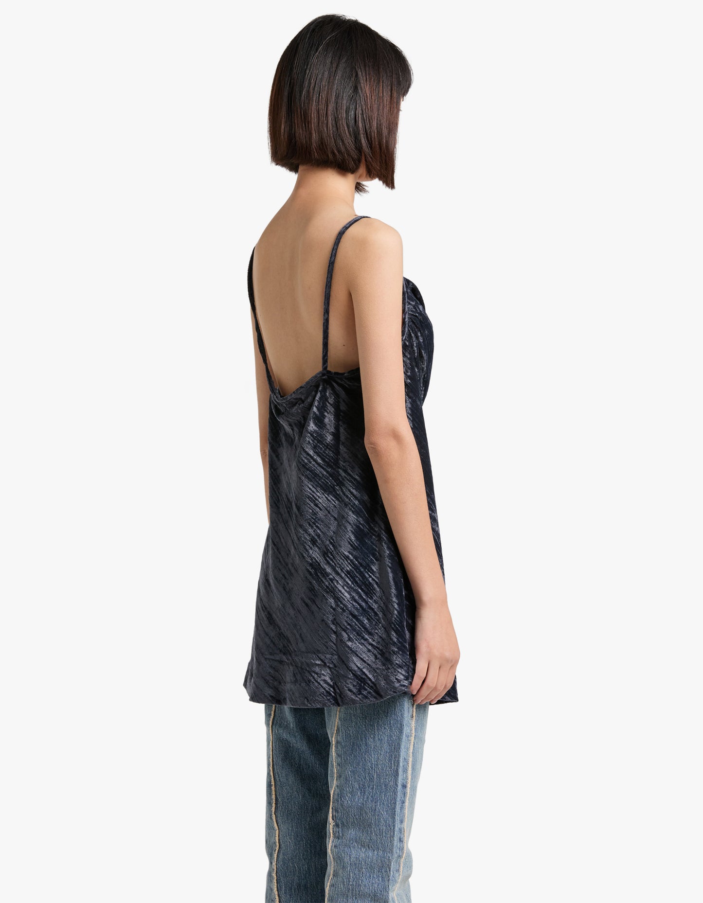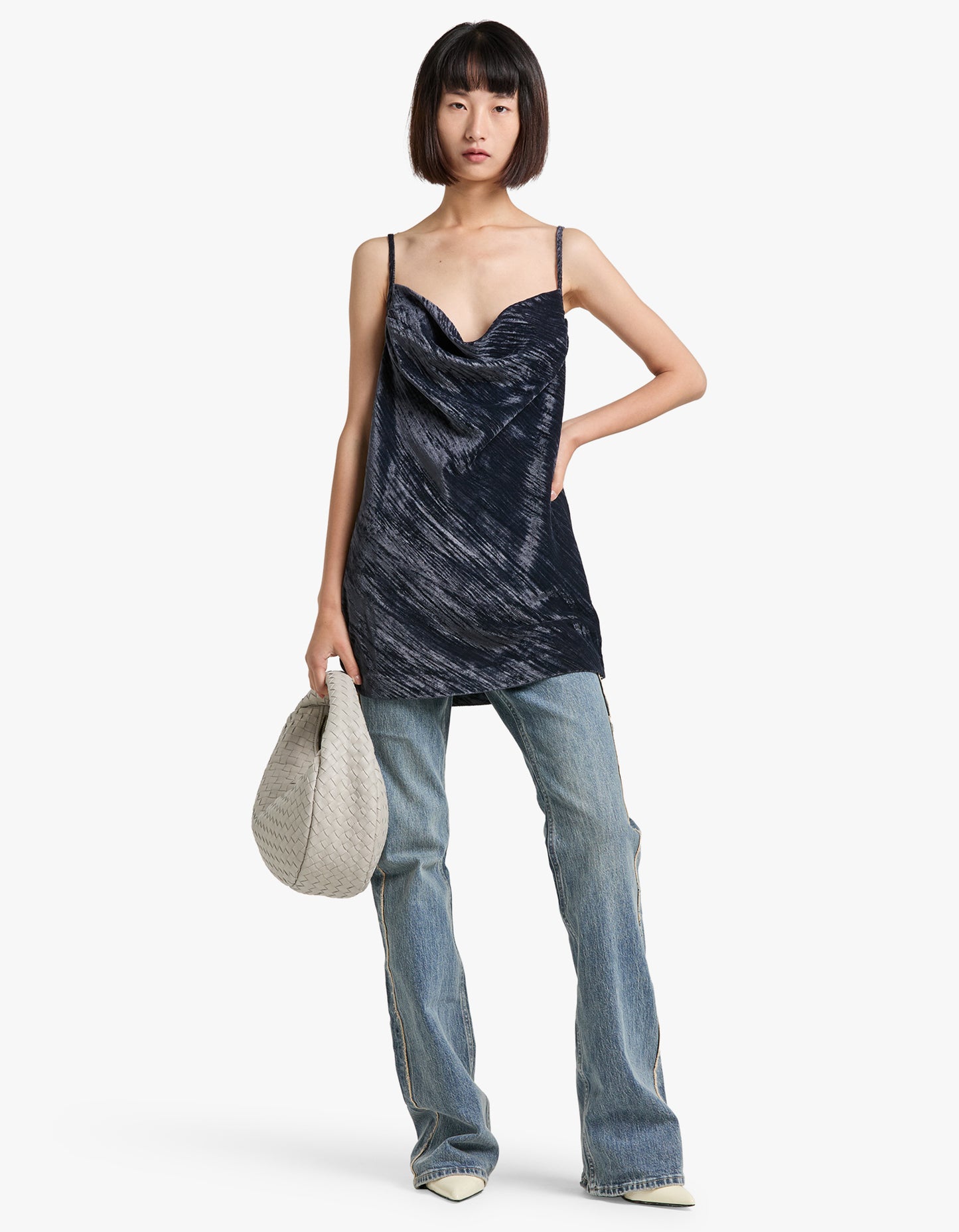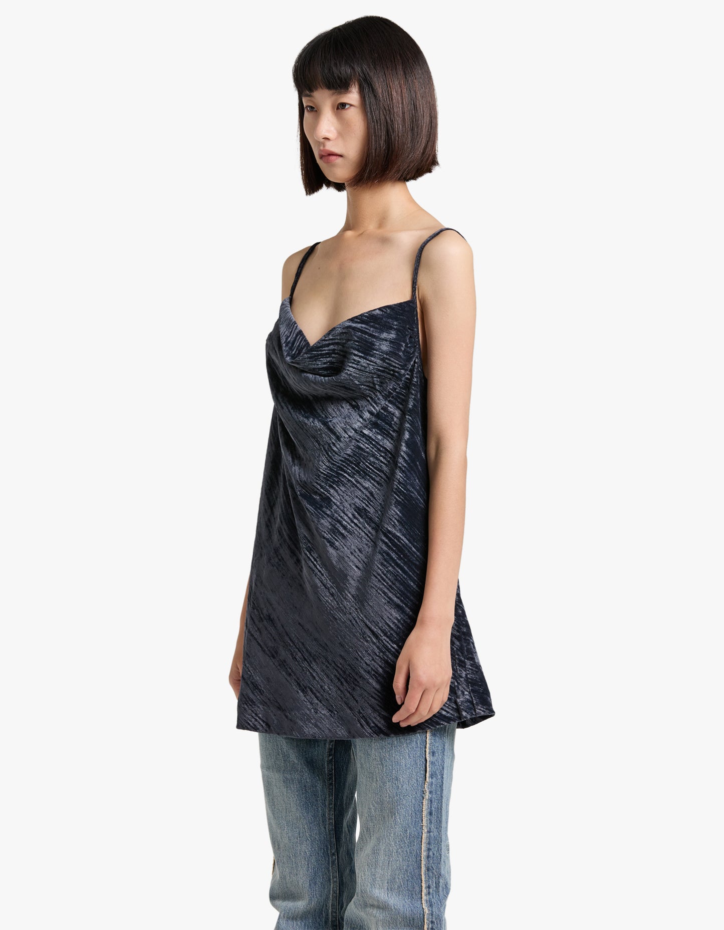 Made with luxurious velvet fabric, this cami exudes elegance and exclusivity. The cowl neck adds a touch of artistry to this sleek and timeless piece.