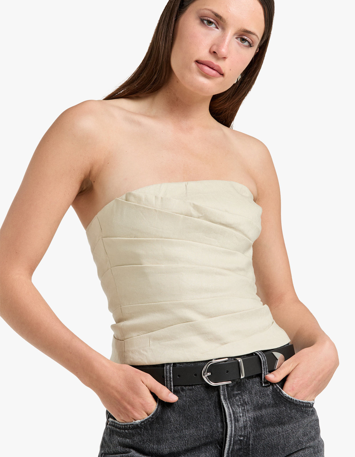 OysterIntroducing the Kasbah Strapless Draped Bodice in Oyster, a versatile wardrobe staple for any season and occasion from Shona Joy.