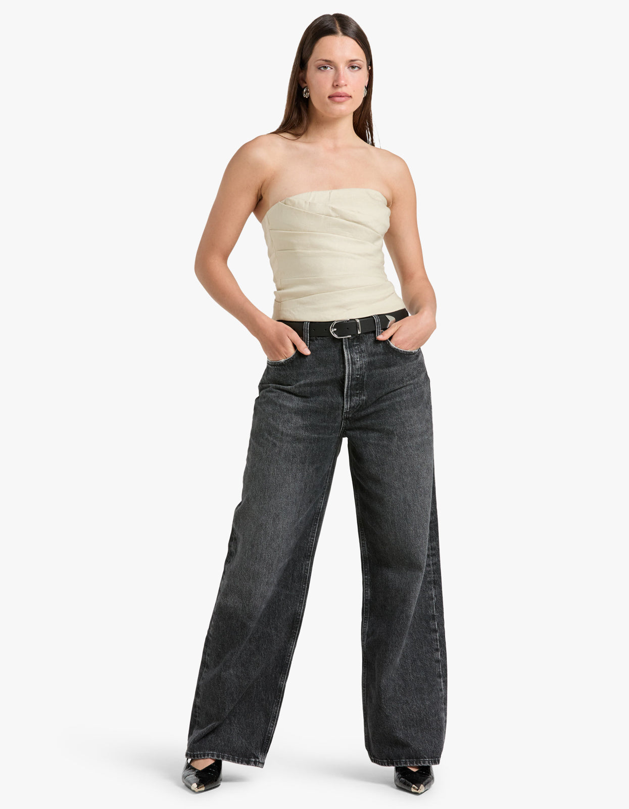 - Strapless neckline