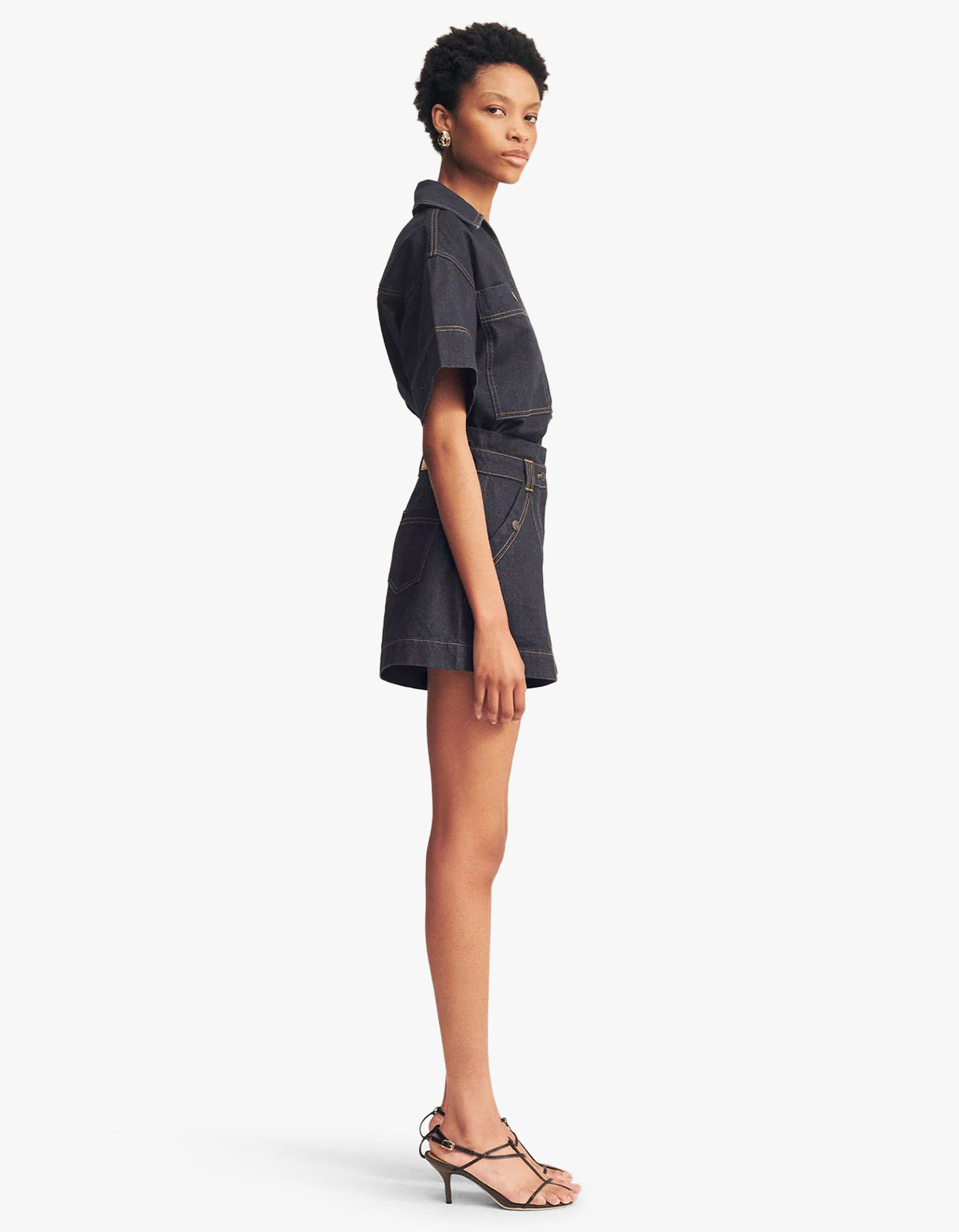 This denim has been through a washing process to achieve its' indigo colour. Due to this process each garment is unique, and we cannot guarantee all garments to have the exact same colour shading.