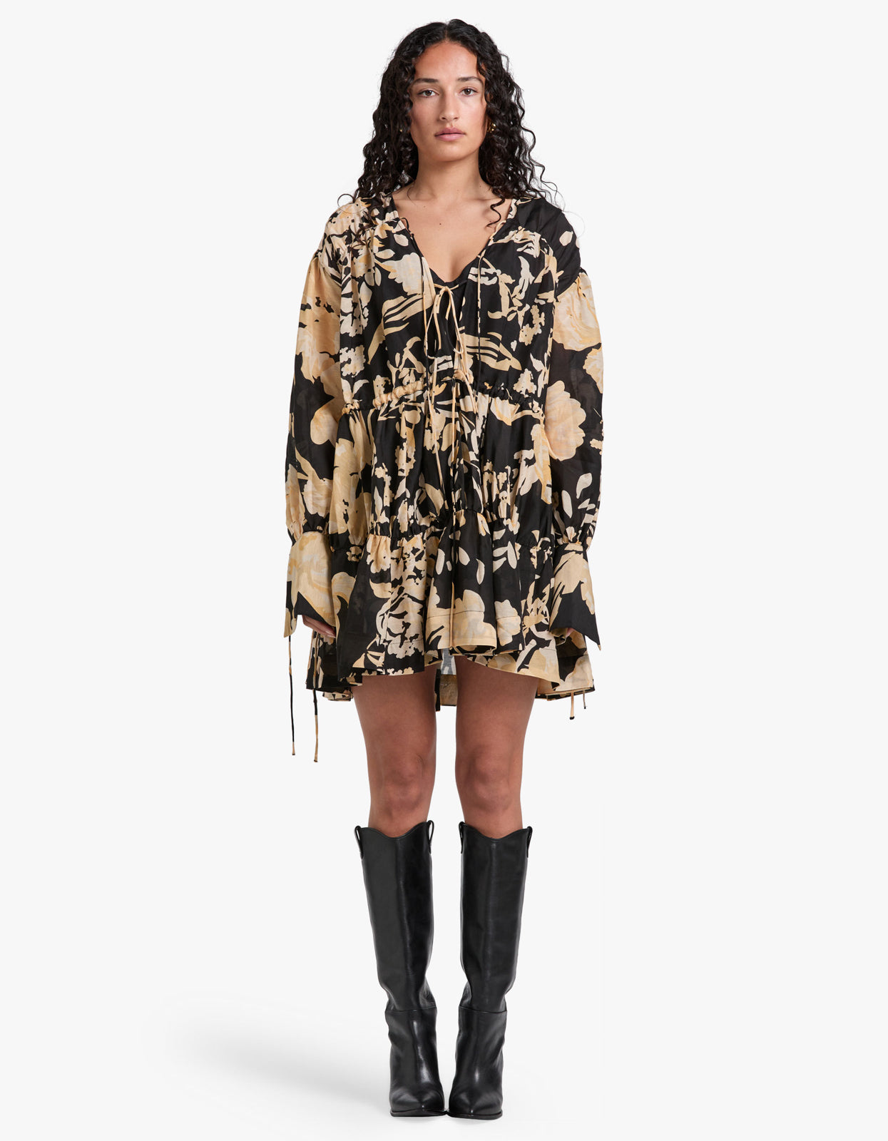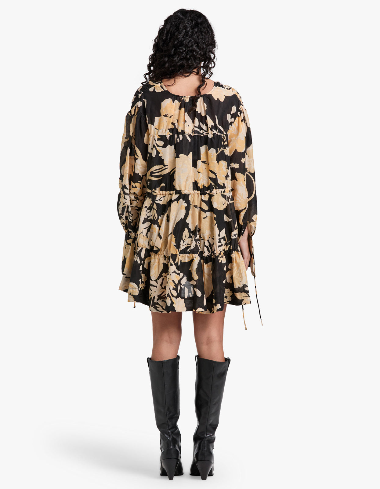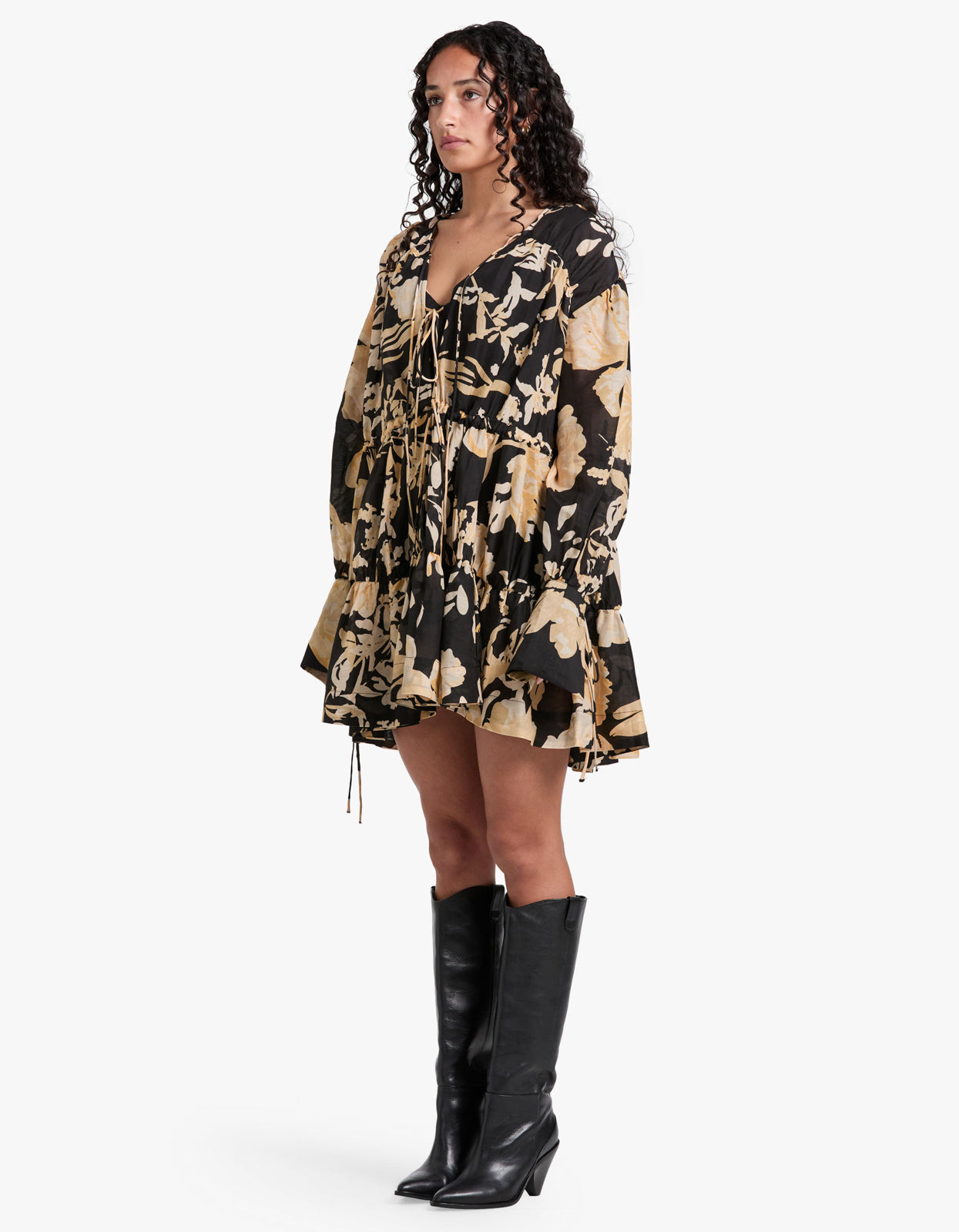 Xenia Tiered Drawstring Mini Dress - Black Multi