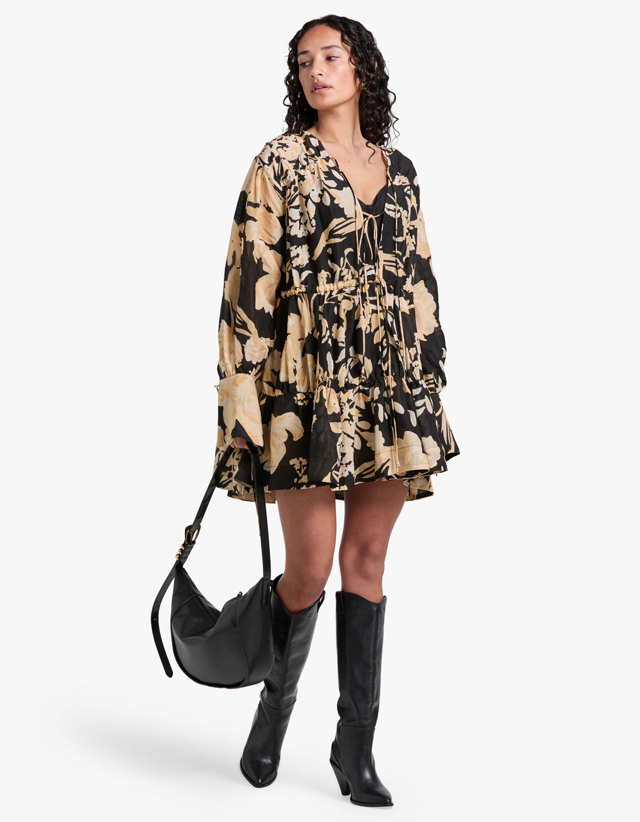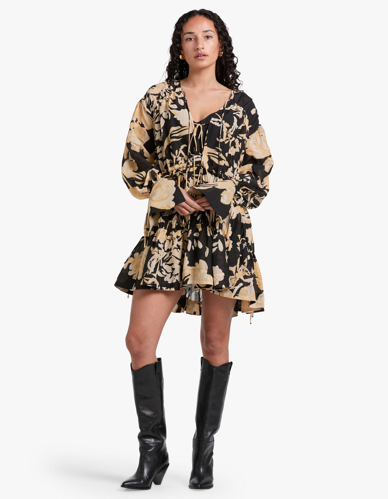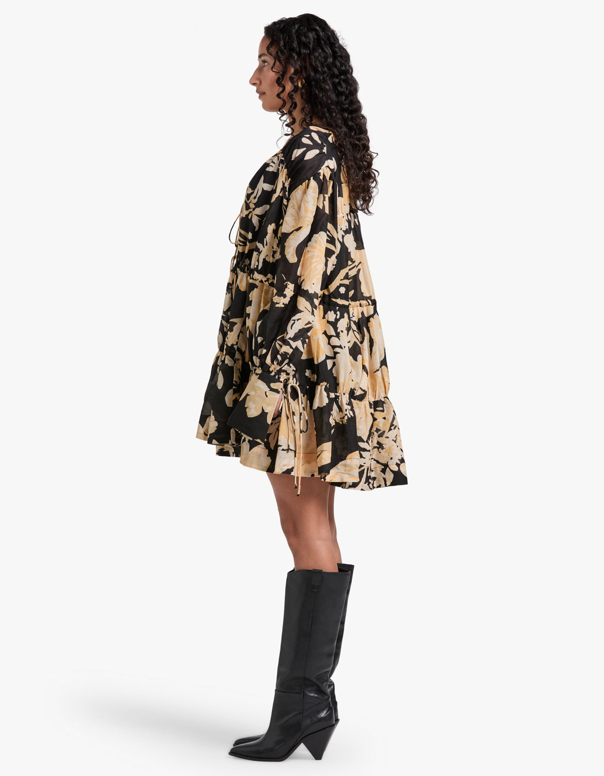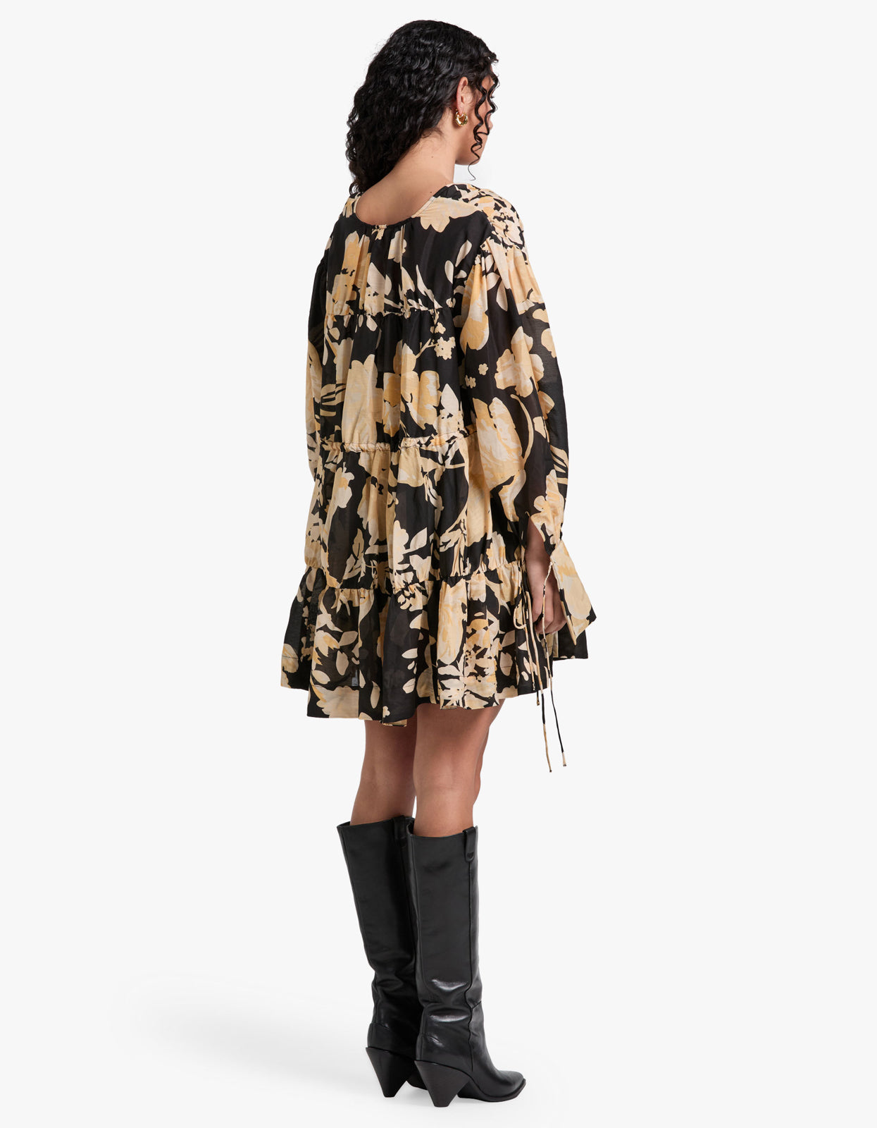 Xenia Tiered Drawstring Mini Dress - Black Multi