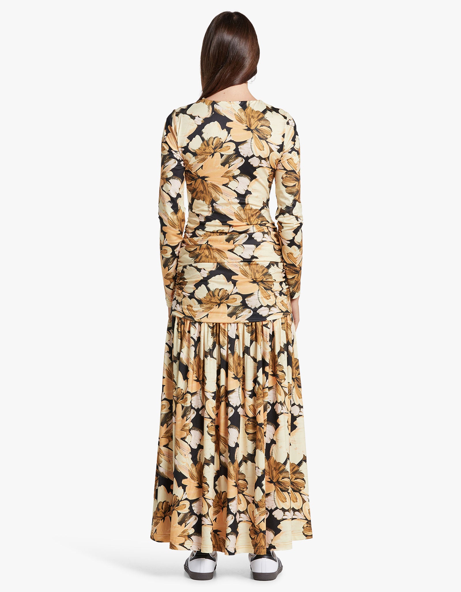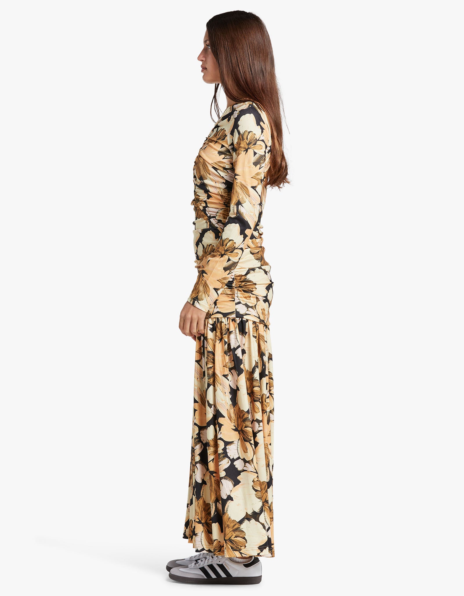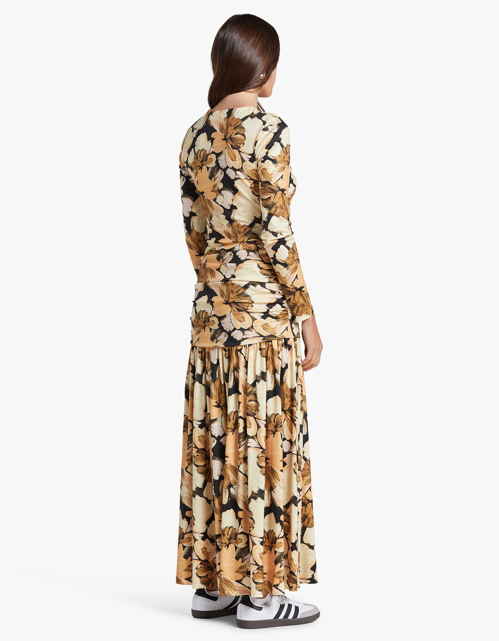 How beaut is this vintage floral print - This maxi number is a truly unique piece that will take you from a long ladies lunch to an autumn wedding. With a keyhole cut out design at the bodice, ruching at the body and a gathered a-line skirt from the hips down, complete the look with a pair of tan heels and dainty gold jewels for a stunning wee moment.