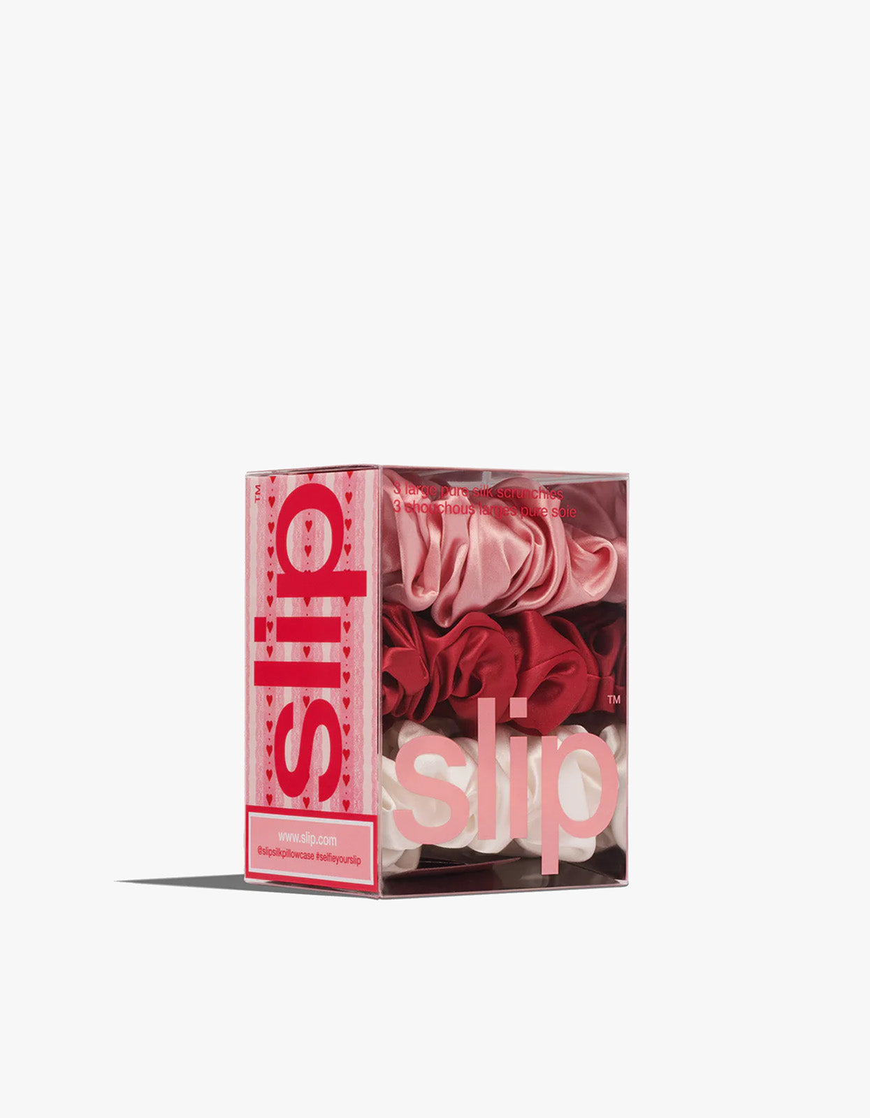 Upgrade your hair tie game with the Slip Rosy Large Scrunchie Set. Designed to be anti-crease and anti-breakage, these scrunchies are made with the same luxurious Slipsilk™ used in the award-winning Slip pure silk pillowcase—because your hair deserves the best.