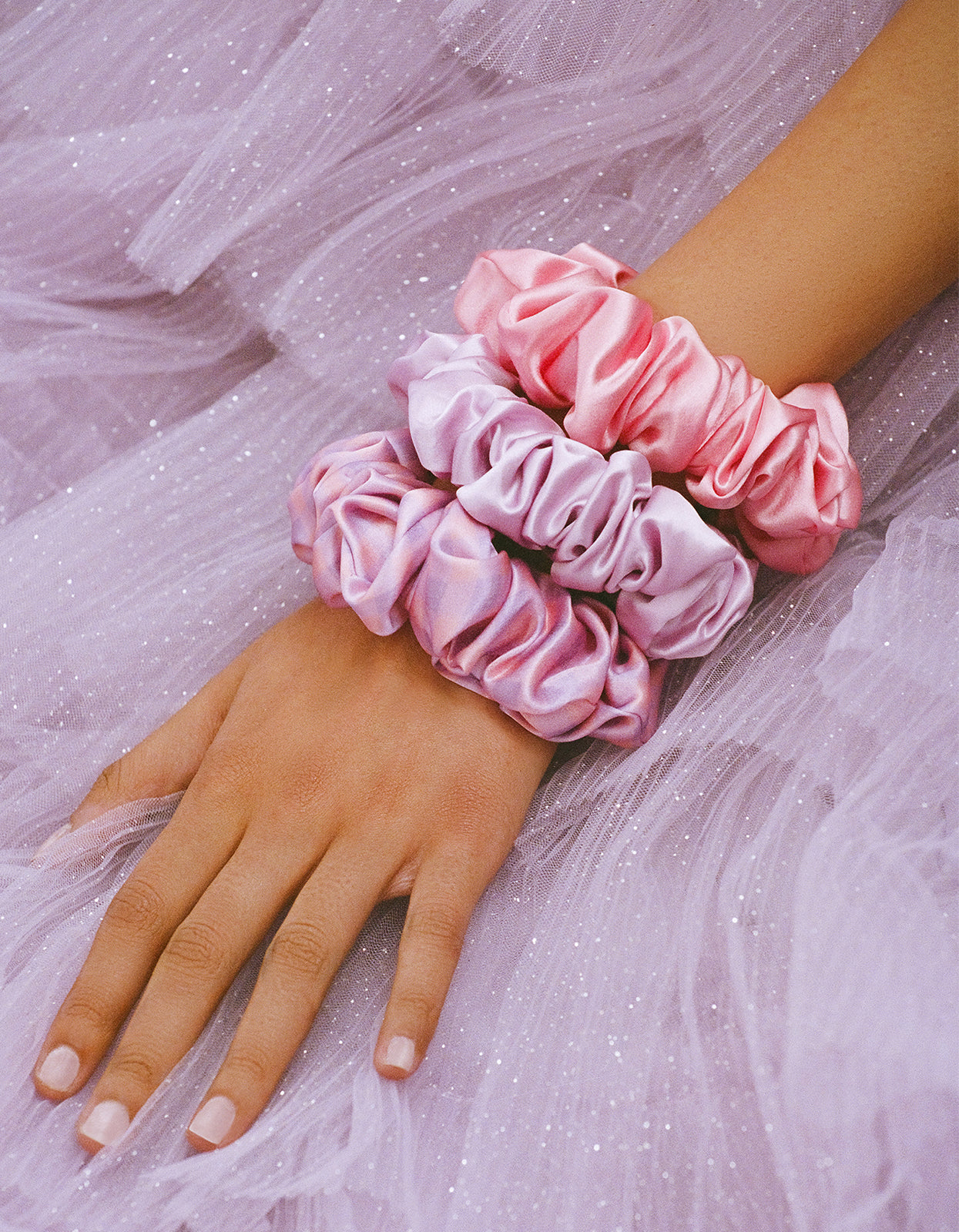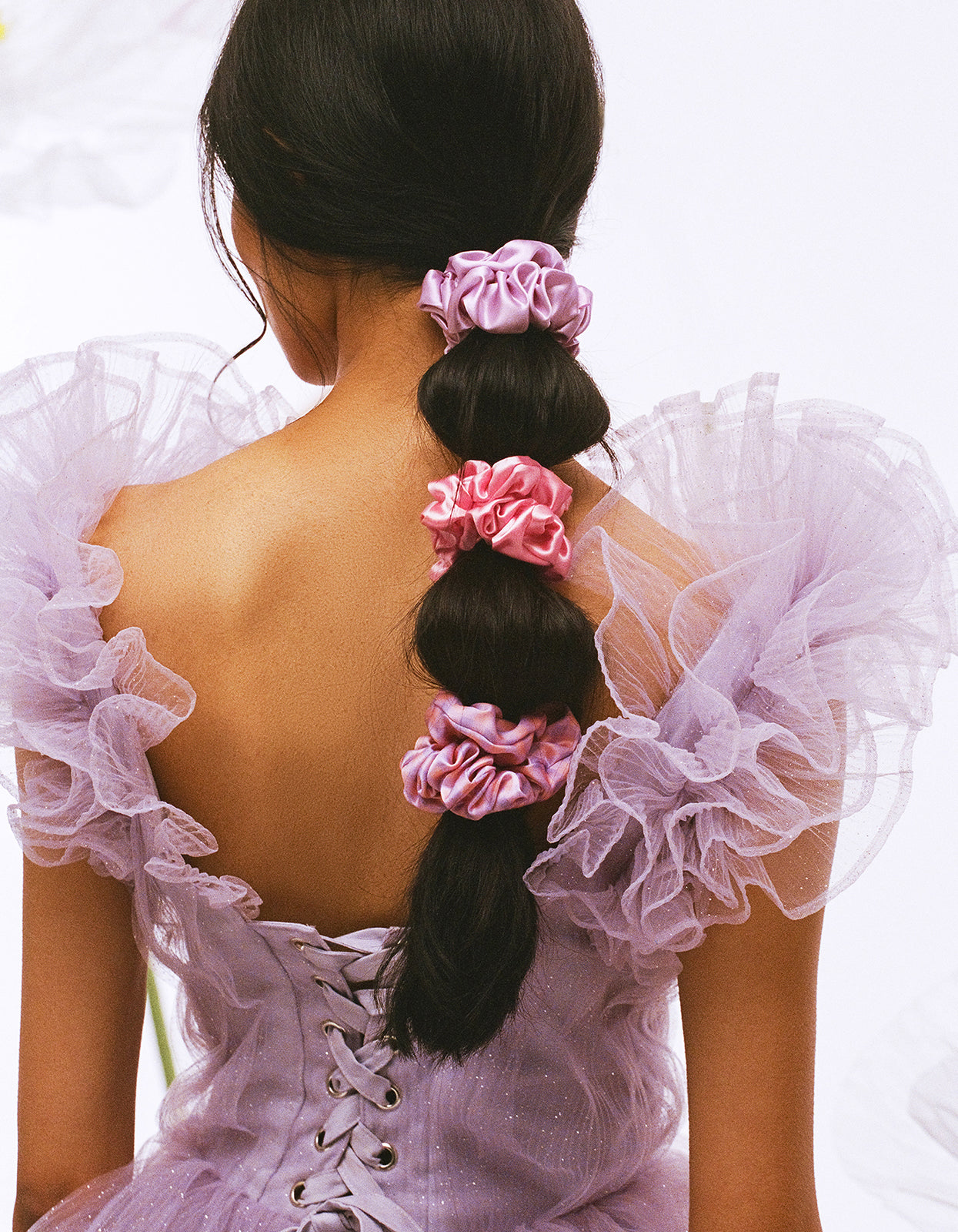 Indulge in the ultimate luxury with Slip's Belleflower Silk Scrunchie Set.