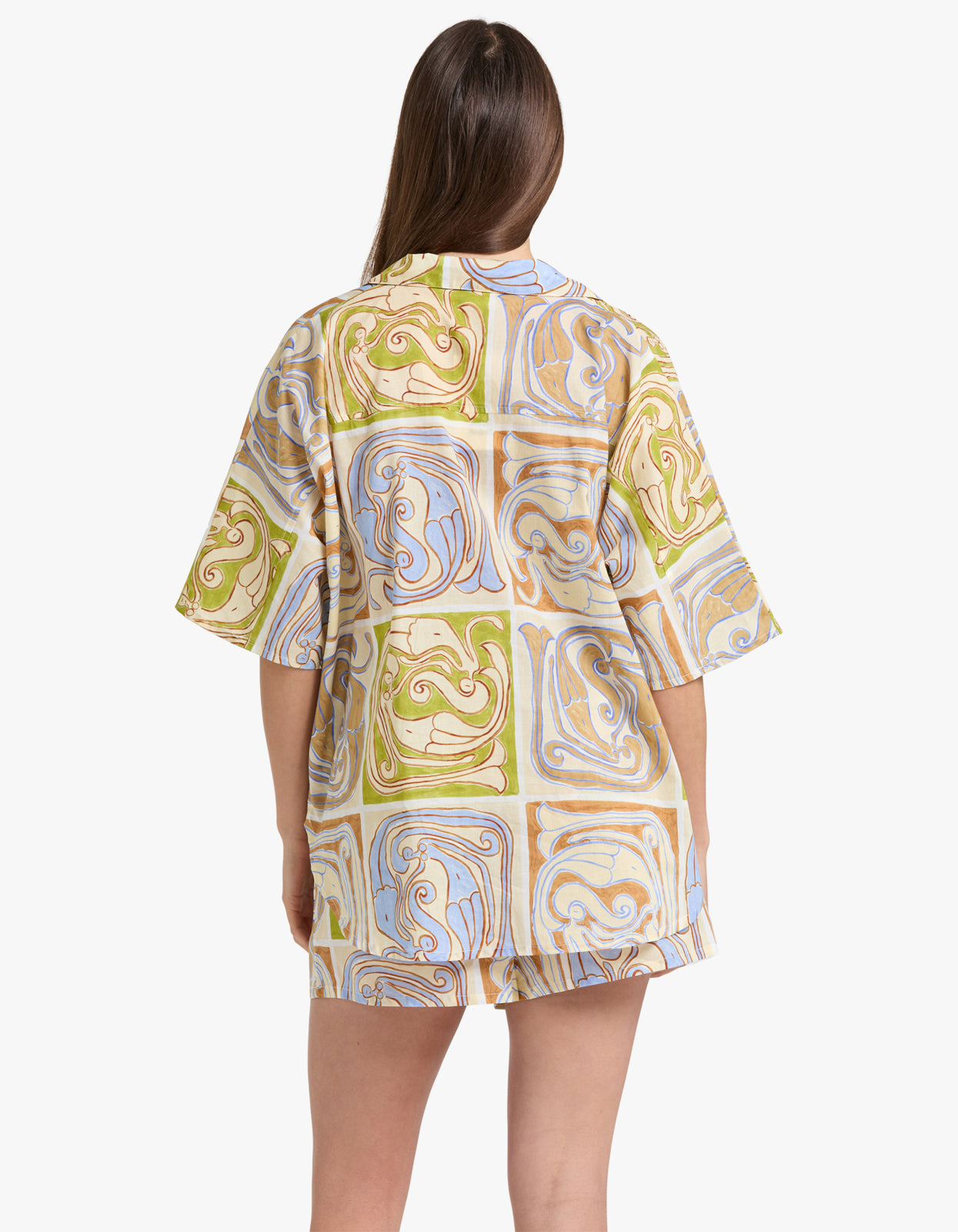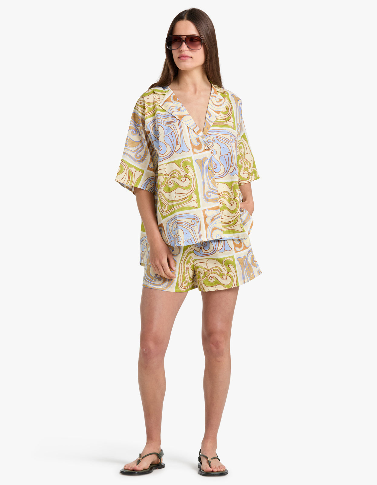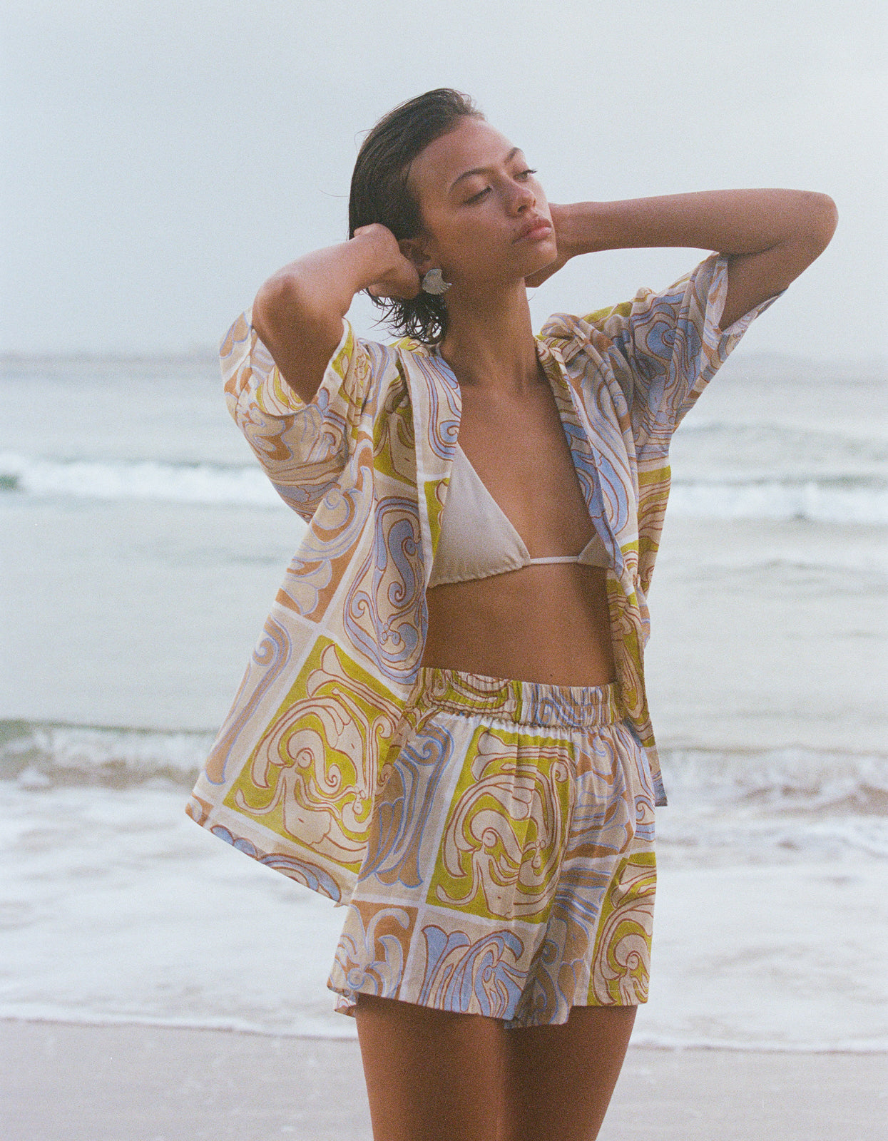 Elevate your beach style with our Overswim Set in Siren Tile from Soleil Soleil.