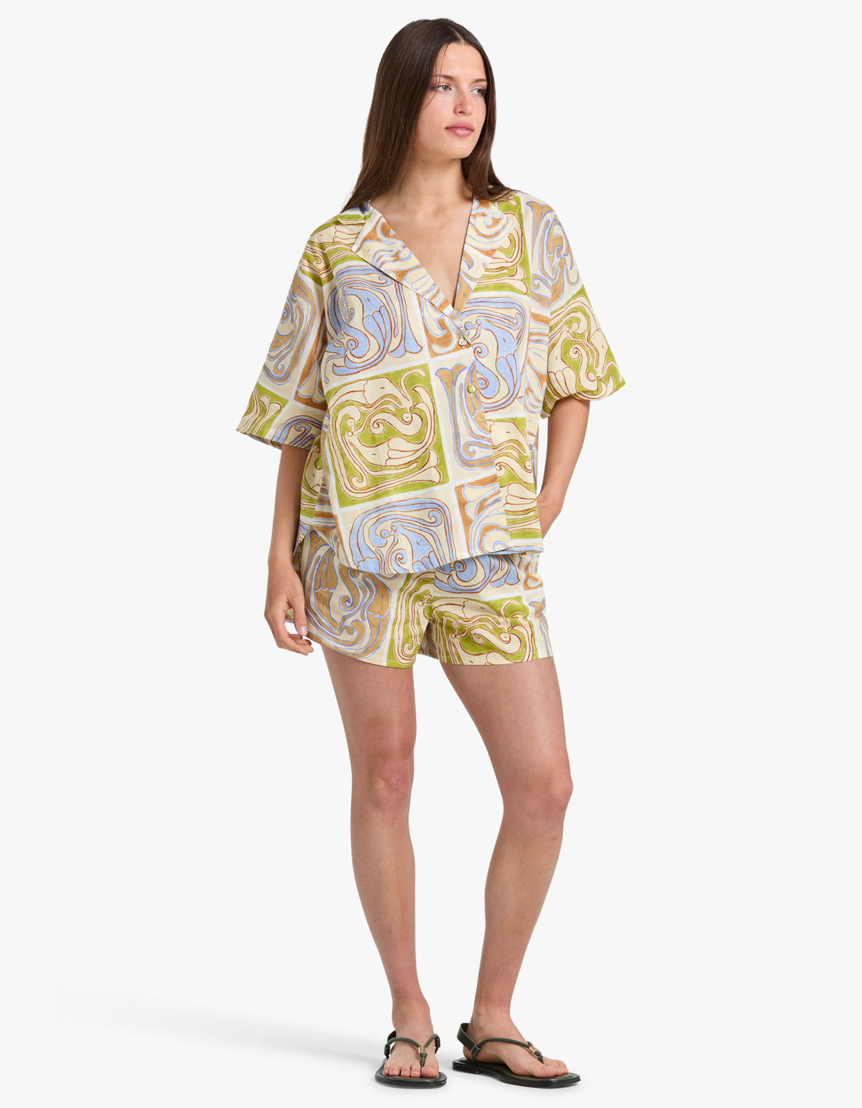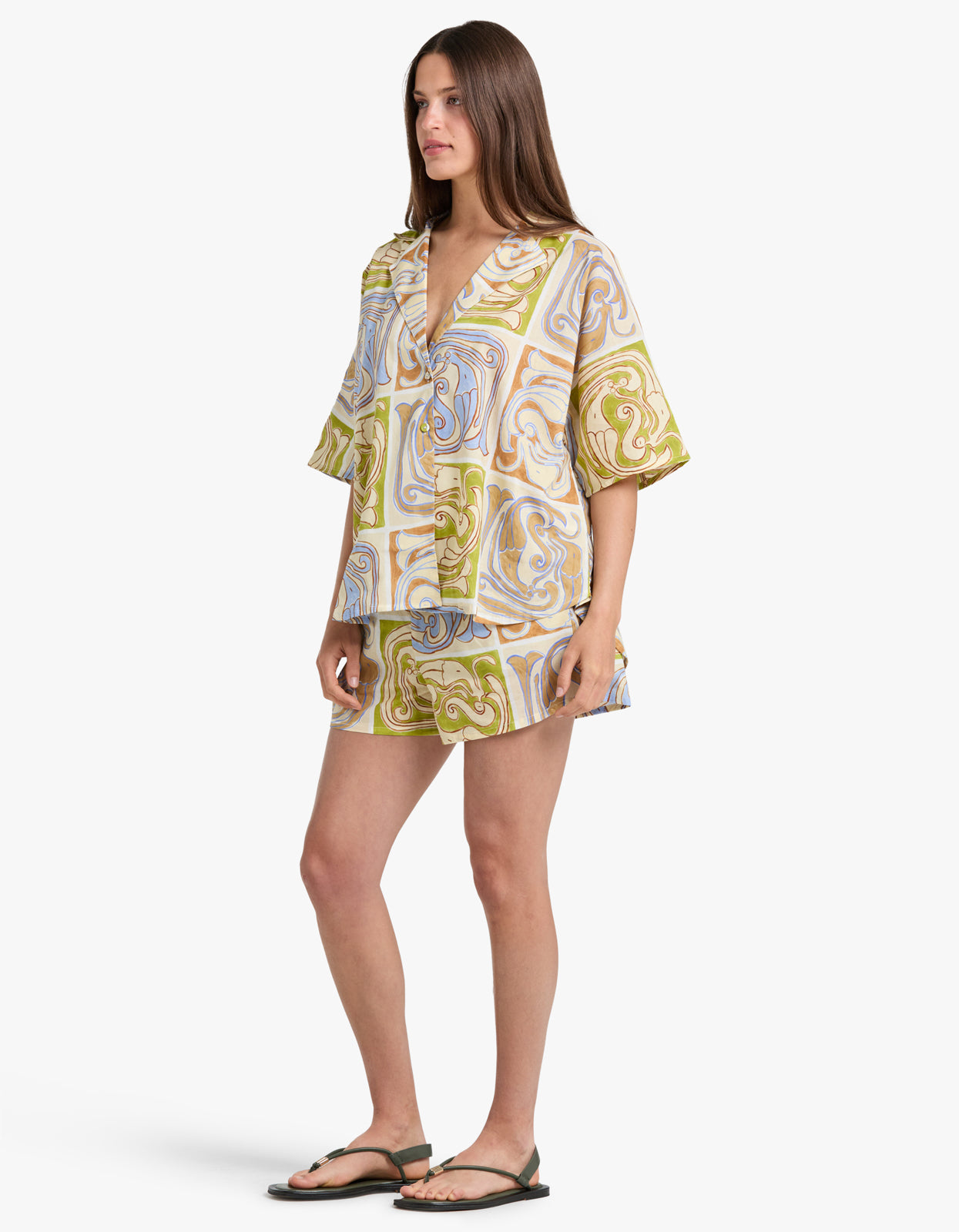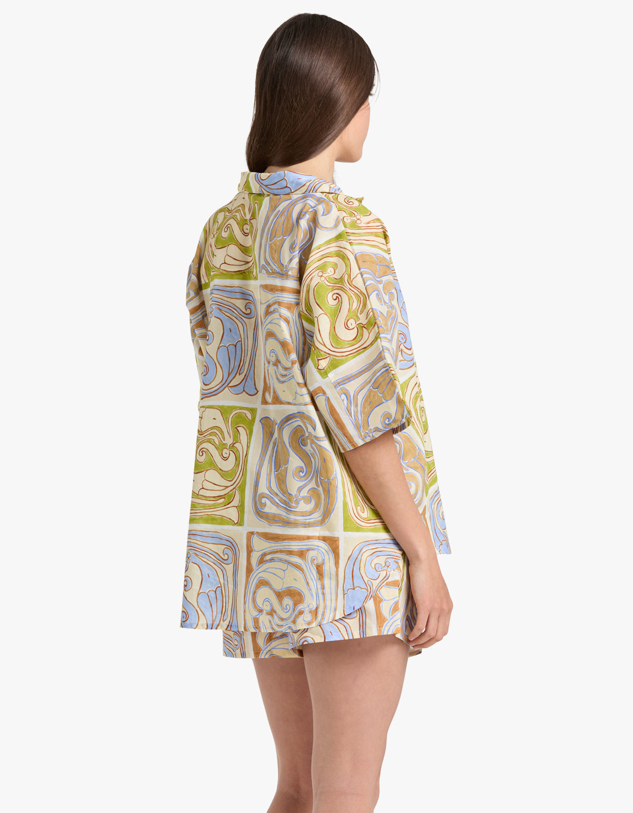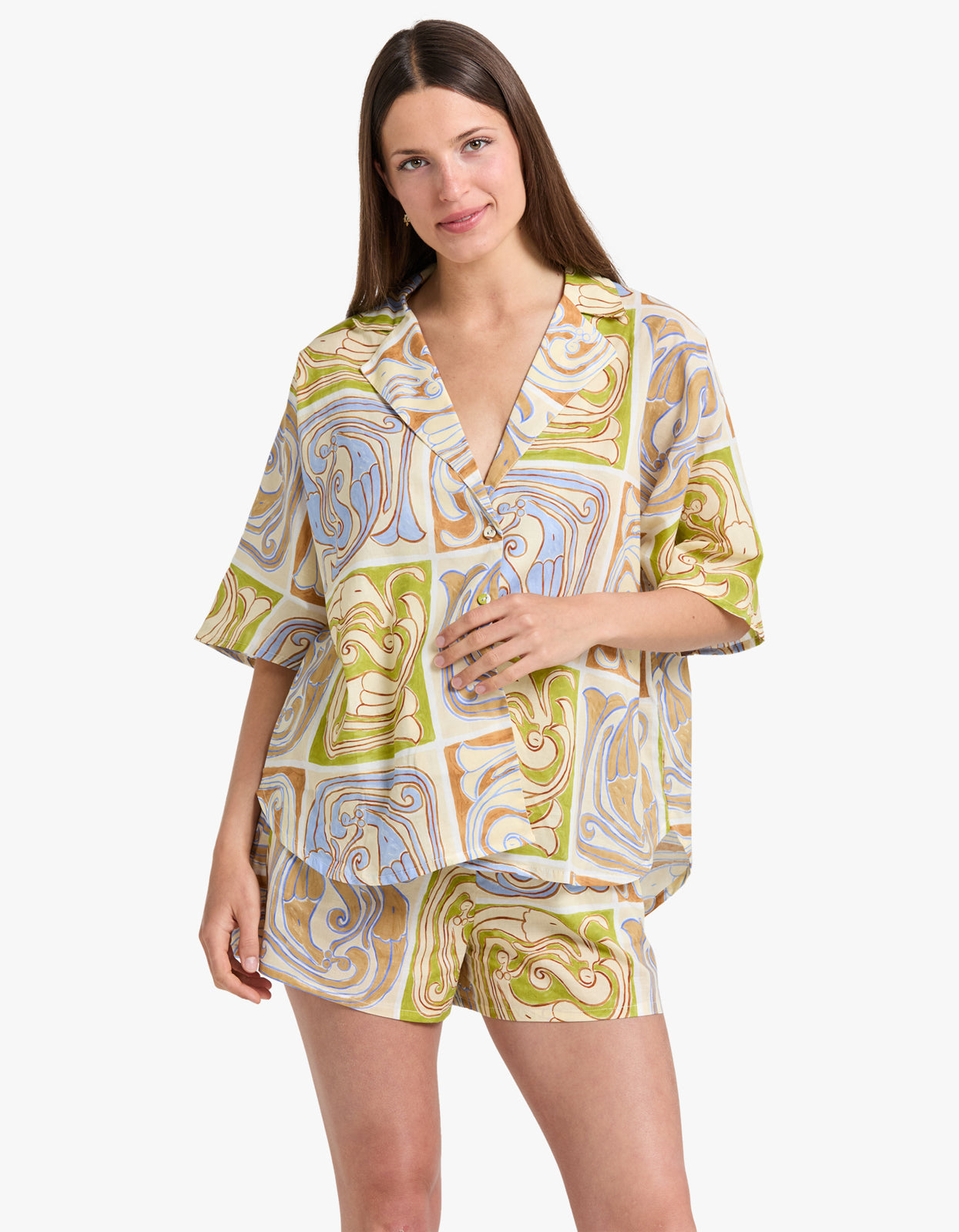 Elevate your beach style with our Overswim Set in Siren Tile from Soleil Soleil.