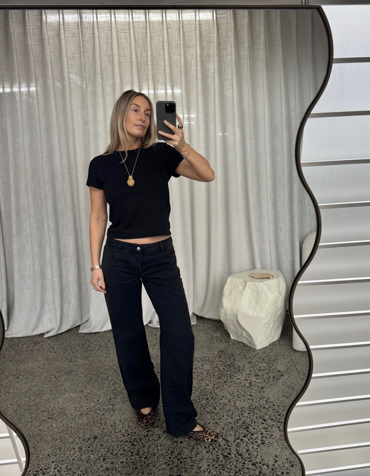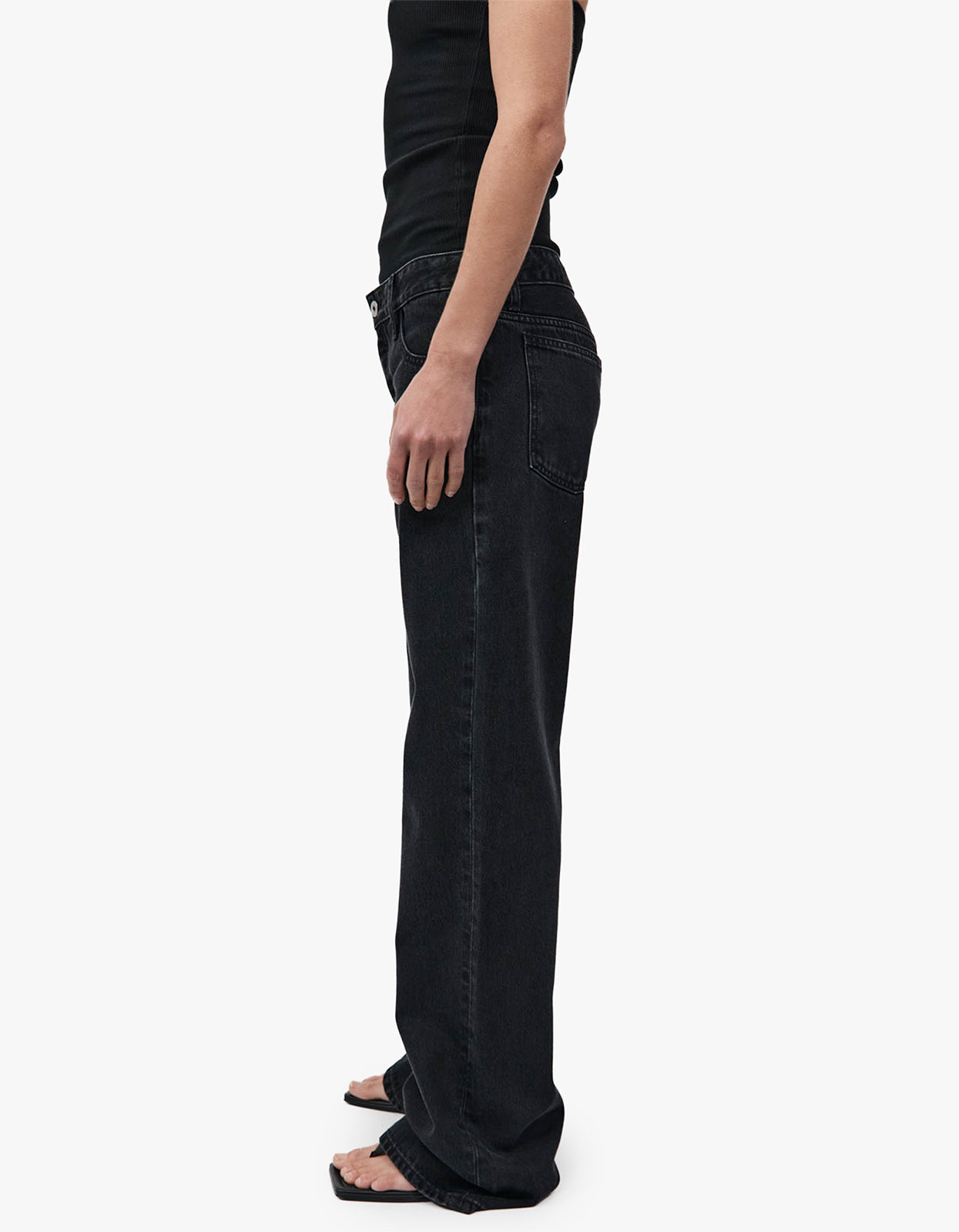 Elevate your denim game with St Agni's 90S Low Rise Jeans in Washed Black.
