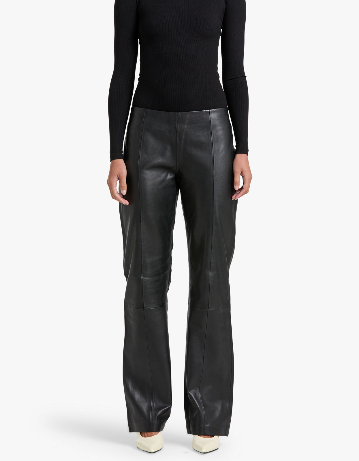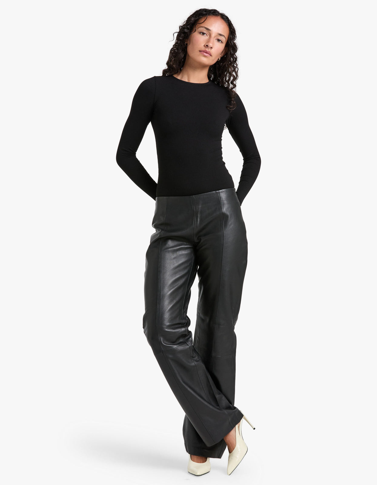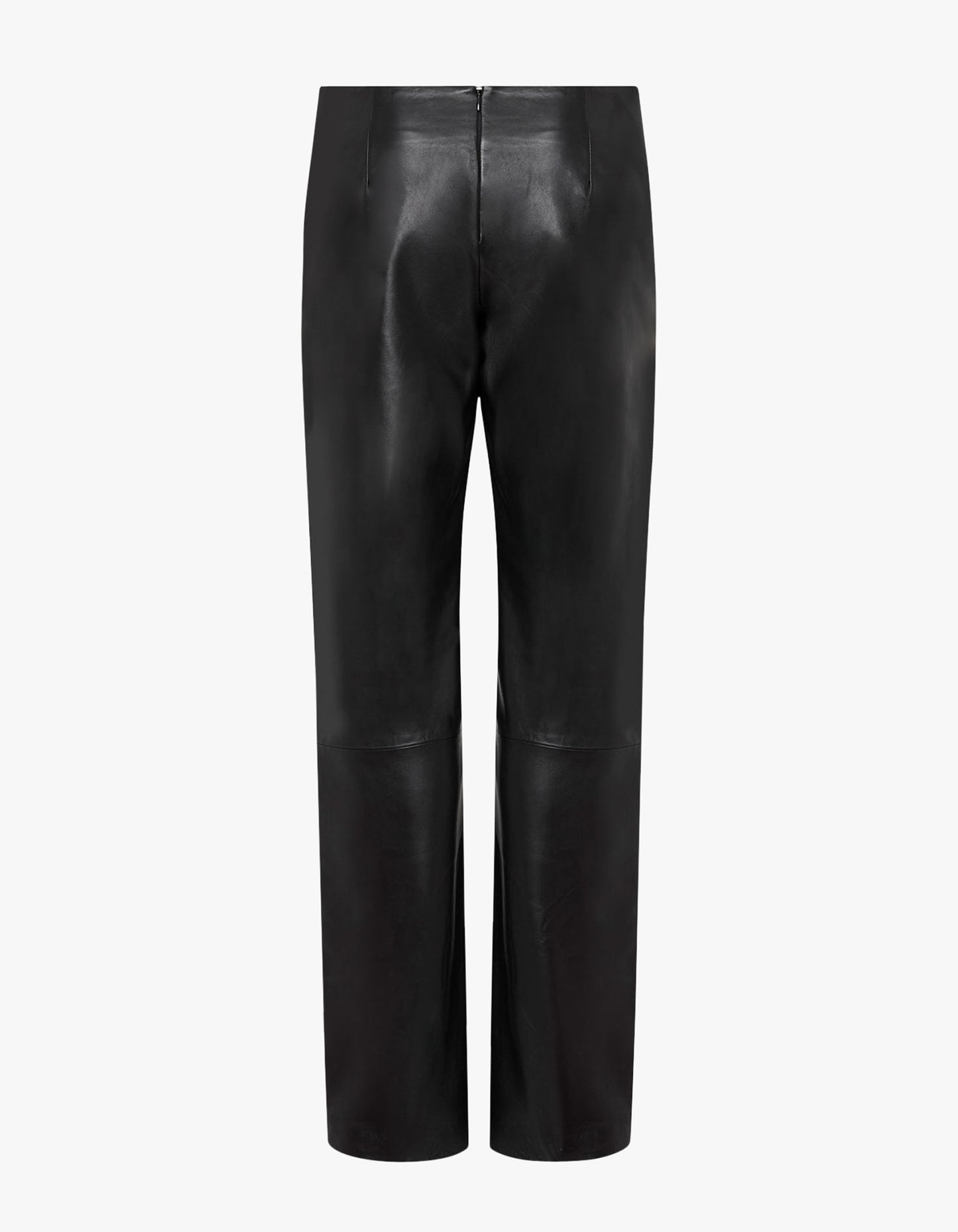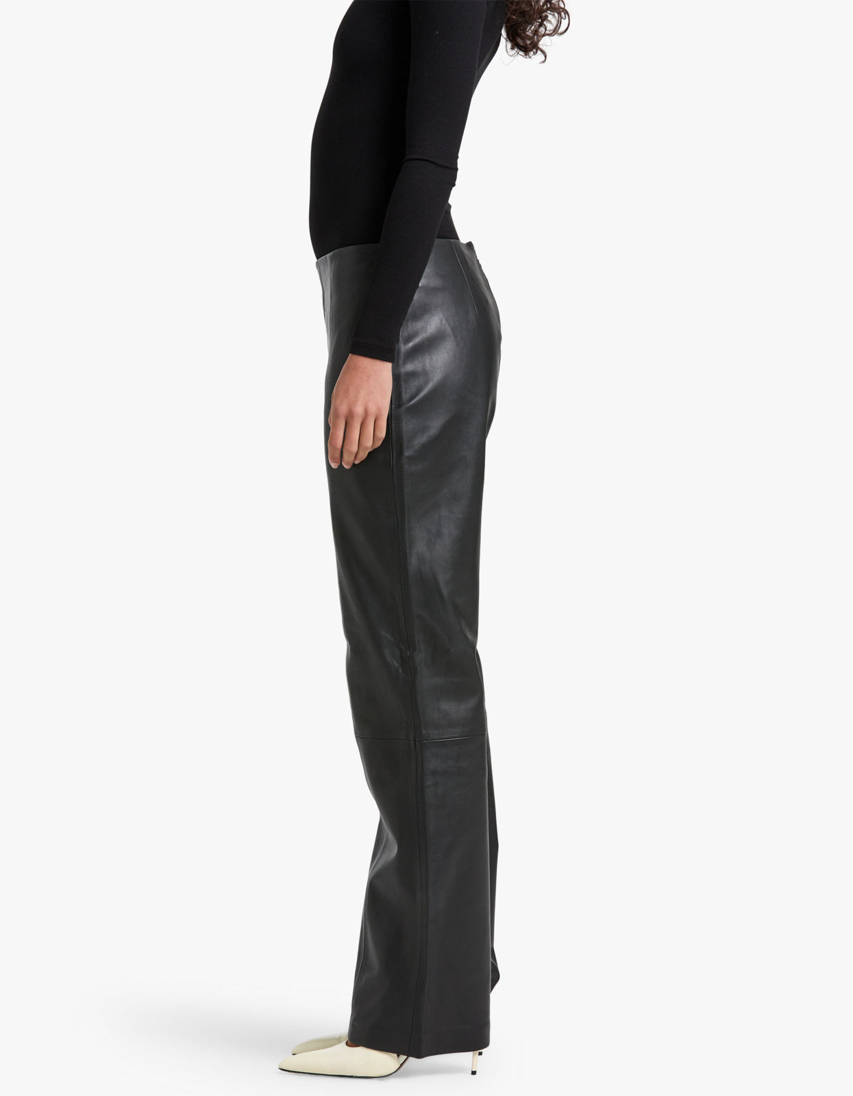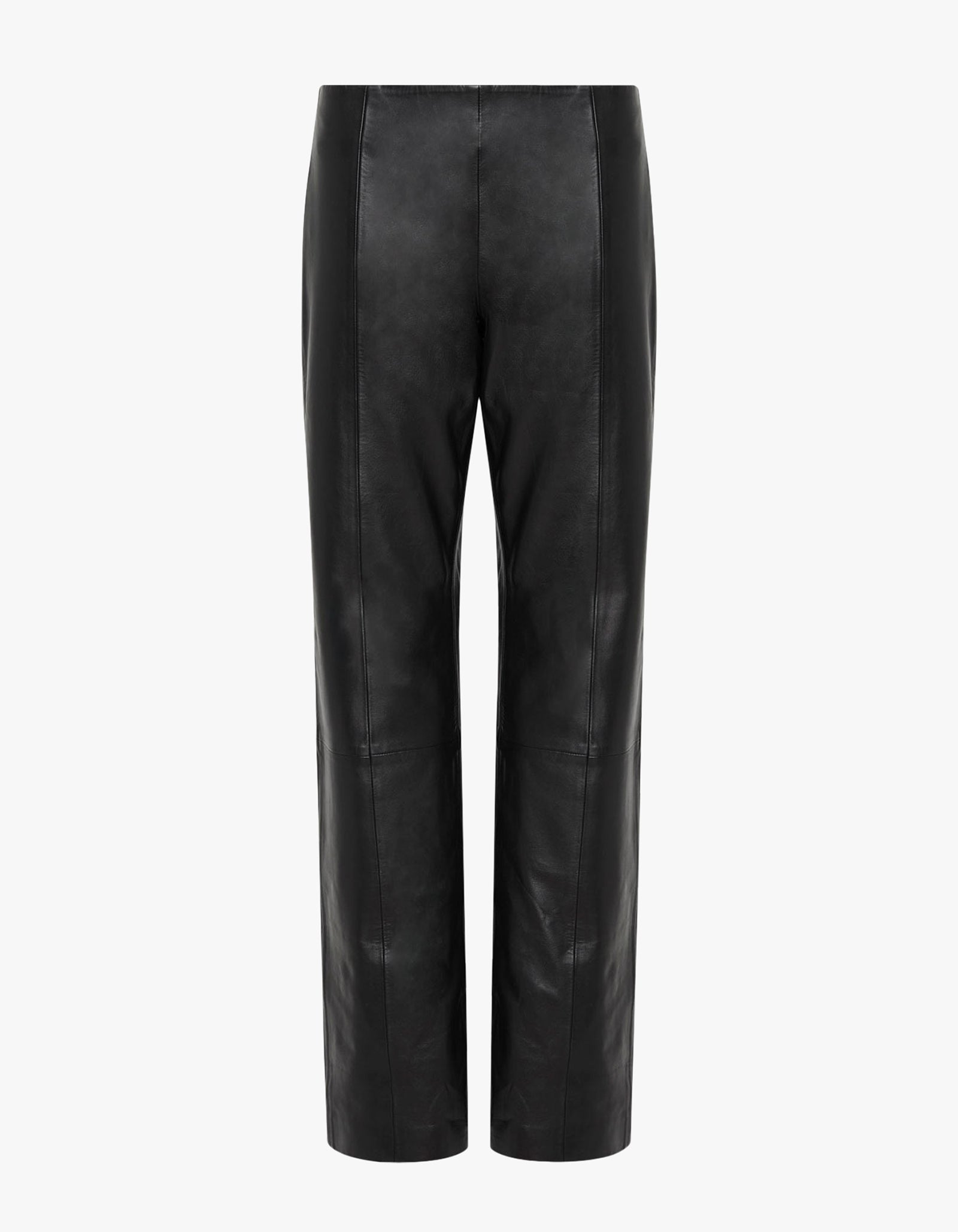 These black leather pants from St Angi offer a sleek and trendy look with their straight leg and fitted silhouette.