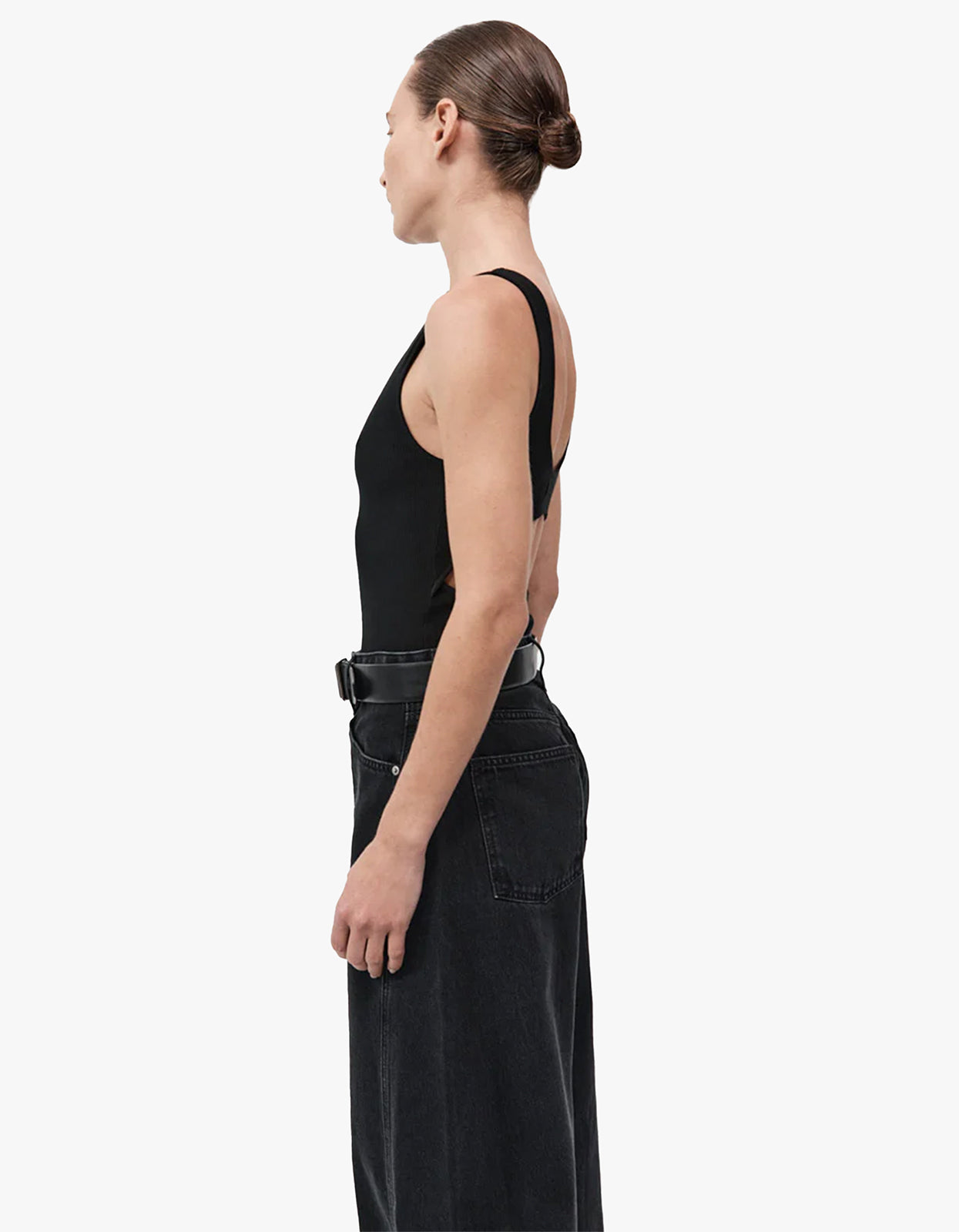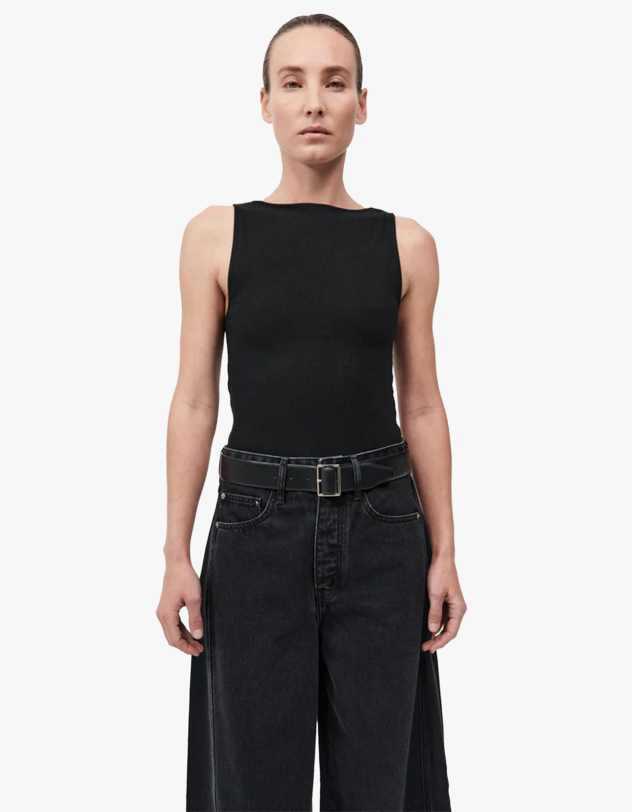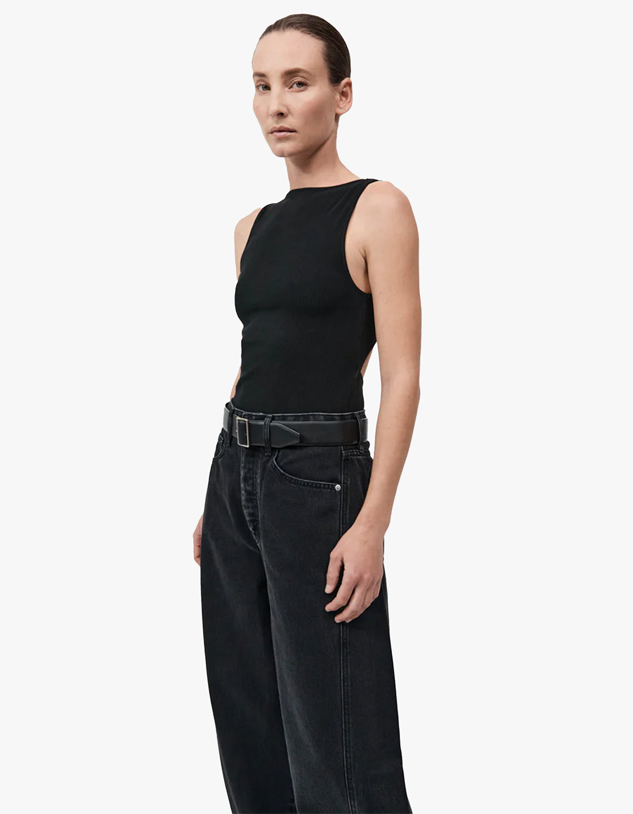 Elevate your everyday look with our Rib Bateau Cut Out Top in black from St Agni.