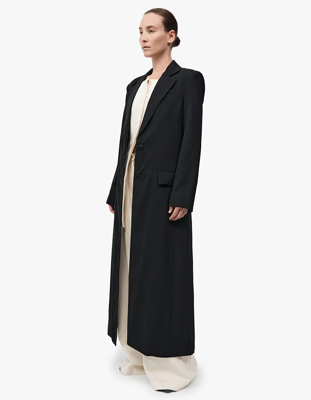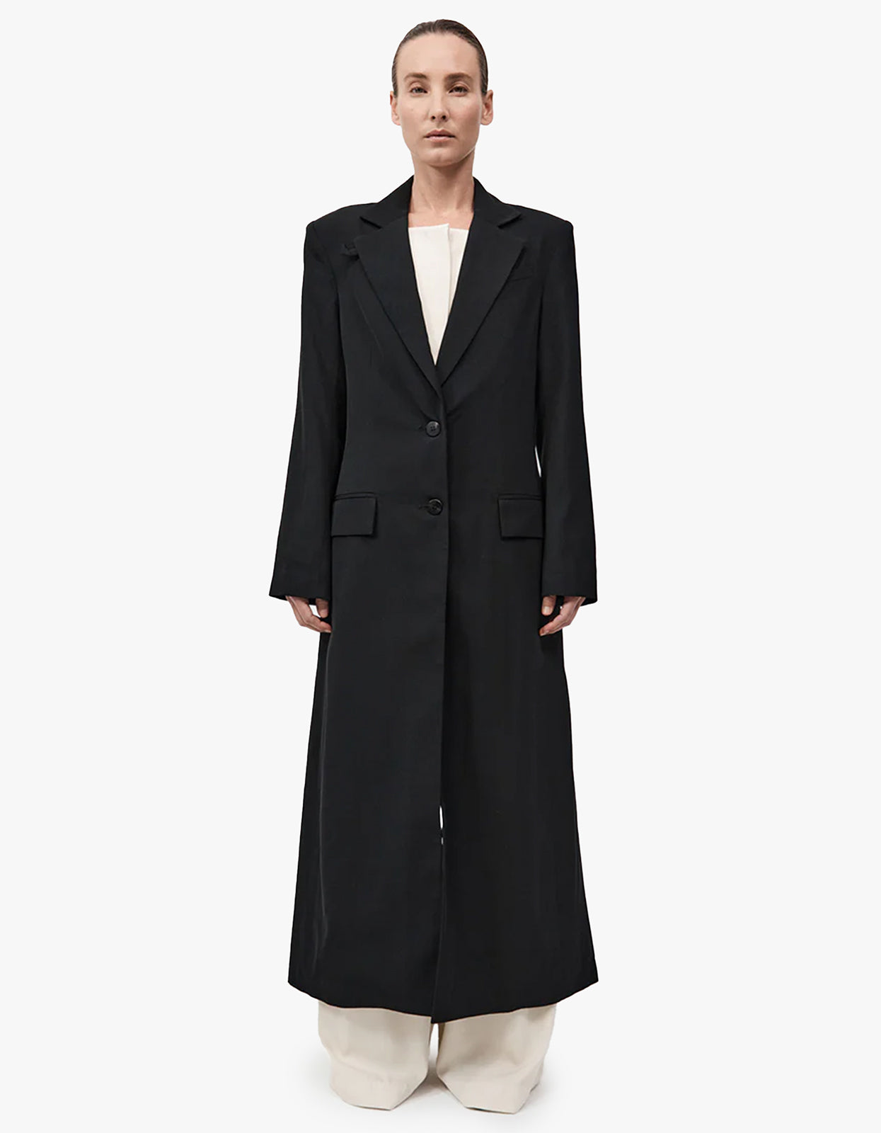 Indulge in sophistication with the Tailored Maxi Coat by St. Agni.