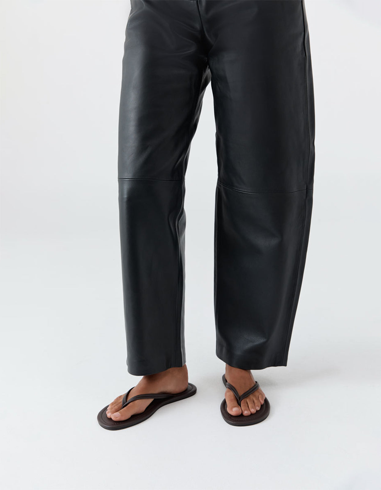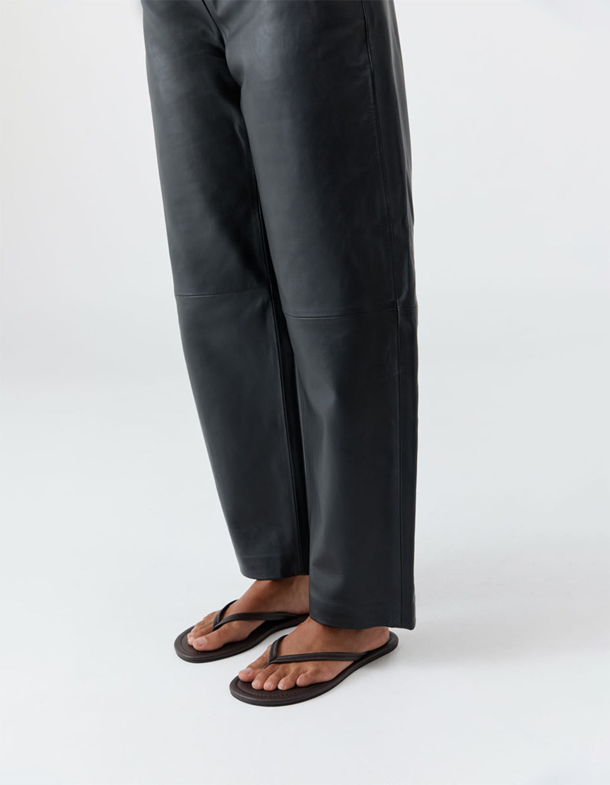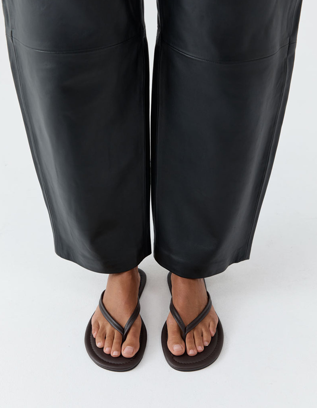 The Thong Detail Slide embraces ease and craftsmanship with slim leather straps and contrast stitch detailing, featuring a padded insole for comfort.