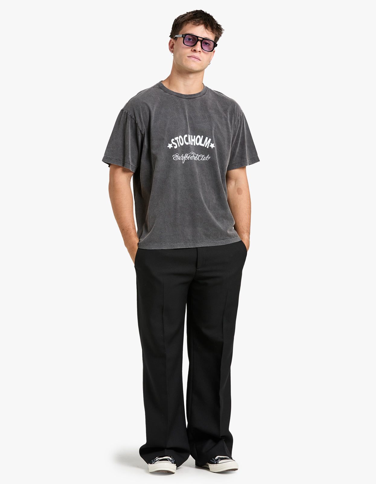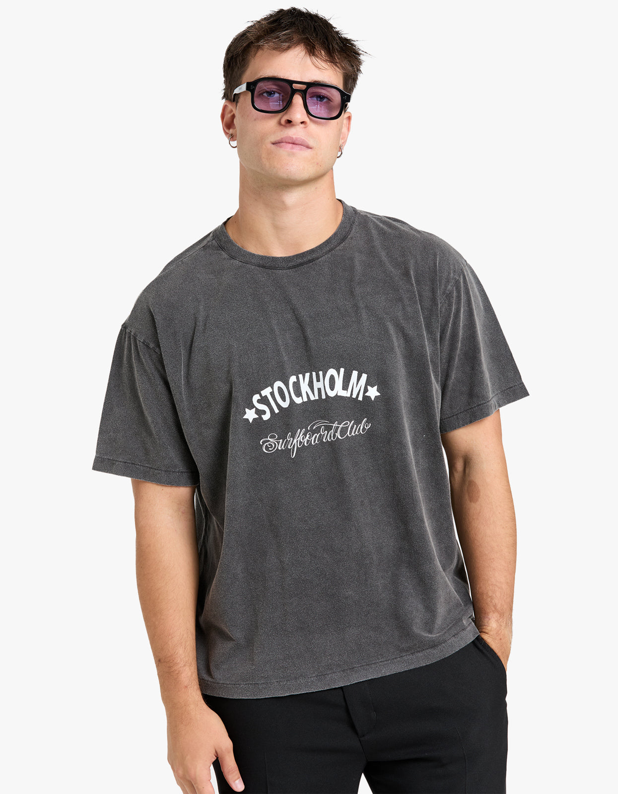 Introducing our exclusive Box Tee Sign in a sleek black colourway by Stockholm Surfboard Club.