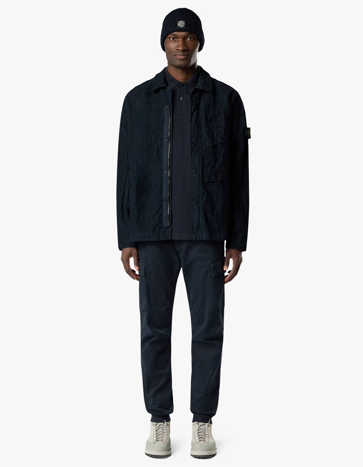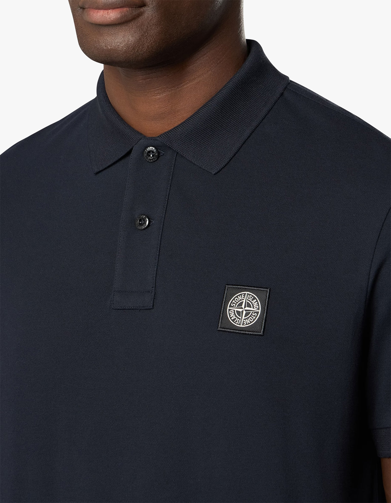 Introducing the Stone Island 2200008 S/S Polo Shirt in Navy Blue—a refined short-sleeve polo crafted in organic cotton piqué with stretch that delivers timeless style with modern comfort.