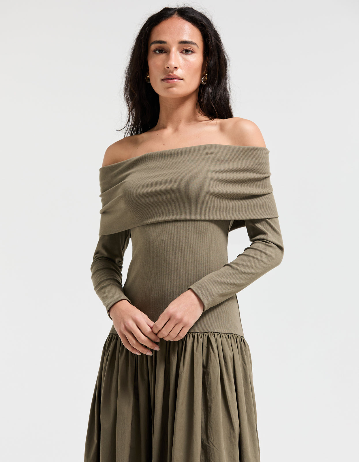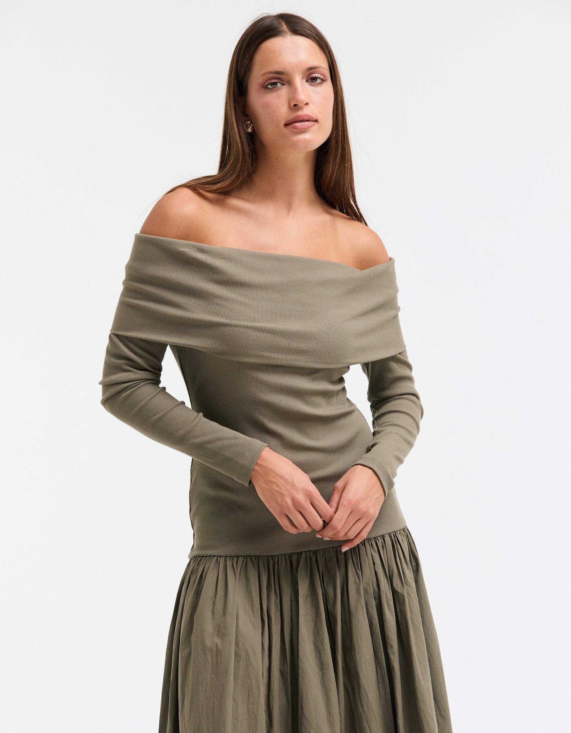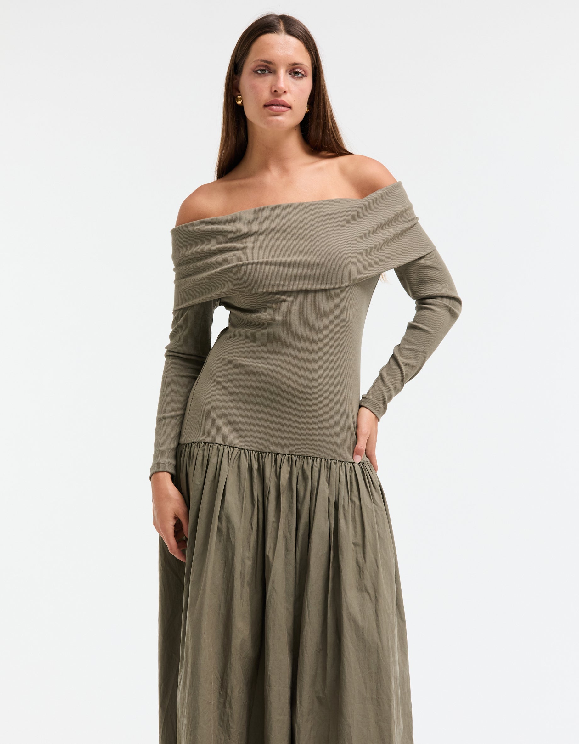 Bianca Off Shoulder Dress - Khaki