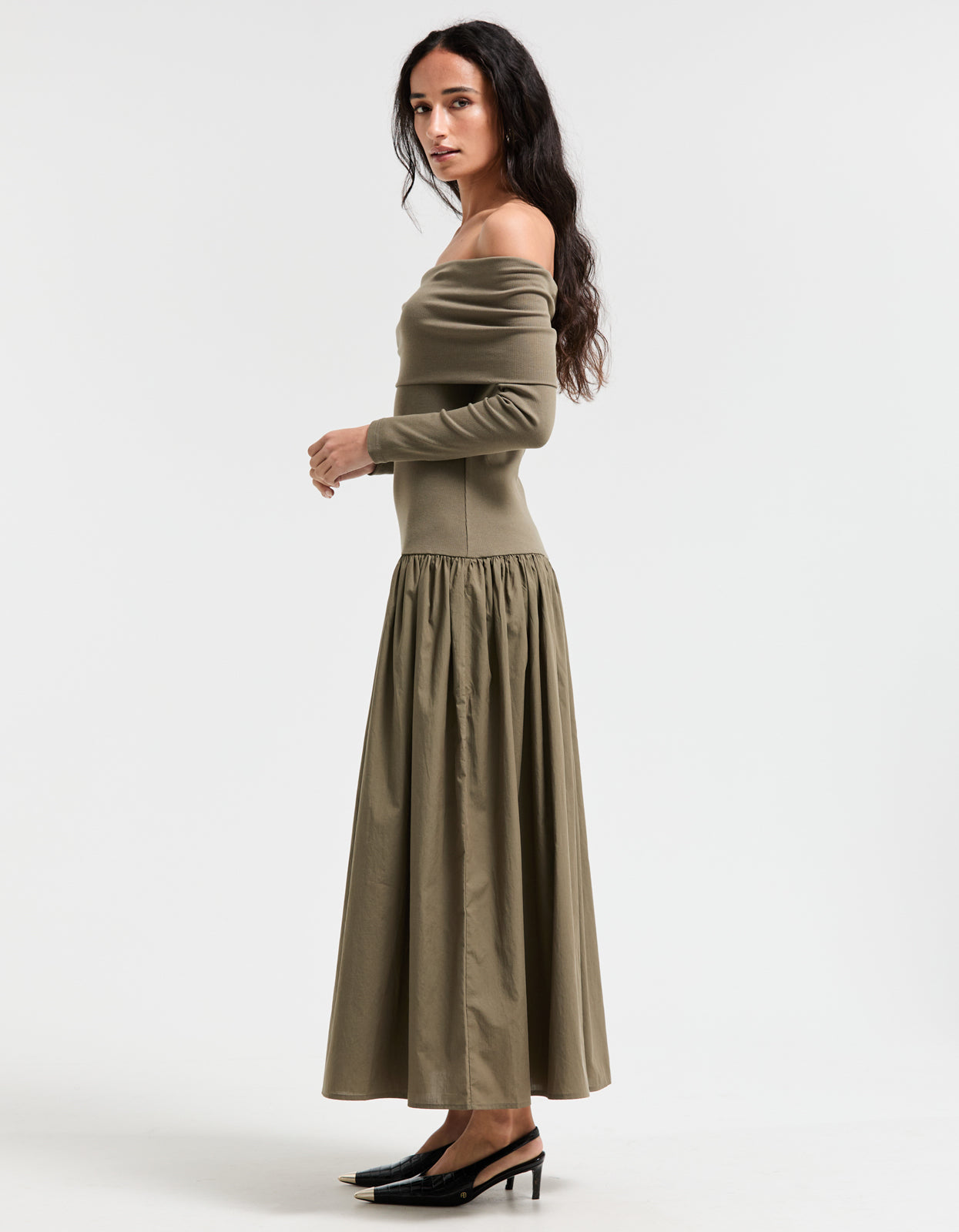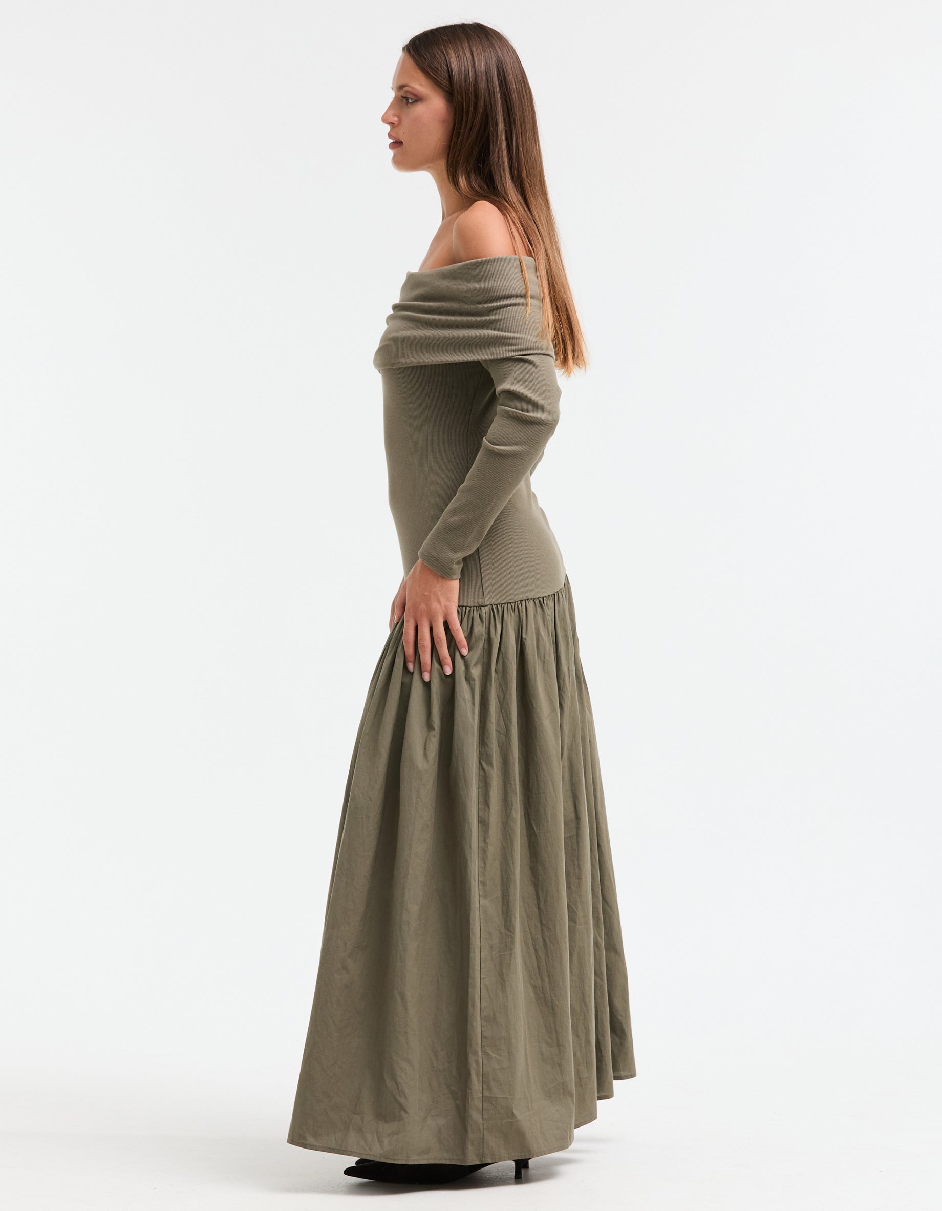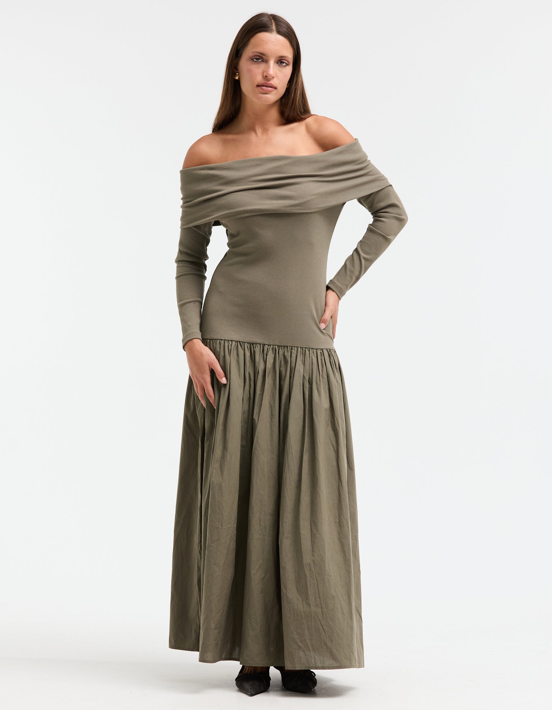 Bianca Off Shoulder Dress - Khaki