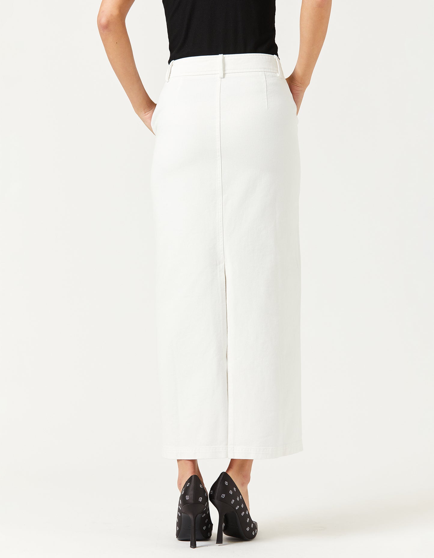 On everyone’s wishlist last season and no doubt, yet again - The Blake Midi Skirt via Superette’s latest collection Palma is back again and this time in an all white colourway. Cut from a 100% cotton base detailed with tonal topstitching, this longline denim skirt is going to be your go to this season, no matter what. Team with the Nash Shirt and chunky slides ahead of your next long lunch.