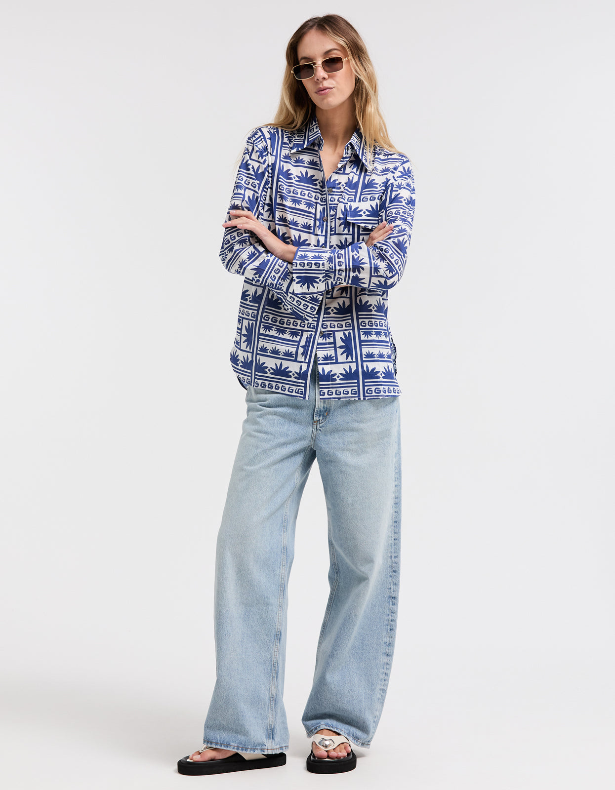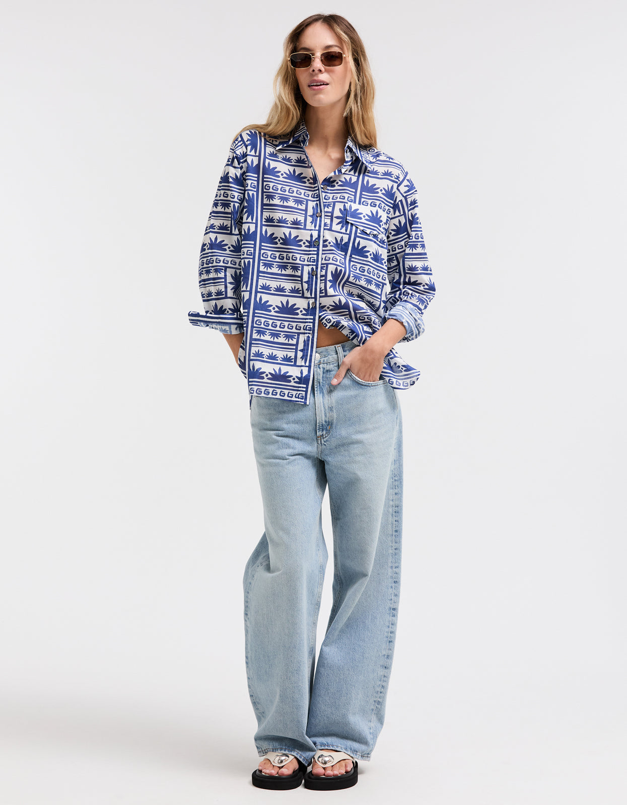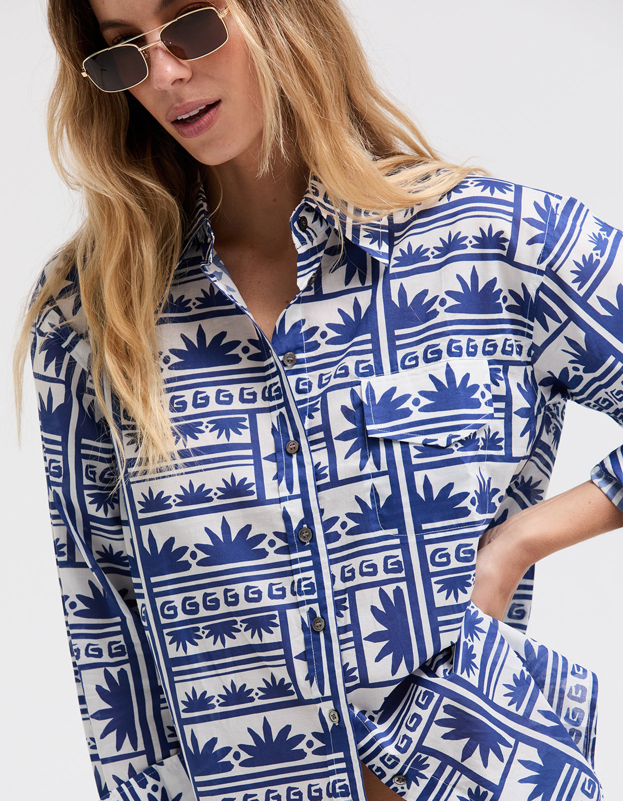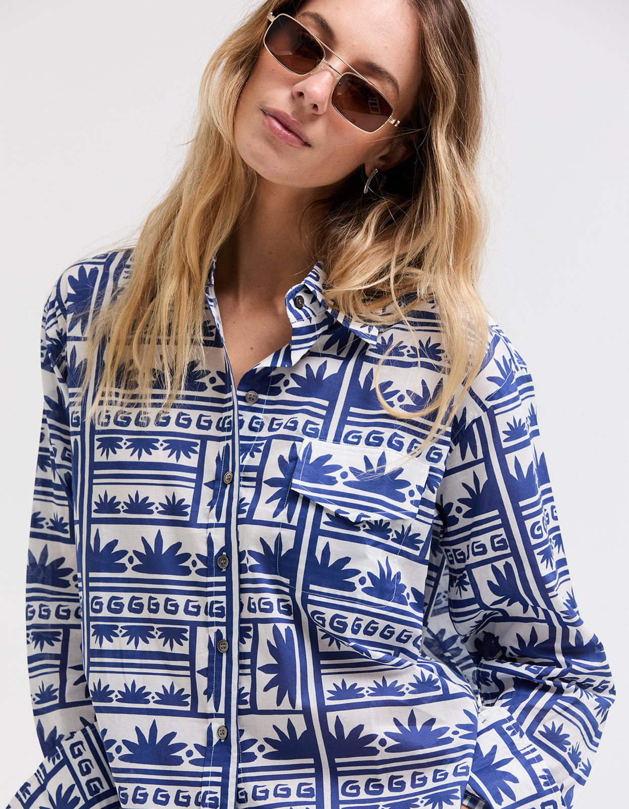 Blue/WhiteThe Superette Celestial Sundance Shirt in Blue/White is the perfect addition to your summer wardrobe, effortlessly combining style and comfort.