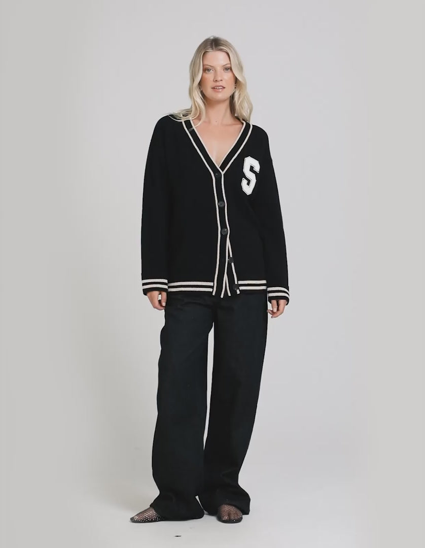 Achieve a sharp, preppy look with the Superette College Cardigan in black—perfect for adding a smart, polished touch to any outfit.