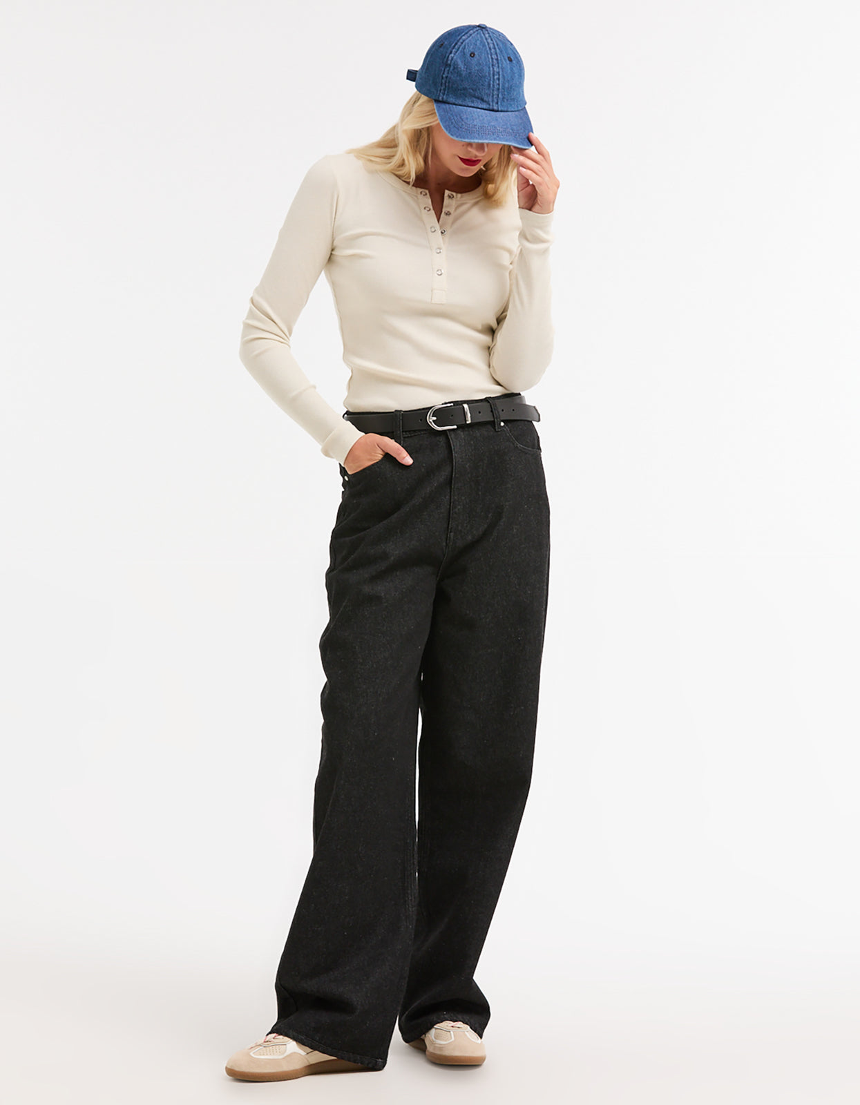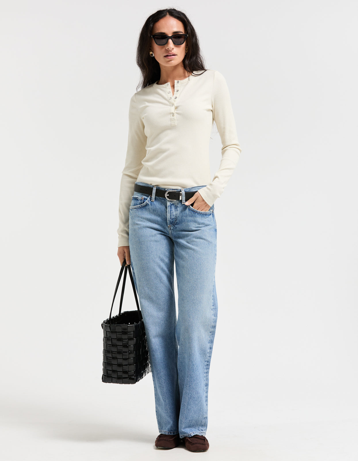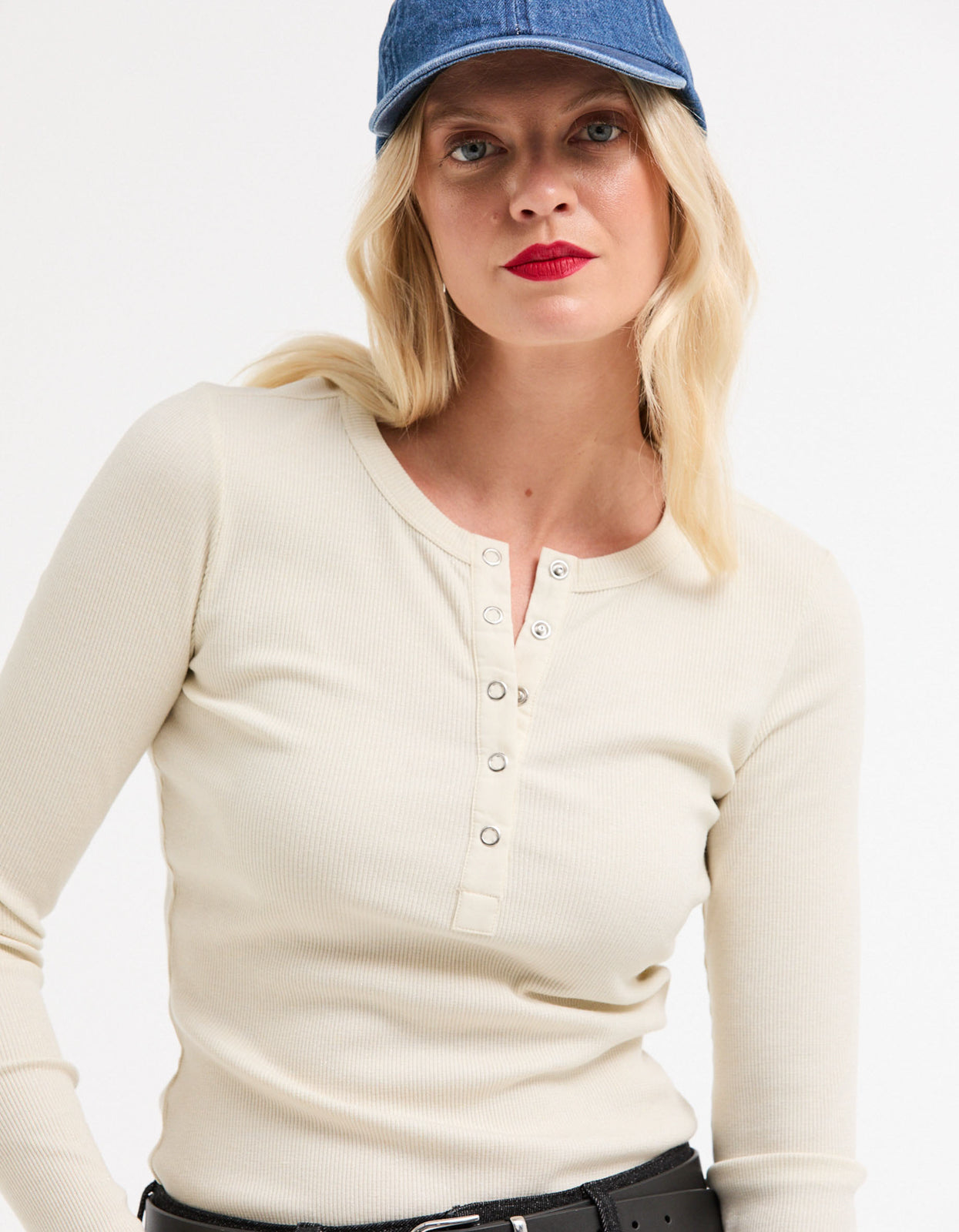 Step into effortless comfort and style with the Superette Colt Henley Top in Off White.