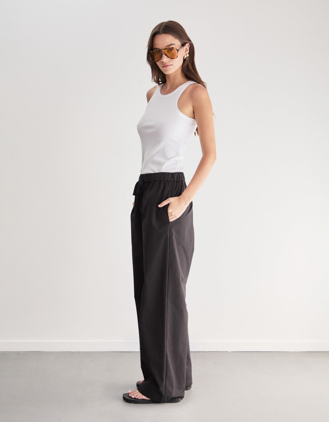Cut in a relaxed wide-leg silhouette, these pants deliver that perfect balance of comfort and polish. The elasticated waistband with a soft drawcord keeps things easy, while the clean, minimal design makes them endlessly versatile. Simple, sleek, and always reliable, they’re the pair you’ll reach for on repeat whether it's weekend errands to laid-back office days.