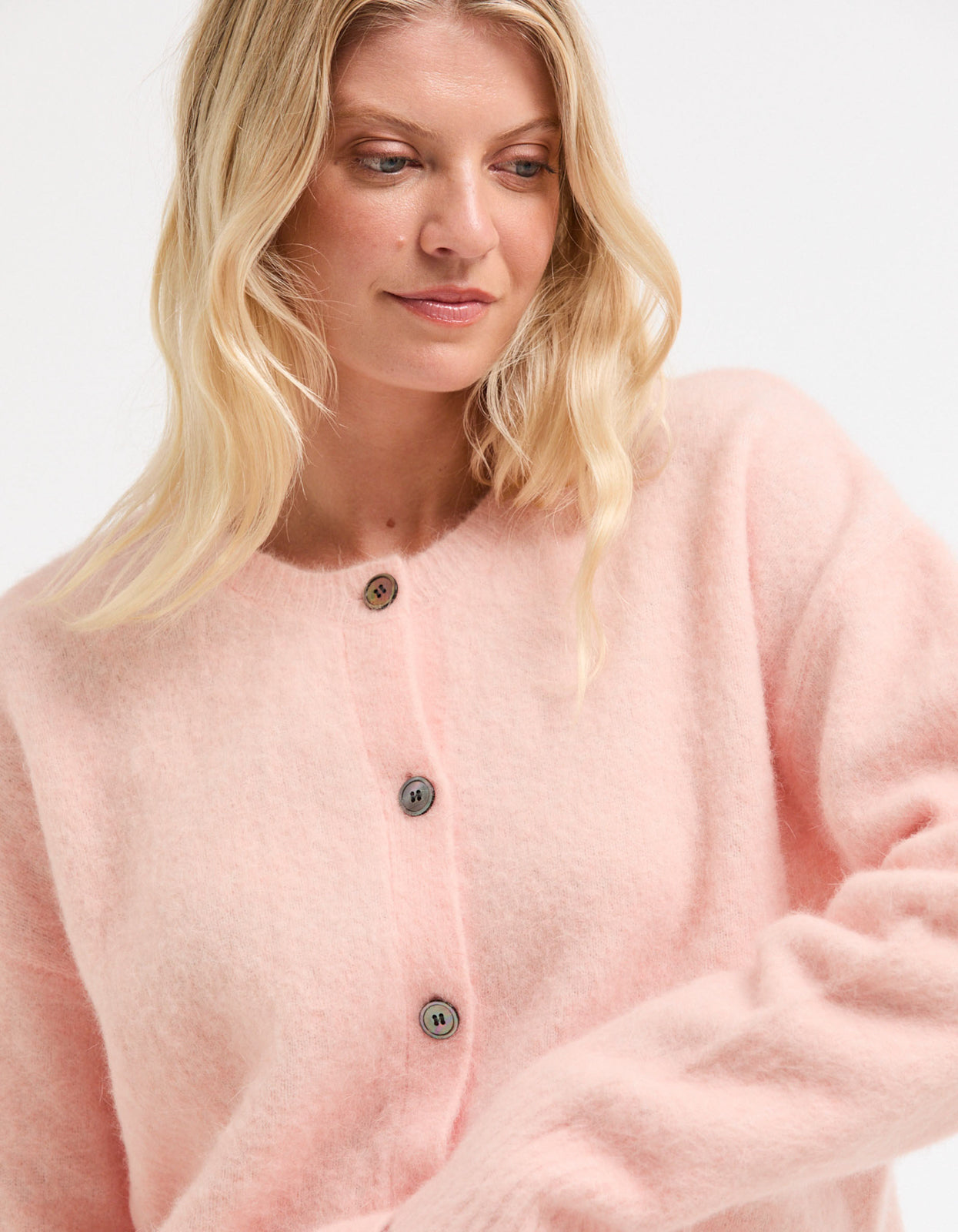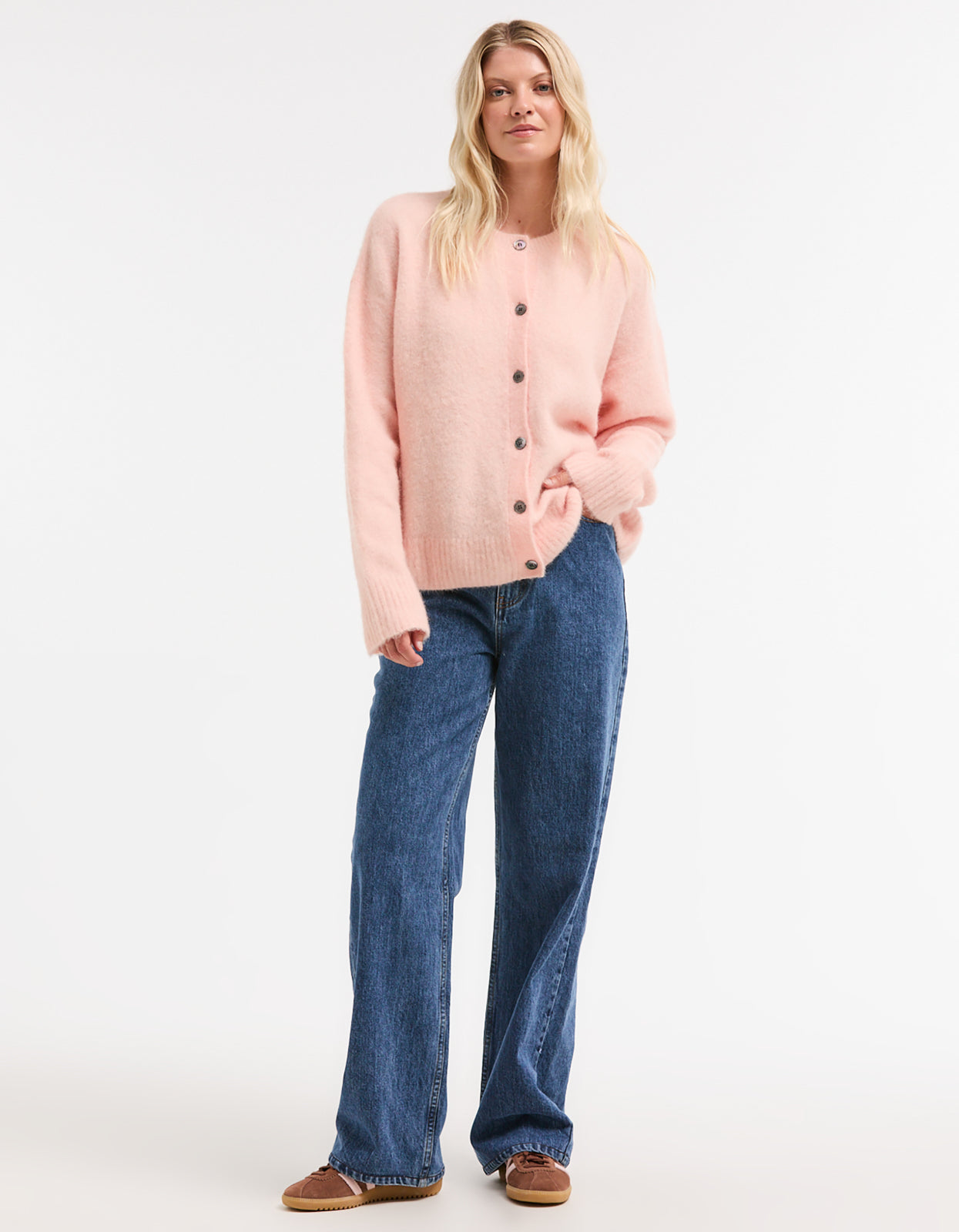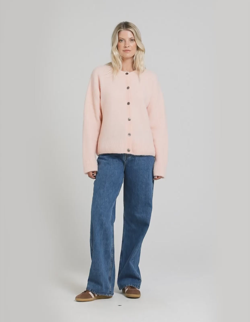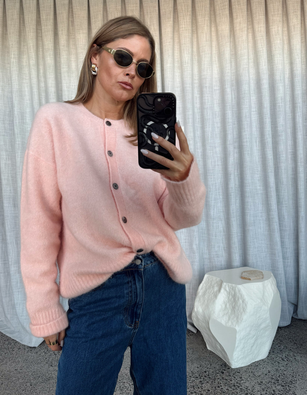 Get ready to add some cosy cuteness to your weekly rotation with the Coven Cardi! This button-down cardigan in a fresh peach hue features contrast grey buttons and a relaxed fit, making it the perfect go-to for effortless style. You can never go wrong with this soft, peachy knitwear staple!
