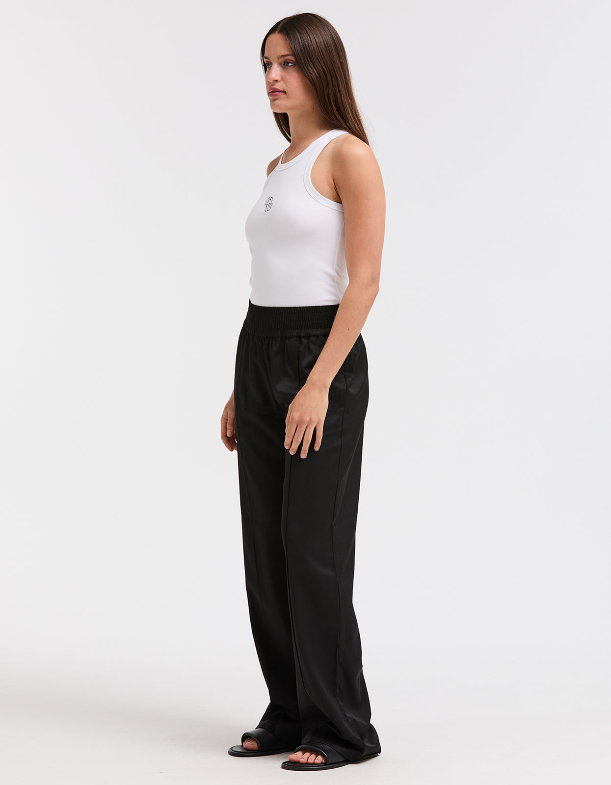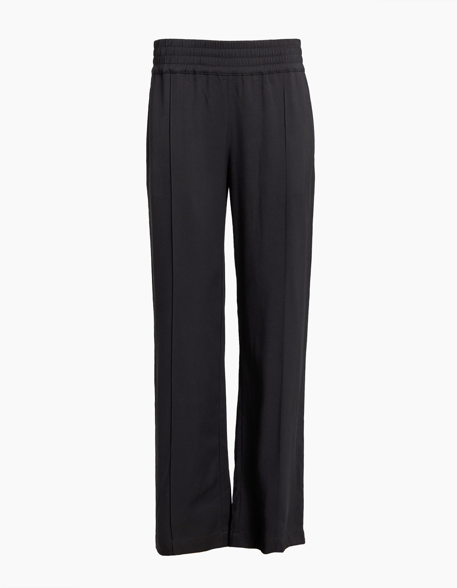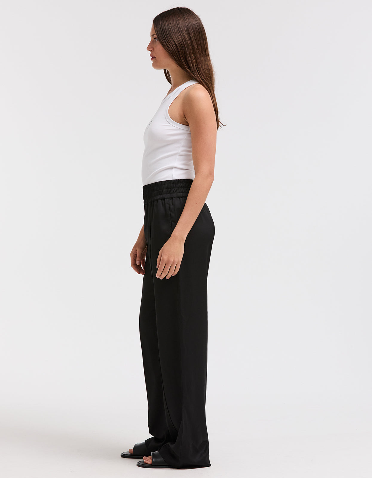 The Hawks Pant via Superette is here - Sure to be a sweet new addition to your summer attire, this pull-on style pant features a shirred elasticated waistband with seam detailing down the legs - From the office to arvo drinks, you can never go wrong with a chic black pant.