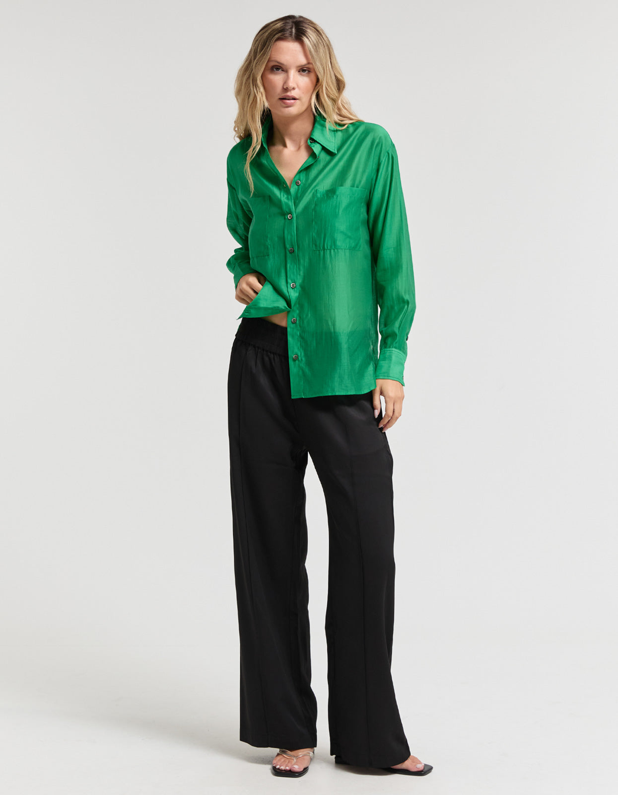 The Hawks Pant via Superette is here - Sure to be a sweet new addition to your summer attire, this pull-on style pant features a shirred elasticated waistband with seam detailing down the legs - From the office to arvo drinks, you can never go wrong with a chic black pant.