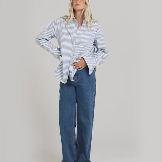 A timeless and beloved Superette wardrobe piece - the stripe shirt. This classic stripe shirt staple is given a modern edge with the contrasting stripes, and taken to a new fresh level.
