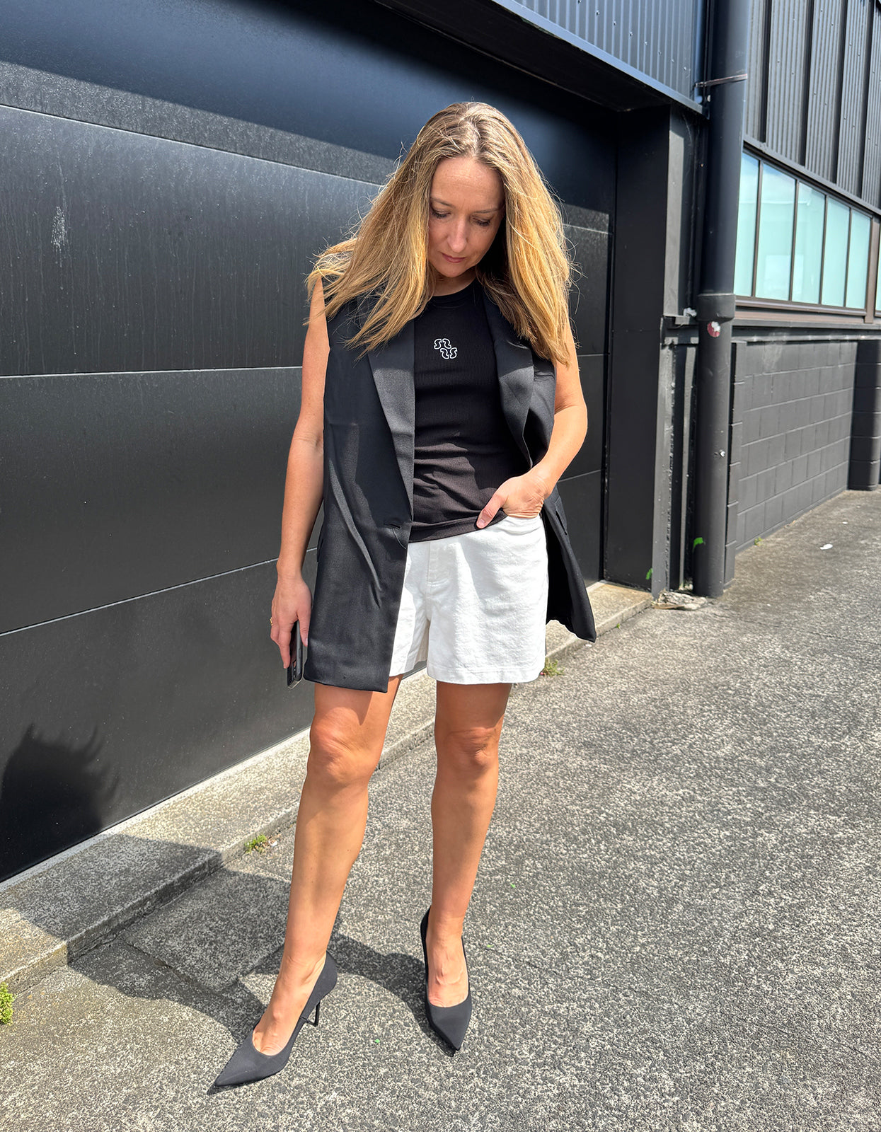 Introducing the Superette Isabelle blazer vest in a sleek black colourway.