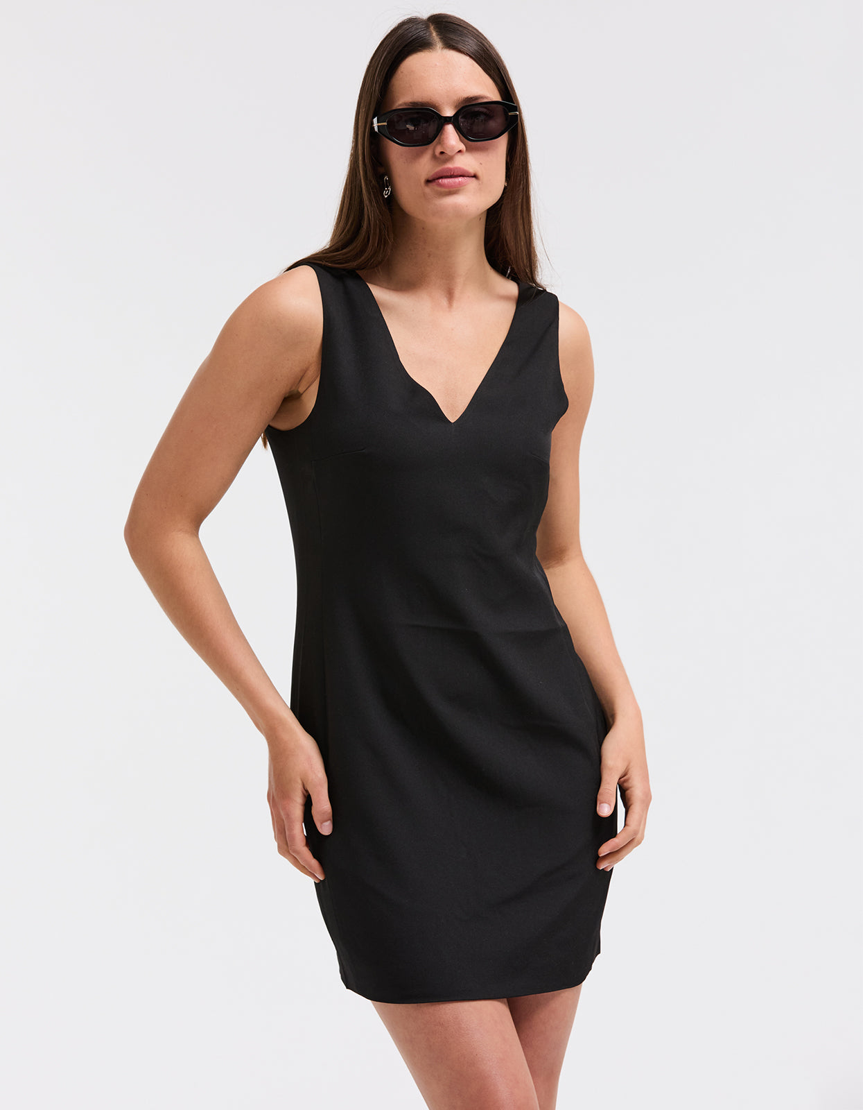 This mini dress boasts a flattering V neckline and is the perfect little black dress for any occasion. Dress it up or down for a versatile and effortlessly chic look. Don't miss out on this wardrobe staple!