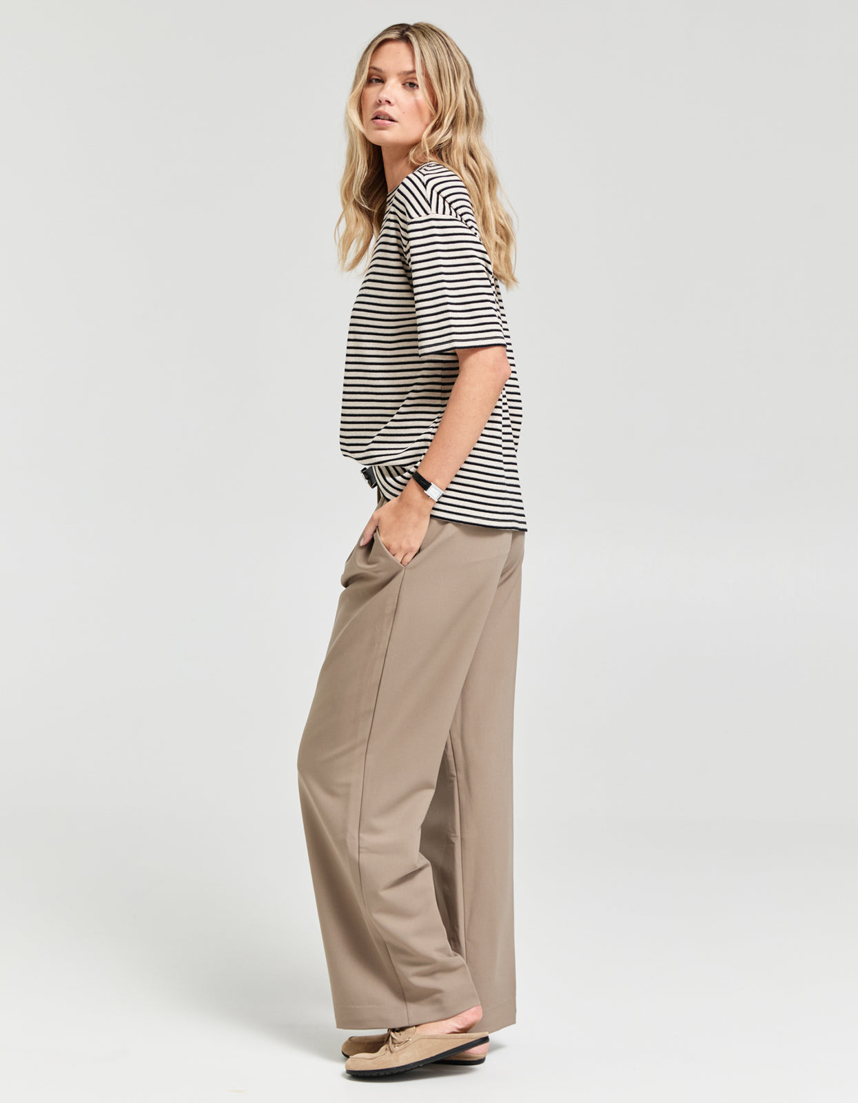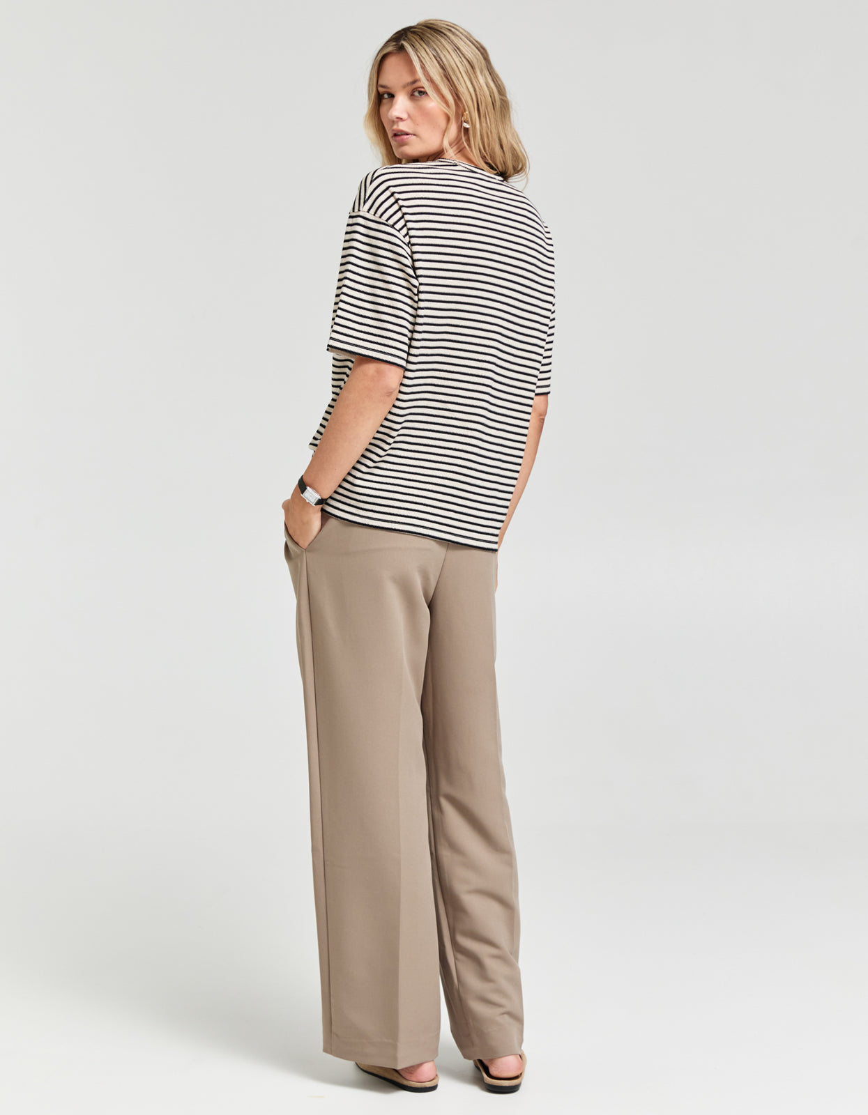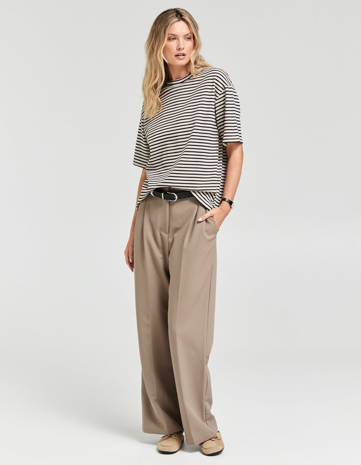 Crafted from a heavy-weight jersey, the short-sleeves and crew neckline offers a polished yet casual silhouette. With a straight hemline, striped detailing and regular fit, this tee effortlessly transitions from casual errands to layered office looks, making it a versatile staple for any wardrobe.