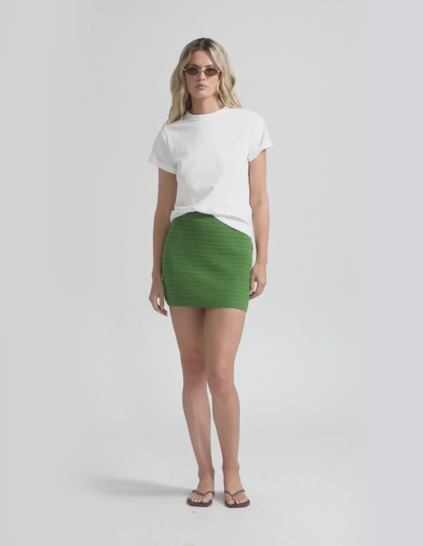 Crafted from a soft open-knit texture, this mini brings texture and movement to your look while keeping things effortless. Pair it back with the matching Luca Knit Shirt for that coordinated moment, or style it solo with a classic tee for laid-back chic.