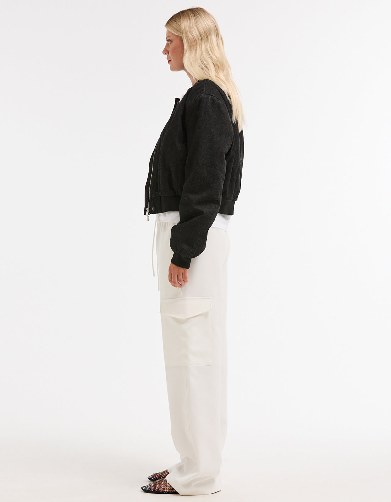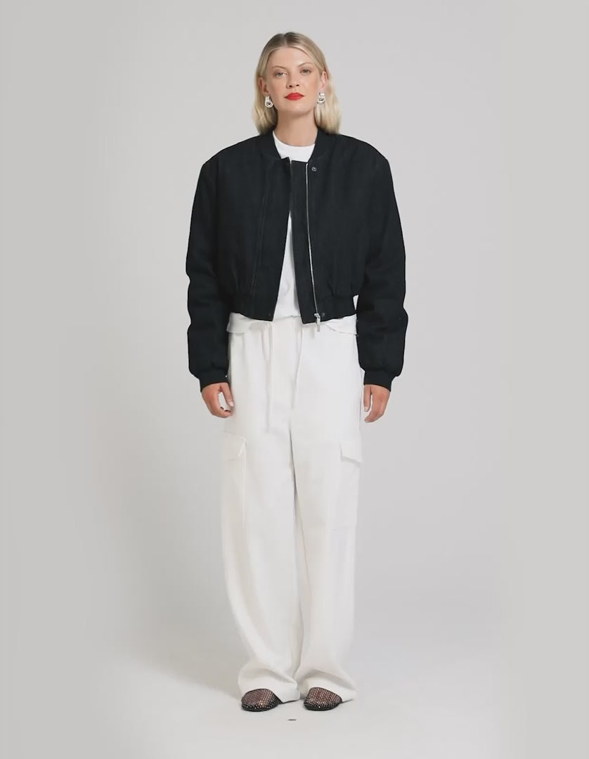 Upgrade your wardrobe with the Marsden Denim Bomber Jacket in Black from Superette.