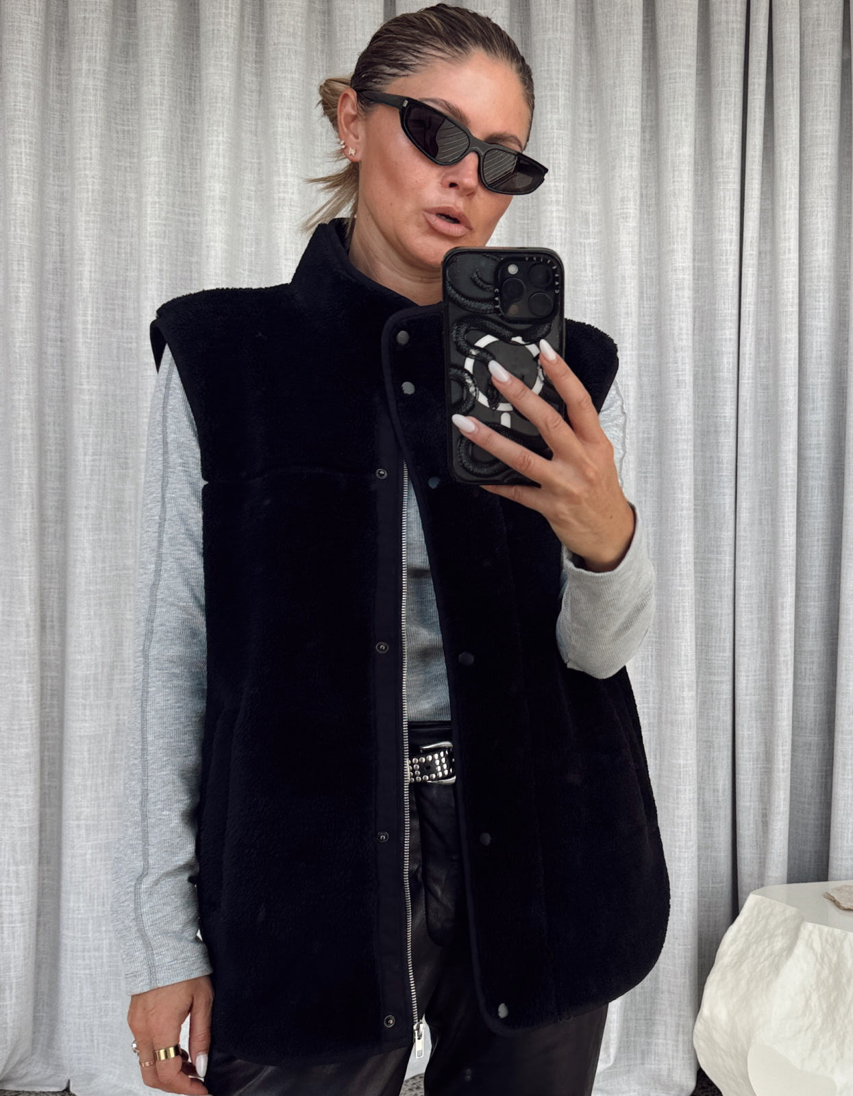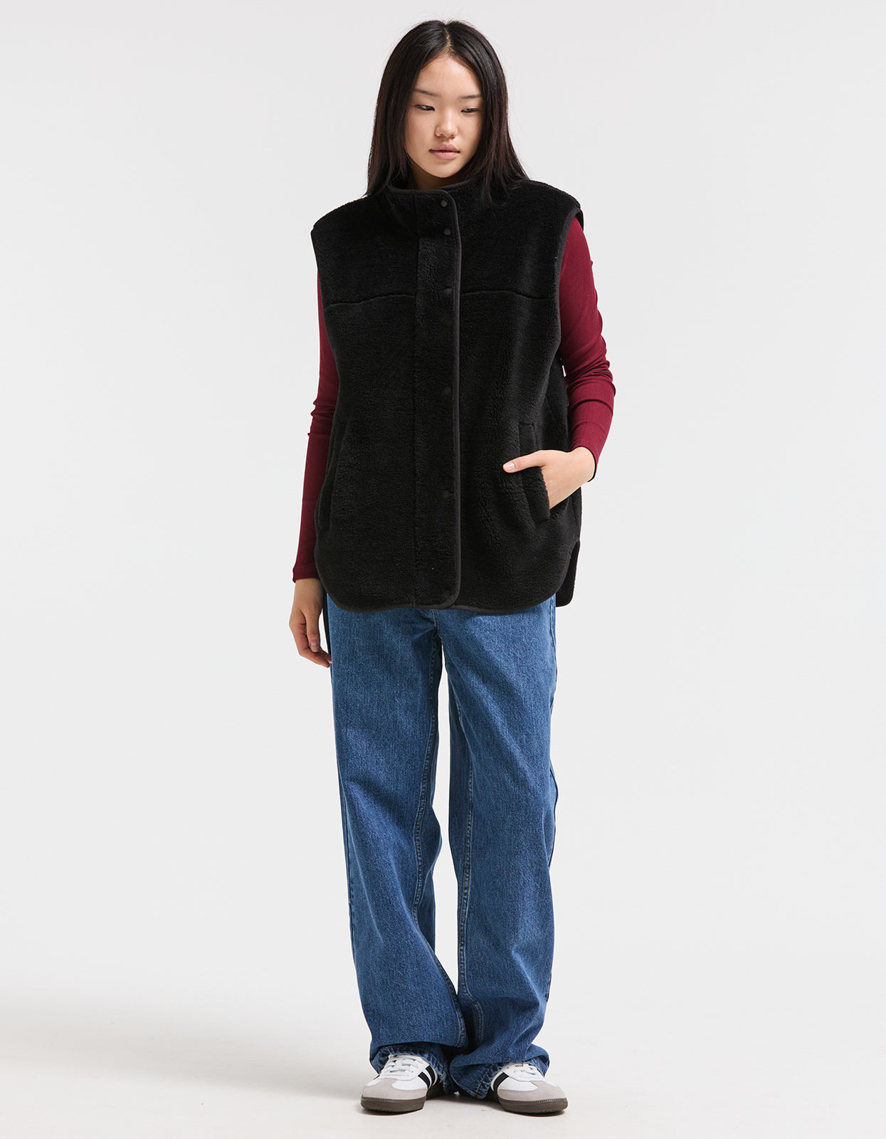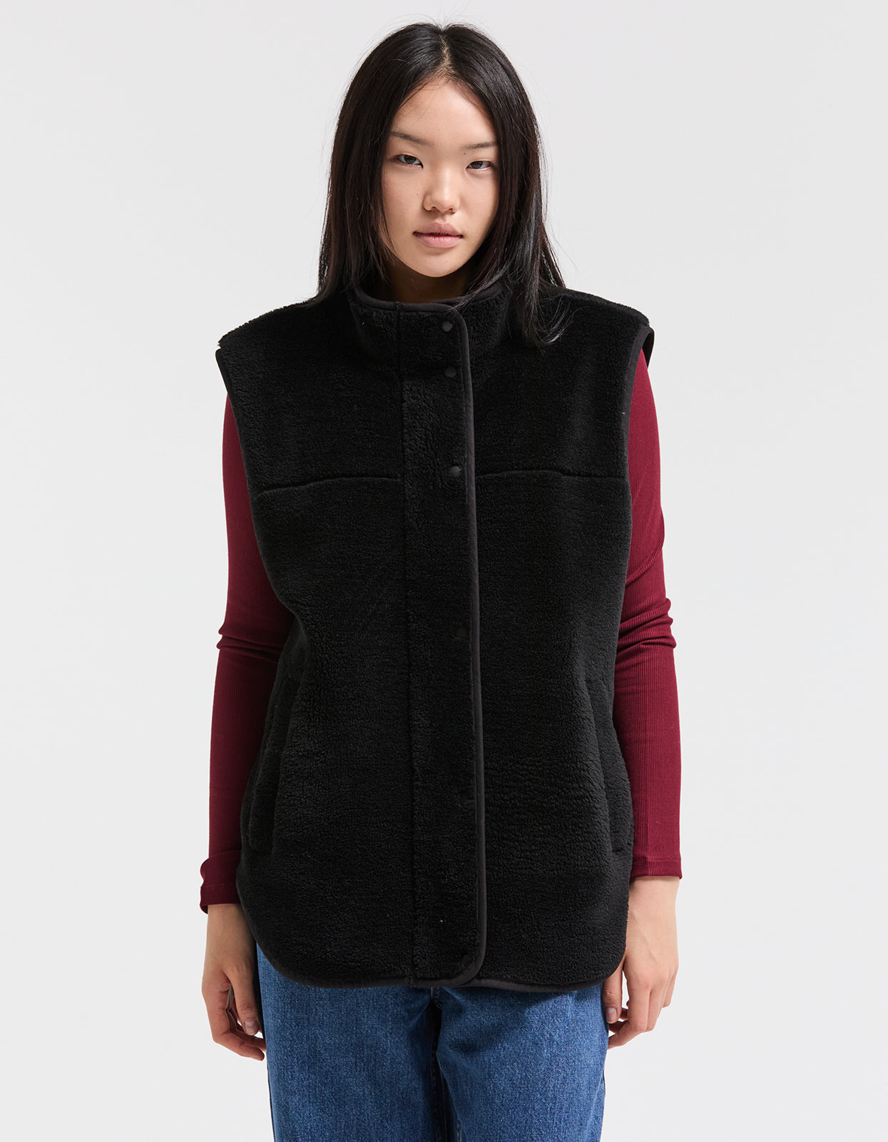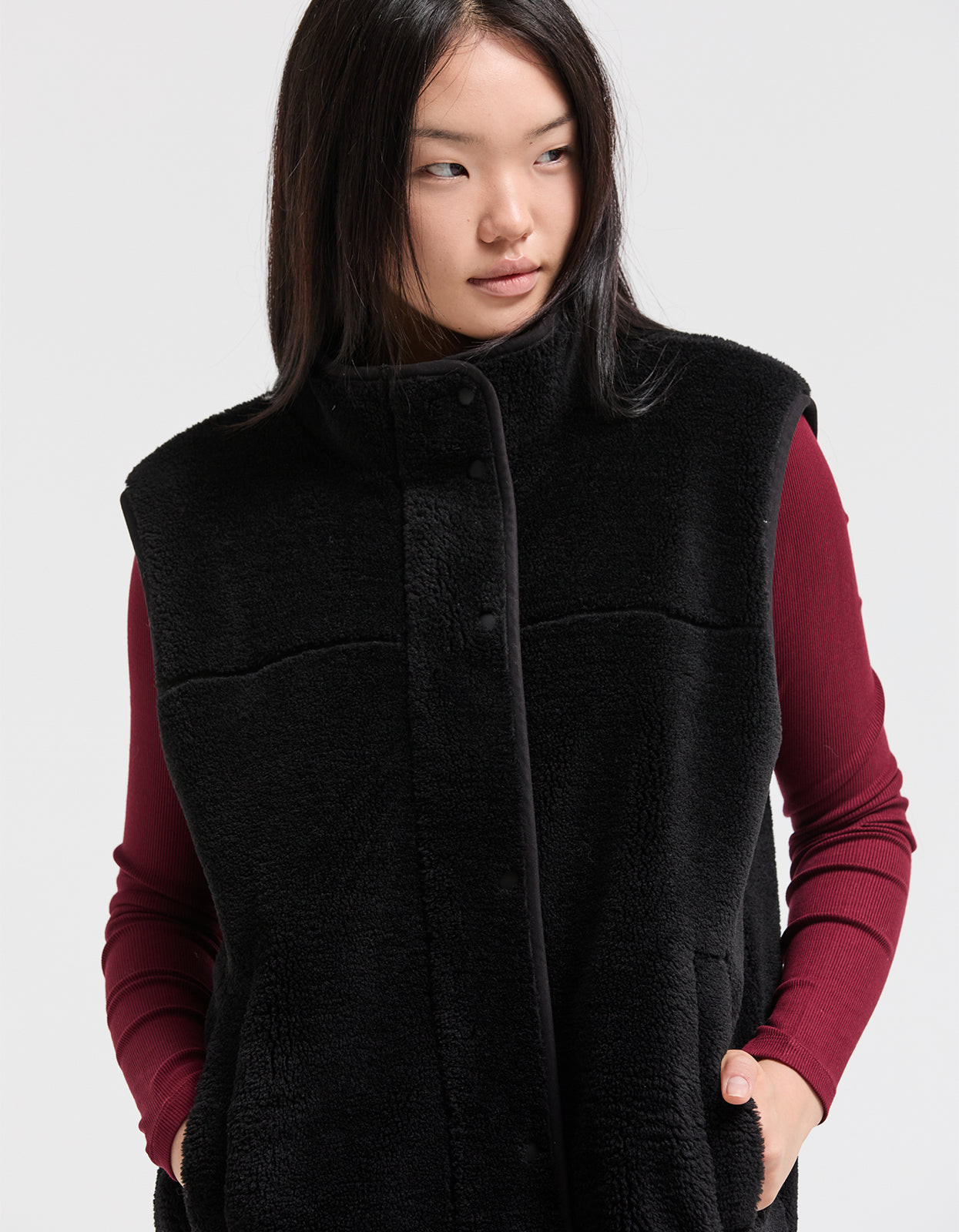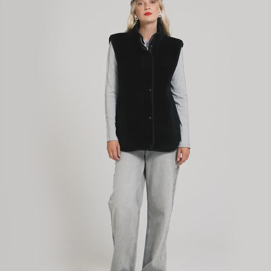 This cozy zip-up vest is crafted from ultra-soft teddy fleece fabric, offering both warmth and style. Featuring sleek snap buttons and a silver zipper, this vest is designed for comfort and functionality. Whether you're layering it for extra warmth or wearing it as a standalone piece, this versatile teddy fleece vest is a must-have addition to your wardrobe.