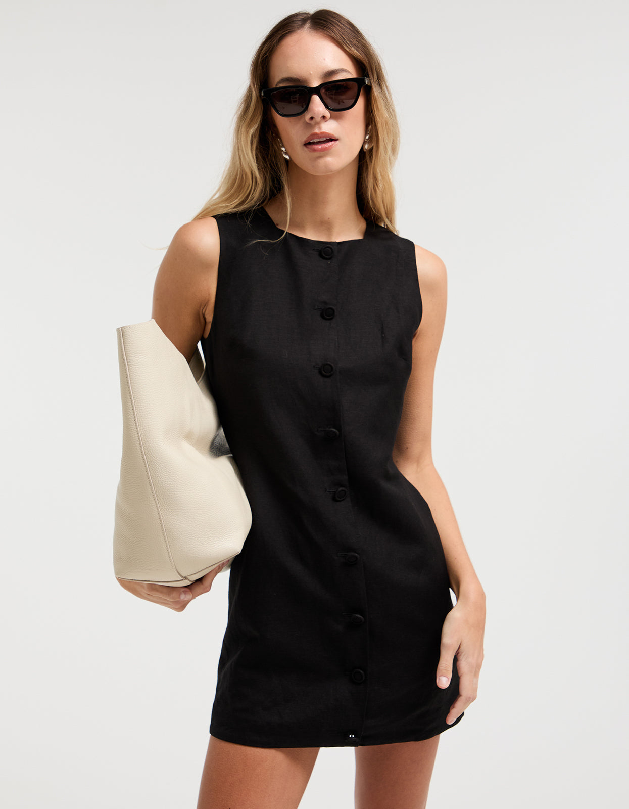 Discover the perfect summer staple with the Superette Mia Dress, a chic black mini dress designed for comfort and style.