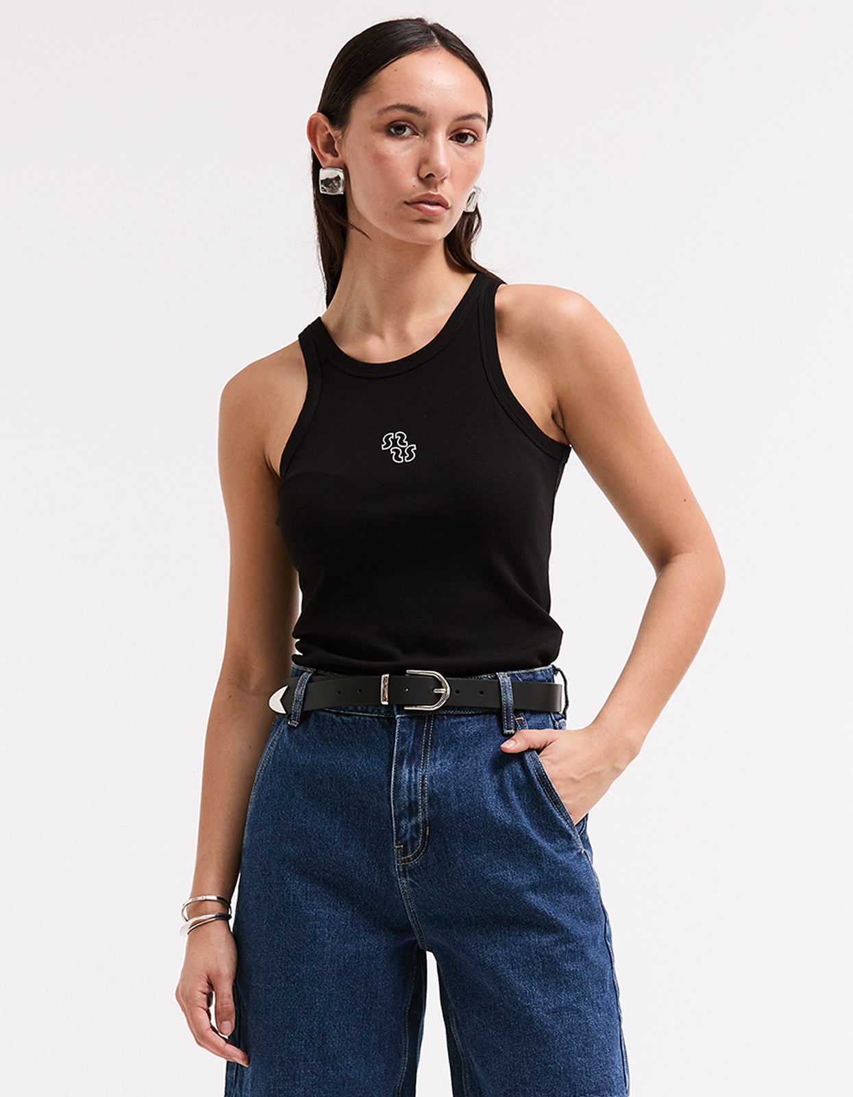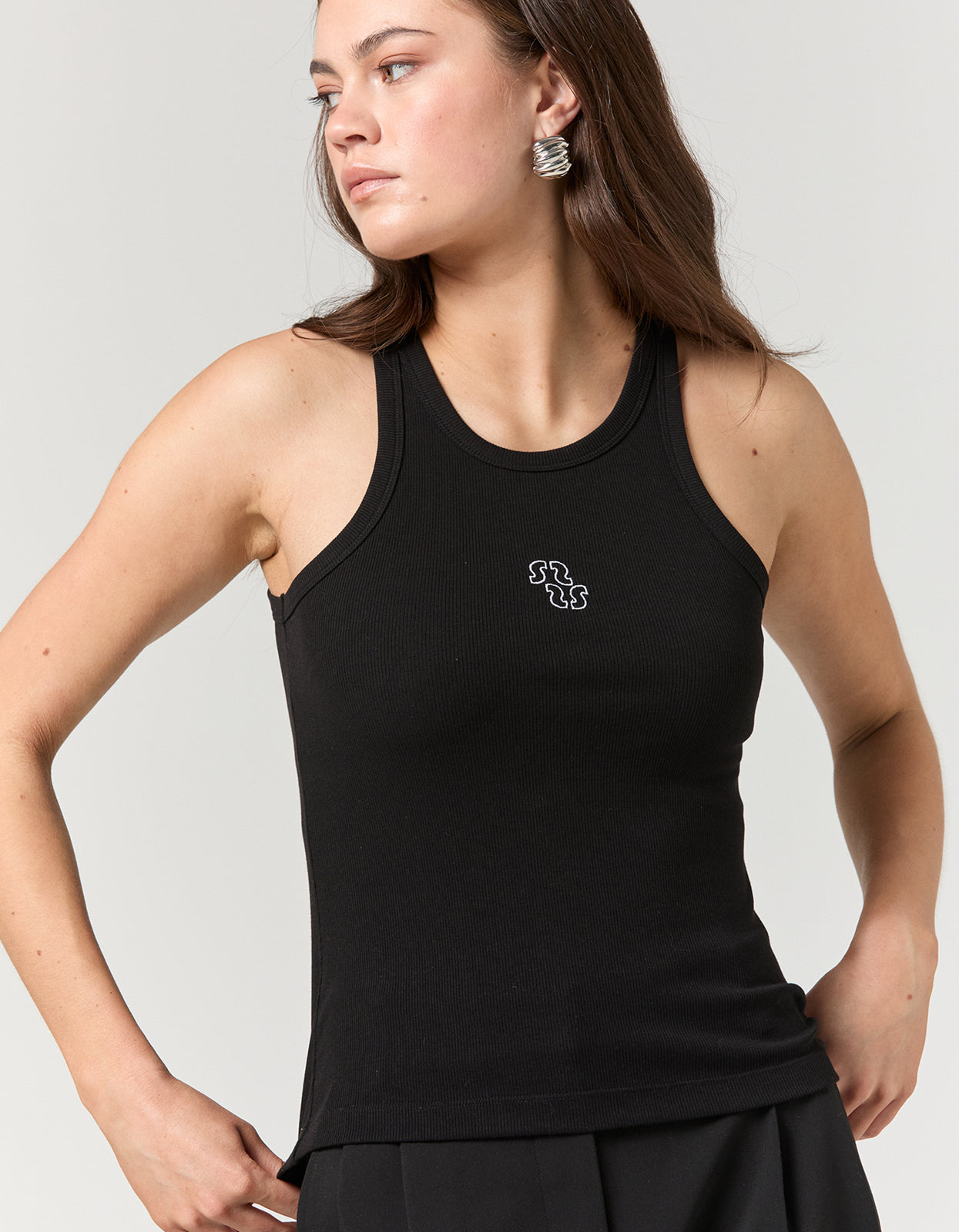 The Superette Odin Tank is a timeless ribbed racerback with a fun twist—featuring minimal yet elegant signature artwork embroidered on the front center.