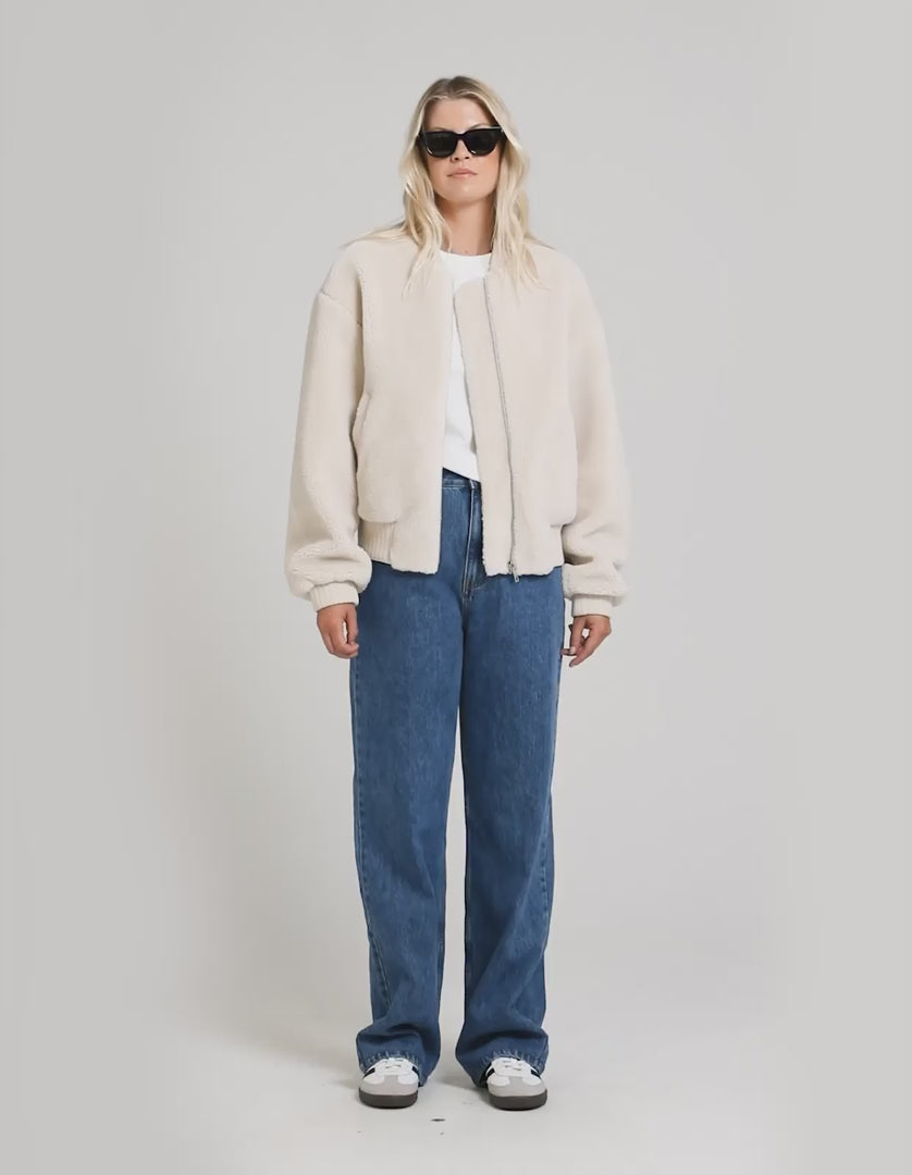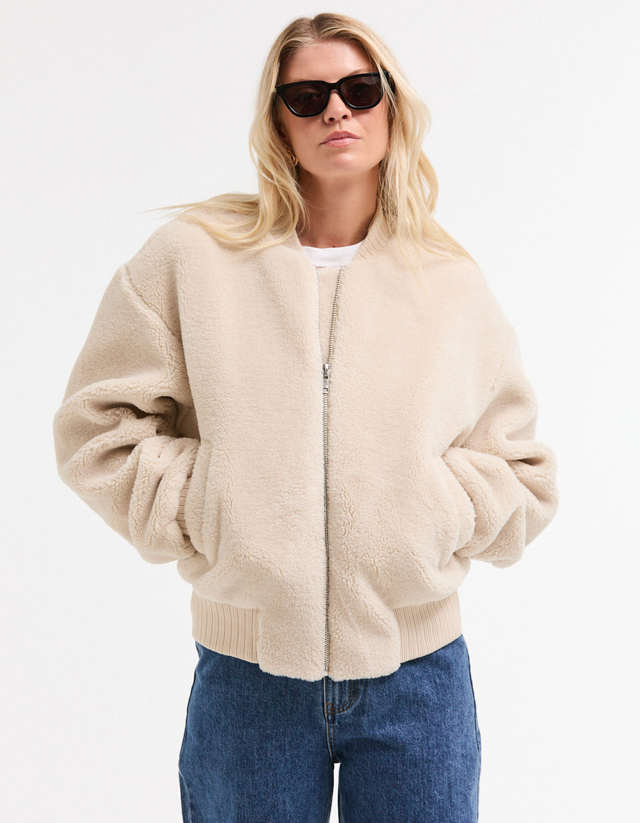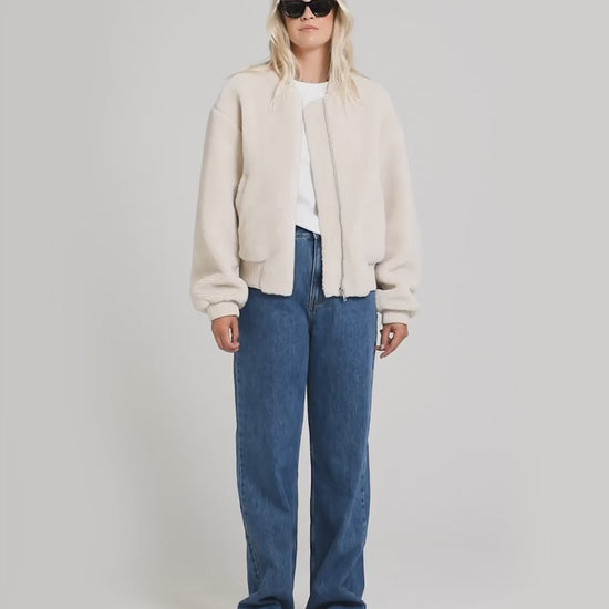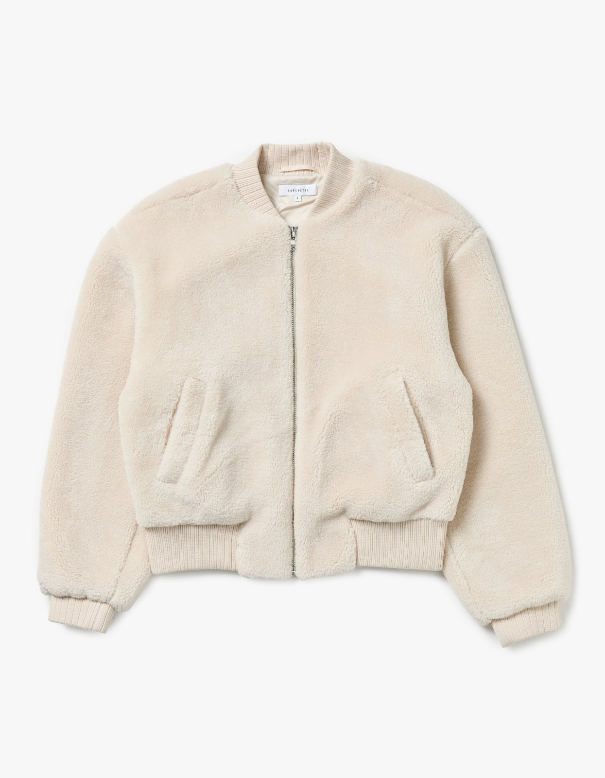 Discover the ultimate blend of comfort and style with the Penny Bomber Jacket from Superette in a timeless off-white shade.