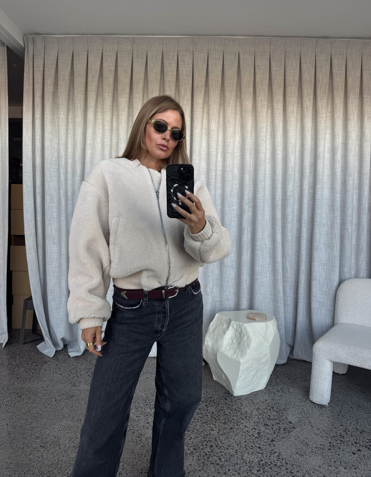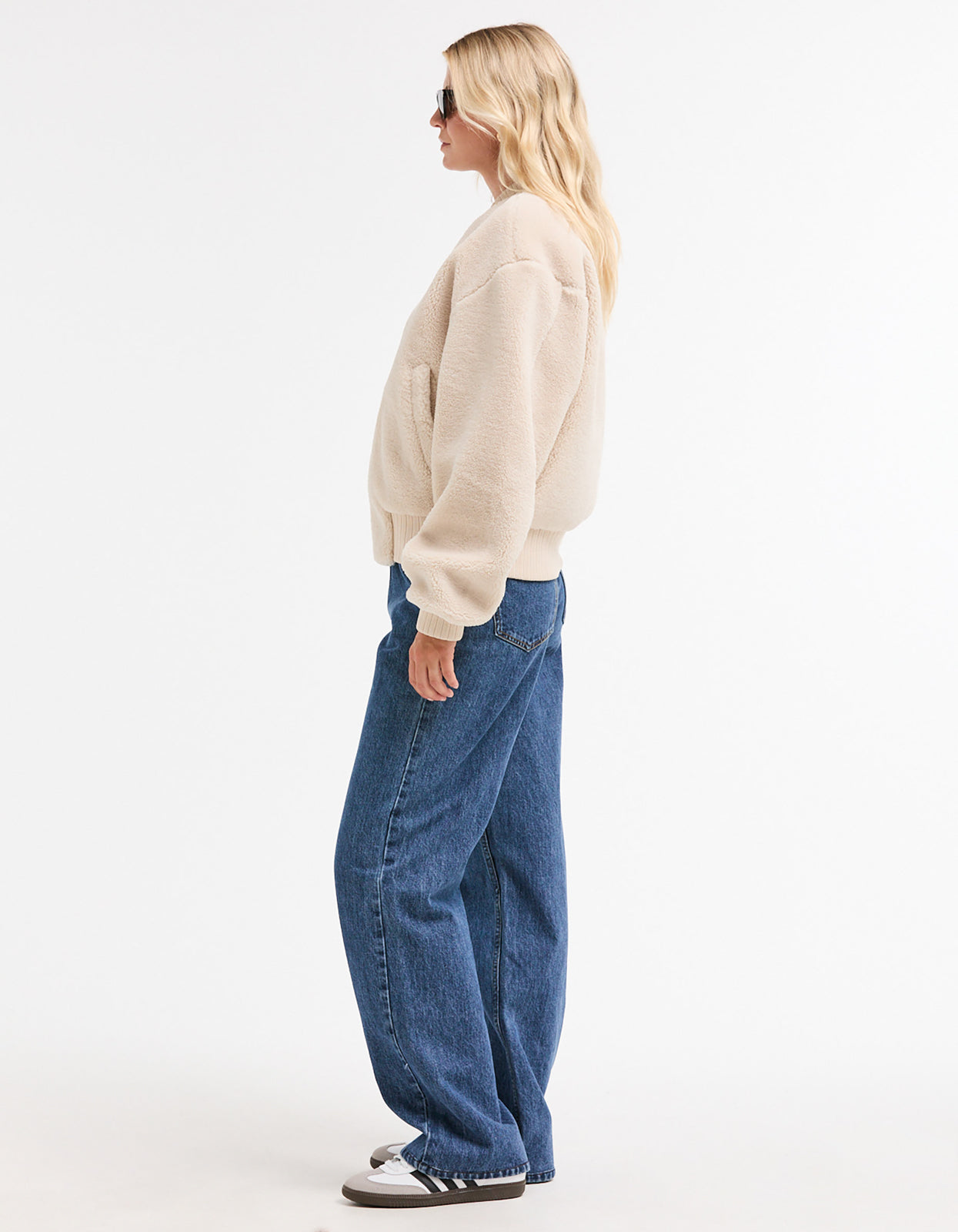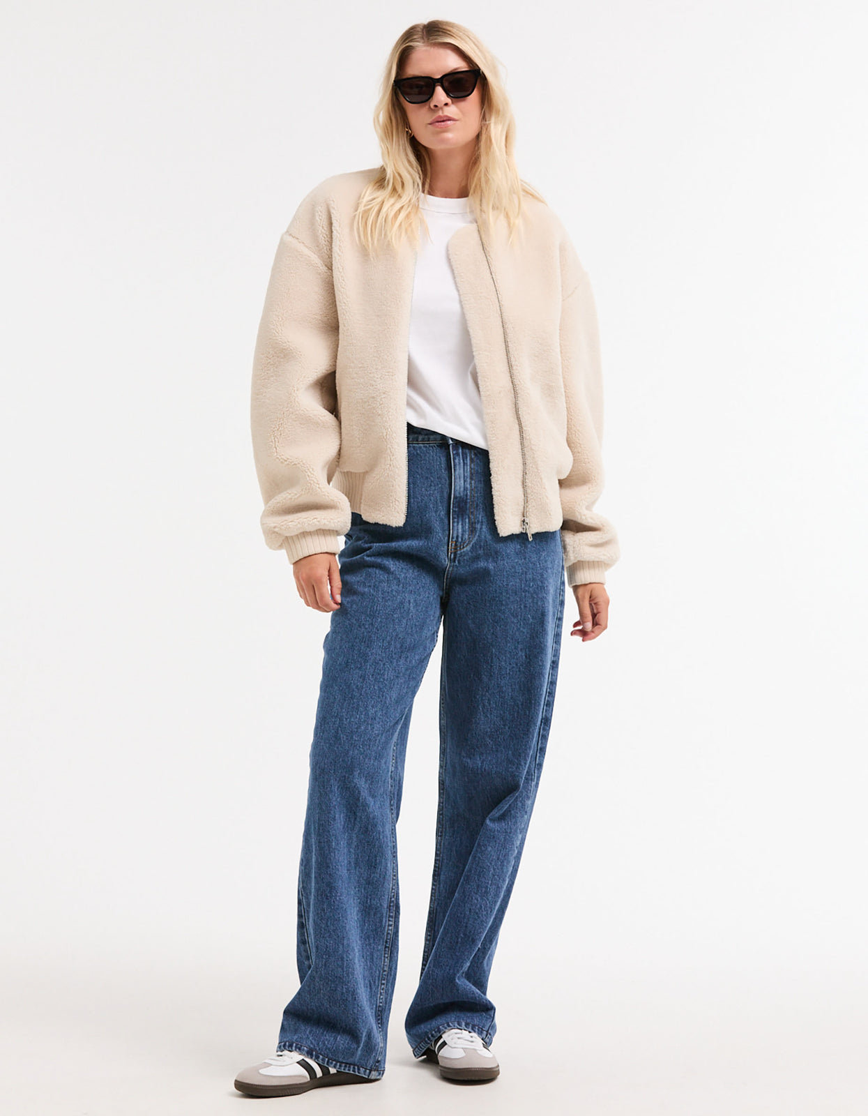 Discover the ultimate blend of comfort and style with the Penny Bomber Jacket from Superette in a timeless off-white shade.