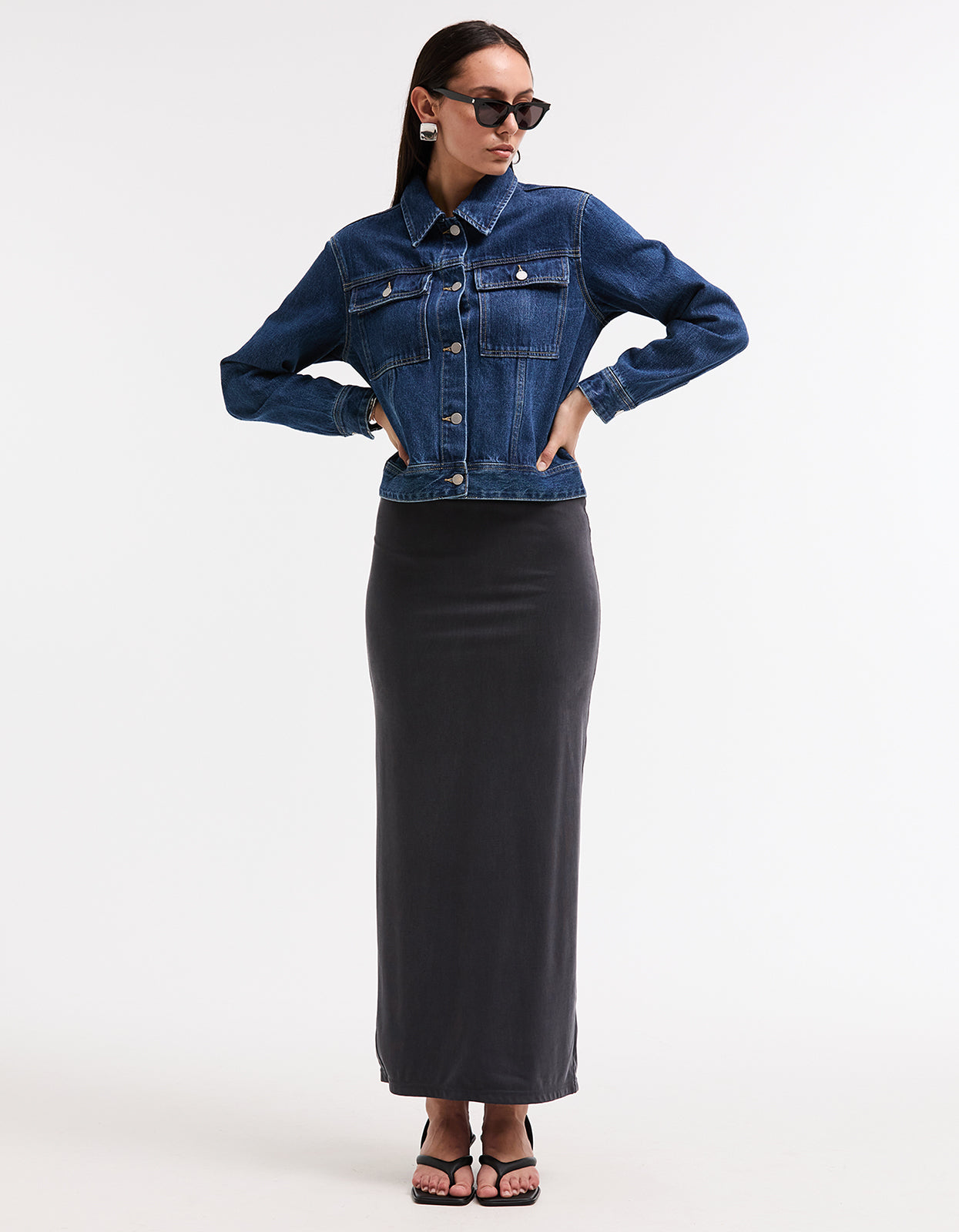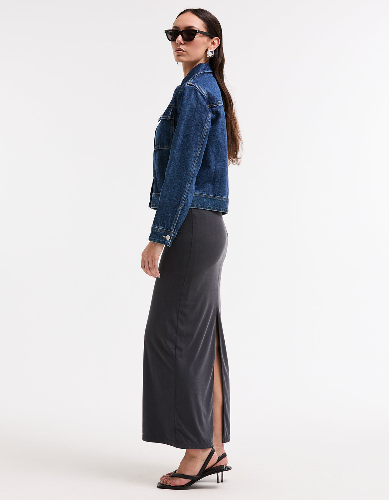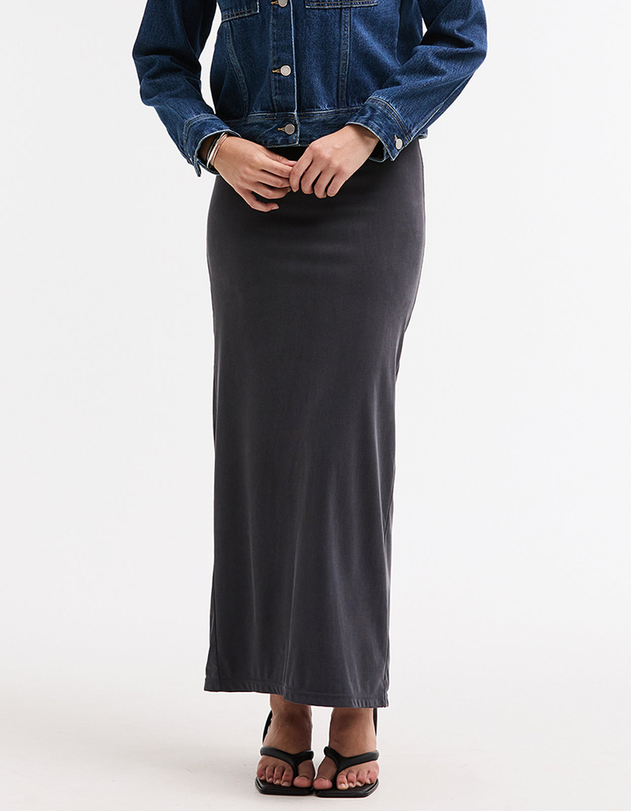Made with stretchy, ribbed fabric and a maxi length, this skirt is perfect for any occasion. Plus, the versatile design allows you to dress it up or down. Stay stylish without sacrificing comfort!