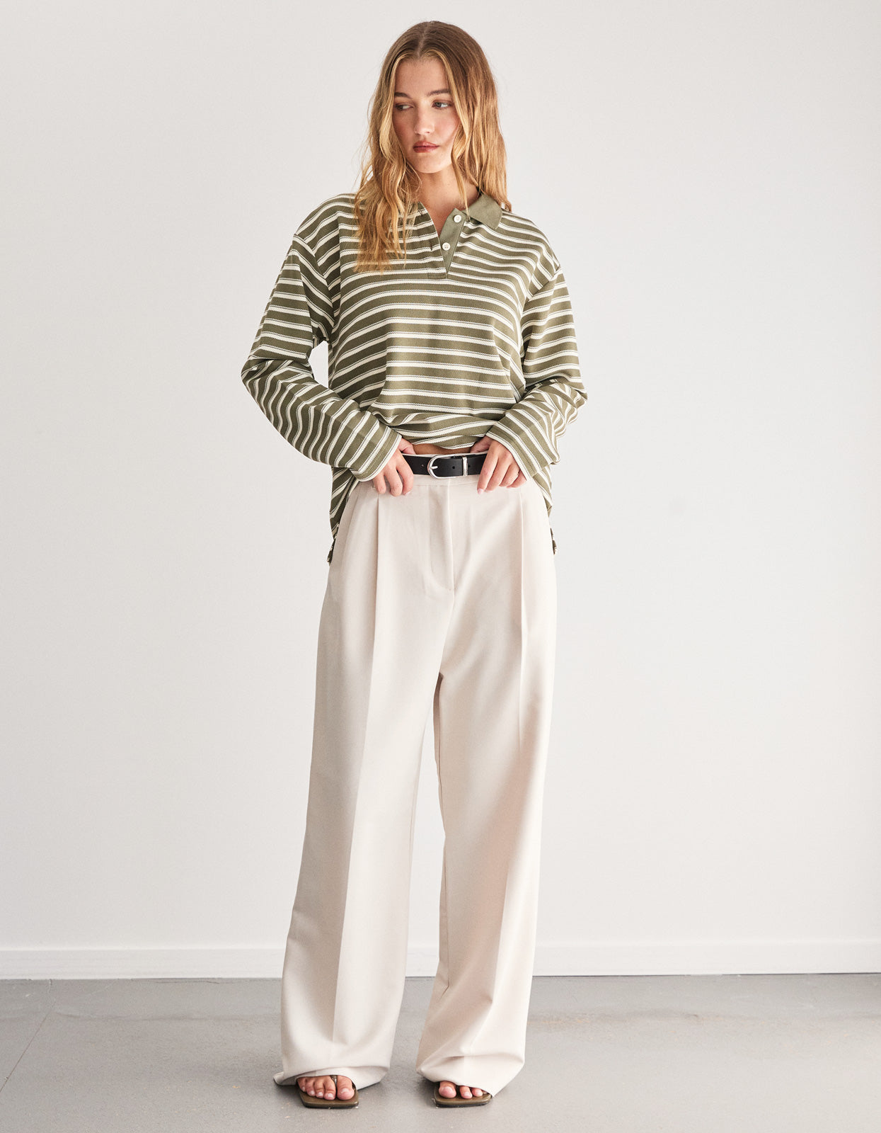 The Saber L/S Polo Tee in Olive/Cream brings a sporty edge to your everyday wardrobe. With its jersey knit texture and structure, this tee delivers a fresh take on classic athletic style.