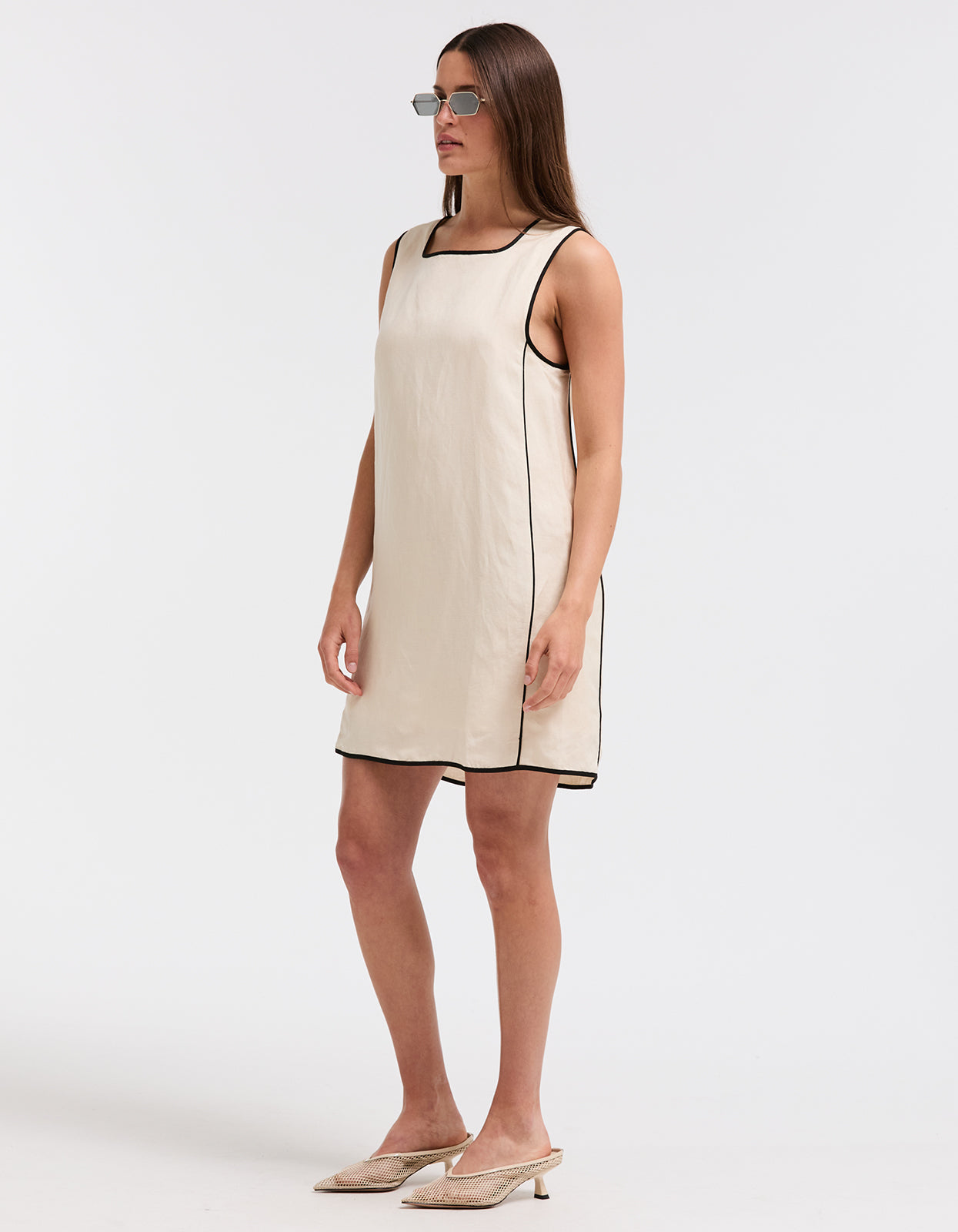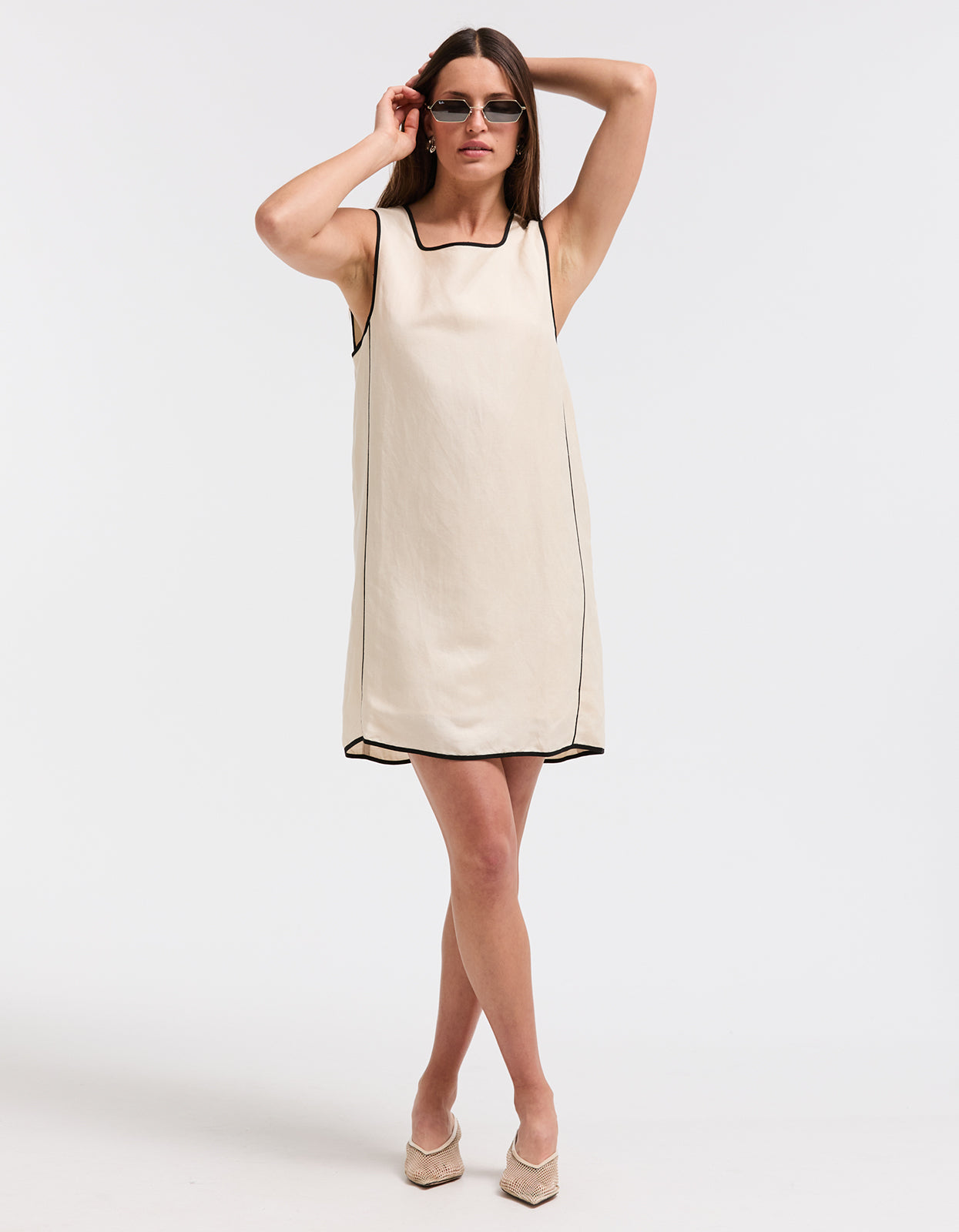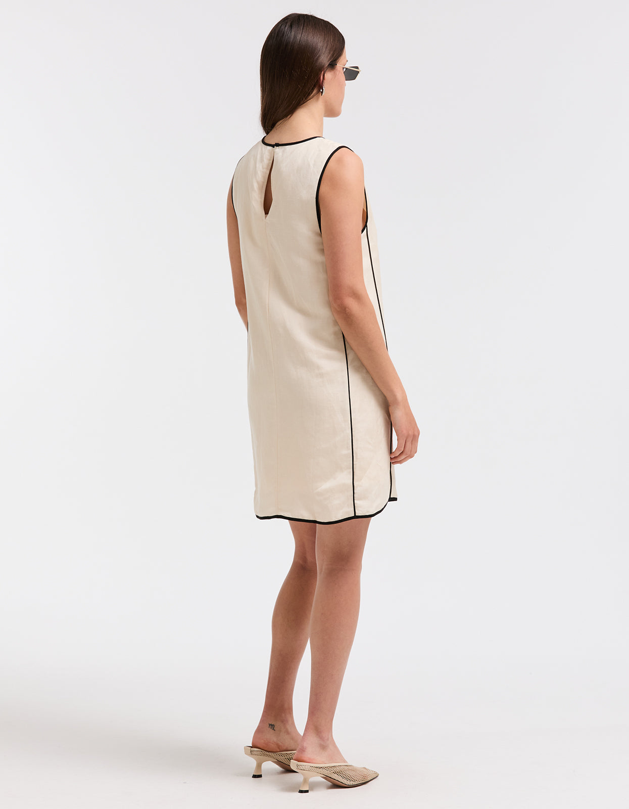 This linen blend shift is very of the moment for 2024 spring fashion. Featuring contrast detailing and a mini length, this dress exudes sophistication and charm. Perfect for any occasion, this dress is a must-have for any fashion-forward individual looking to make a statement.
