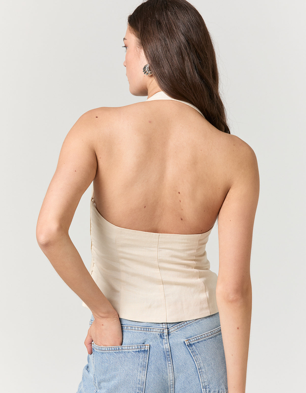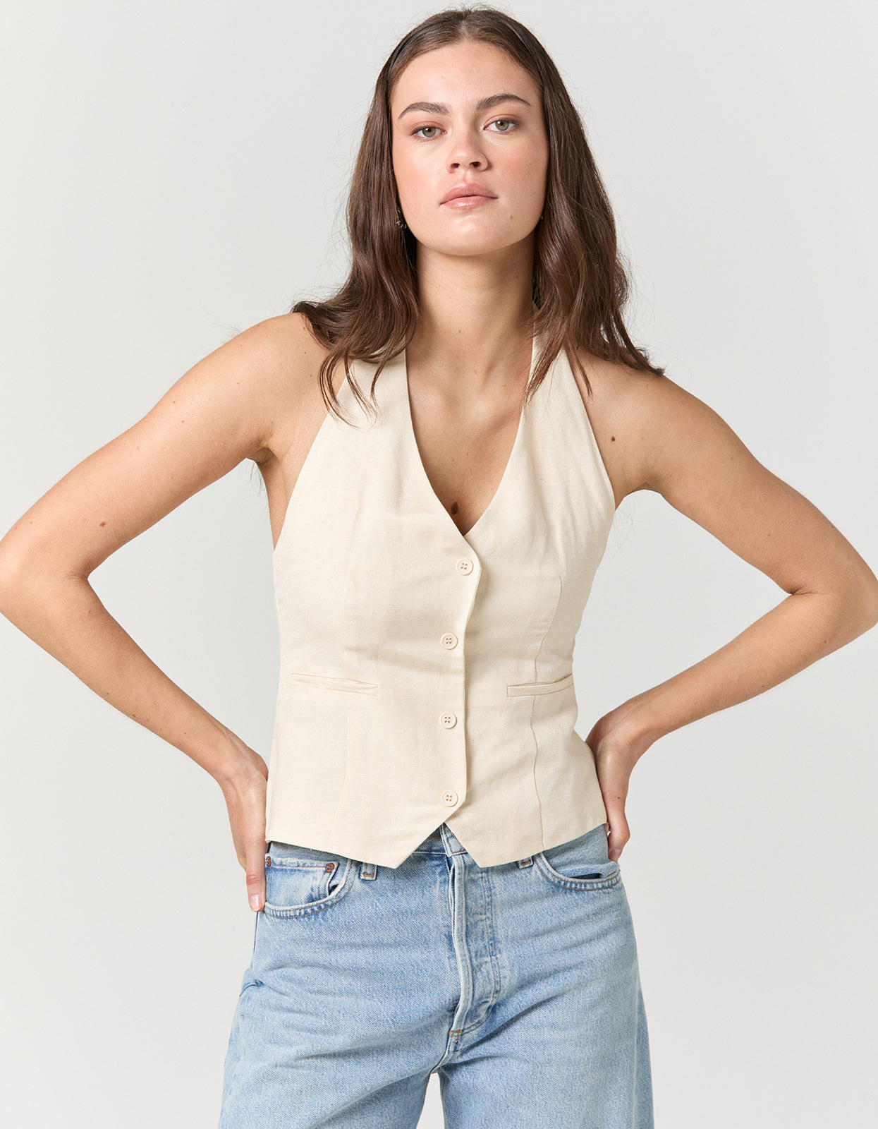 The Superette Saskia Top is a stunning halter neck vest-style top in a sophisticated Champagne colour.