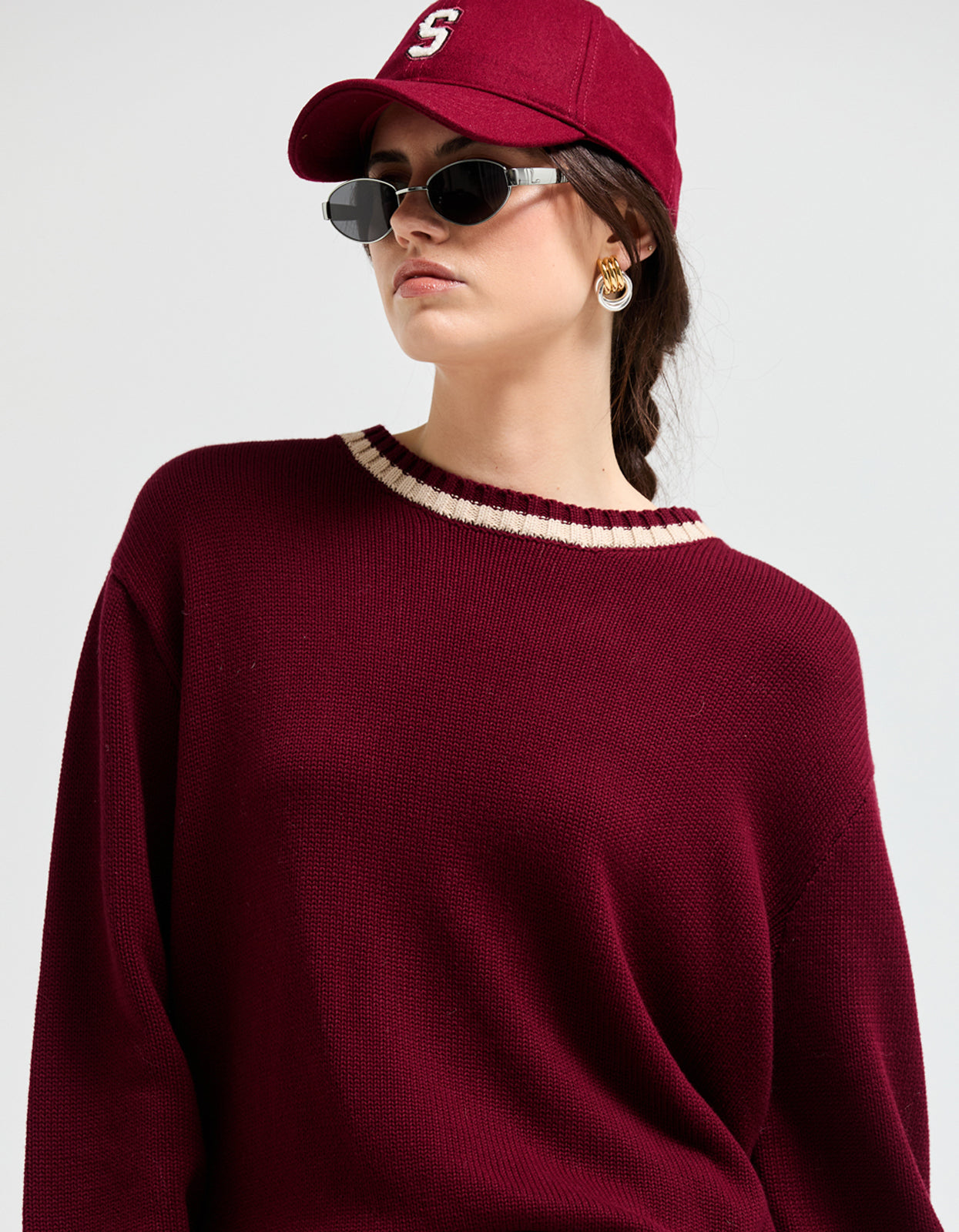 An elevated essential for cooler days — the Superette Knit Crew in Burgundy brings a refined touch to everyday dressing.