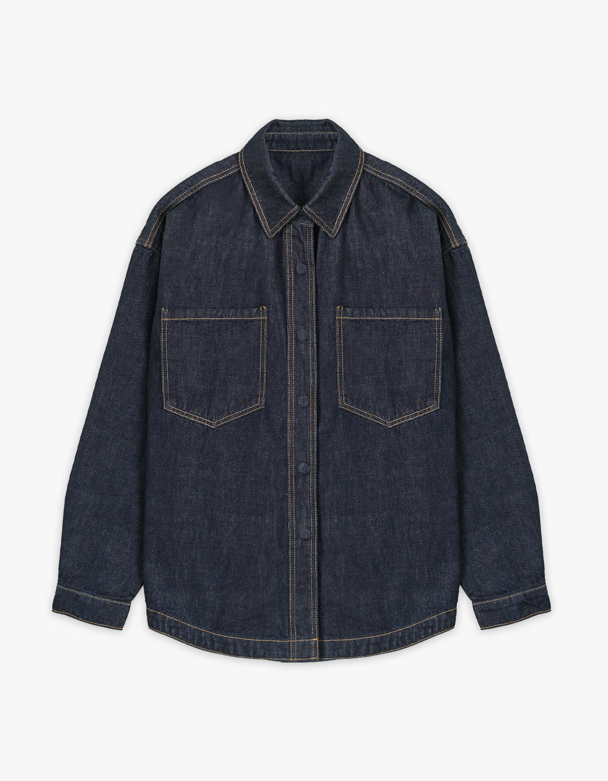 Crafted from soft cotton denim in a rich indigo rinse, this shirt is the perfect mix of utility and style. Whether thrown over a tee at the airport or buttoned up for a city stroll, it’s designed to move with you. With its relaxed fit and jacket-like structure, this is the kind of piece you reach for again and again — effortless, adaptable, and always cool.
