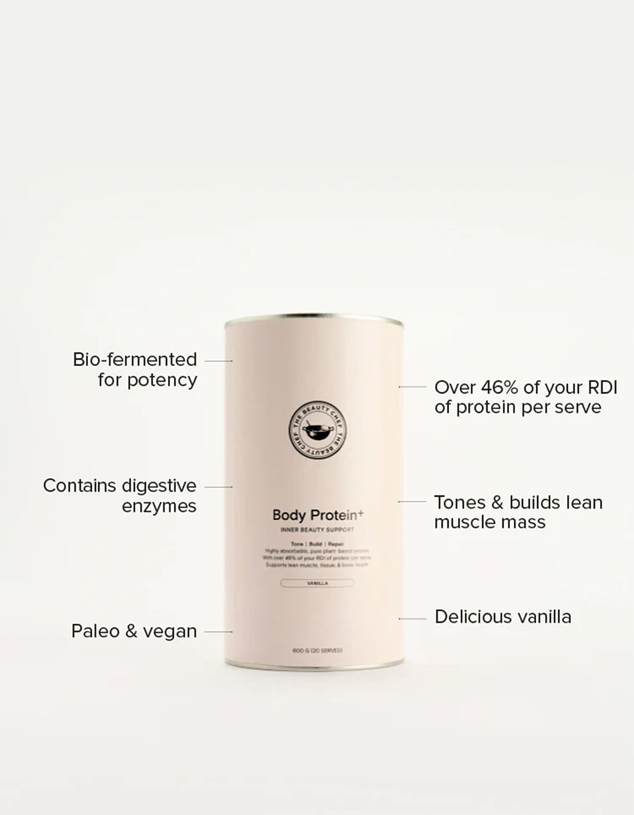 Experience the next level of plant-based protein with the Vanilla Body Protein+ by The Beauty Chef.