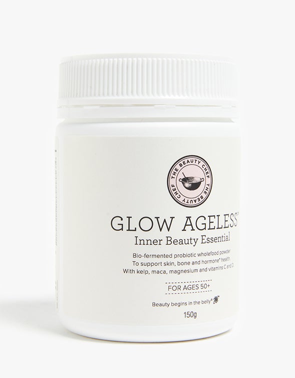 How to use: Mix 1 tsp (5g) in 200mL of water, a smoothie, yoghurt or your favourite drink and consume immediately. For optimal results, Glow Ageless gut health supplement should be consumed daily in chilled or room temperature beverages and can be taken with any other Beauty Chef product
