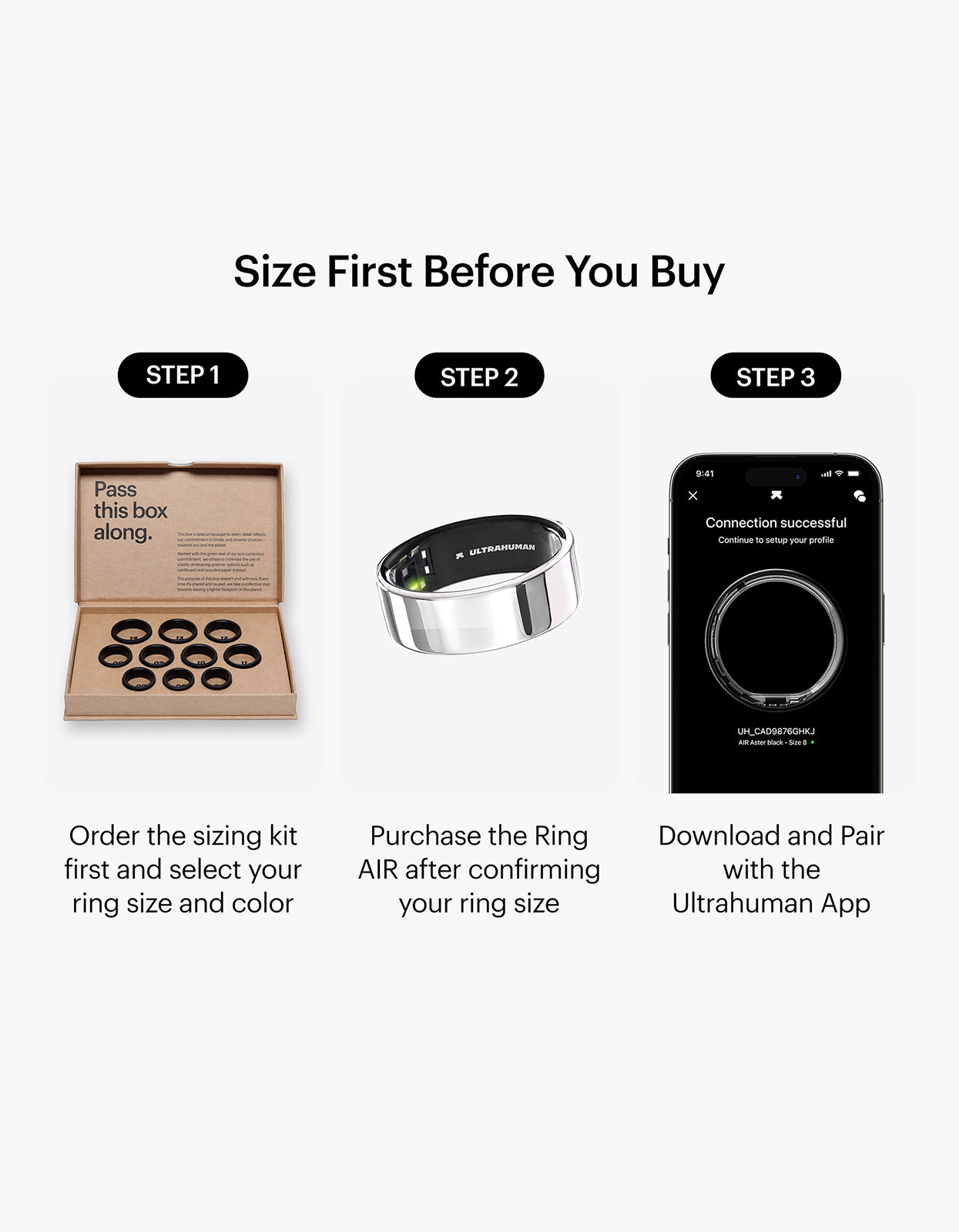 Try before you buy in-store, Or download the AI Ultrahuman app to find your ring size